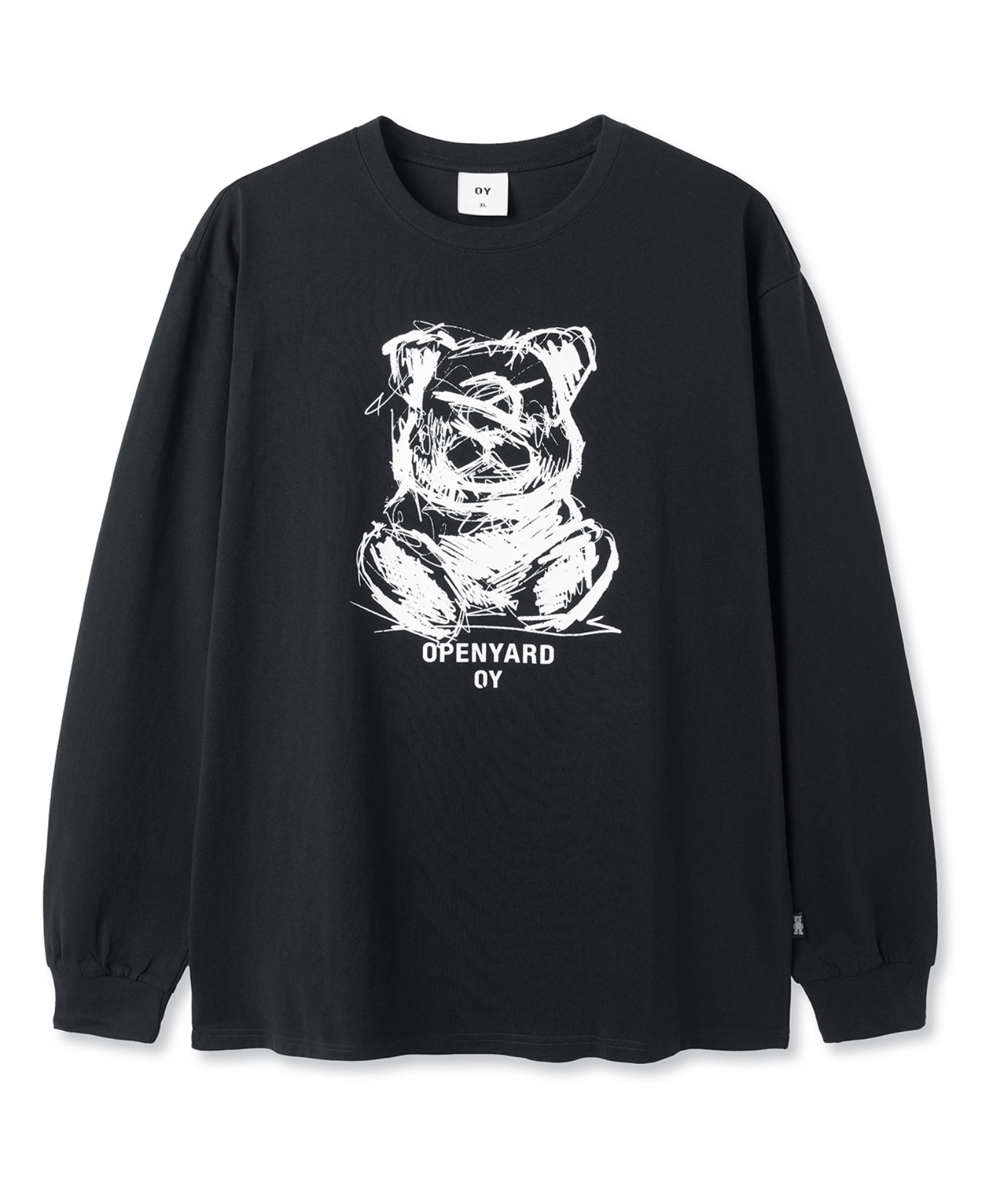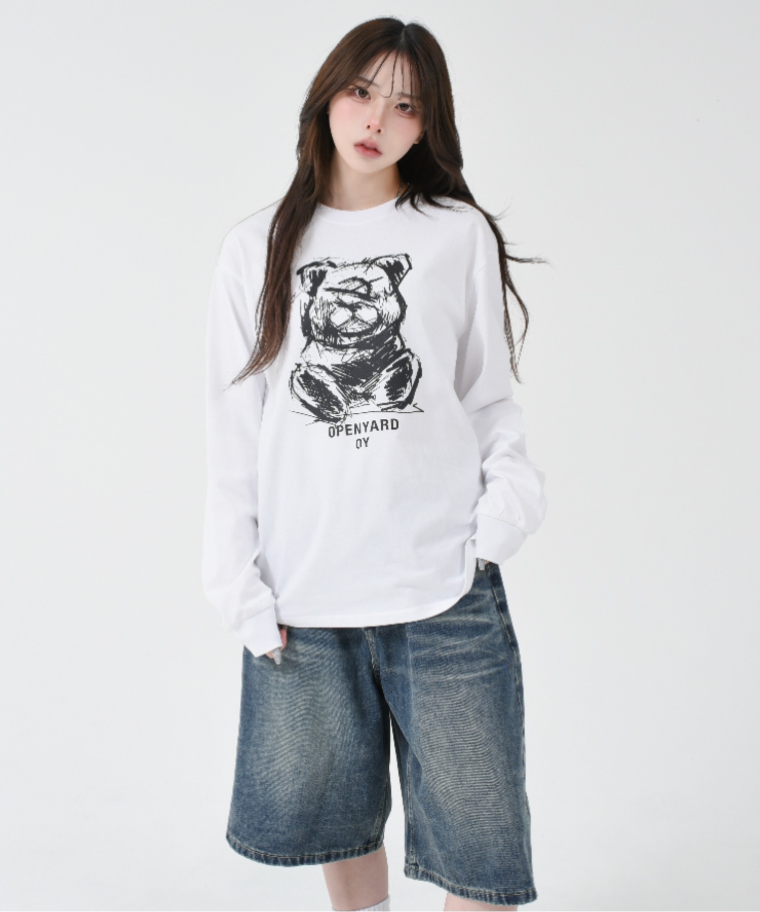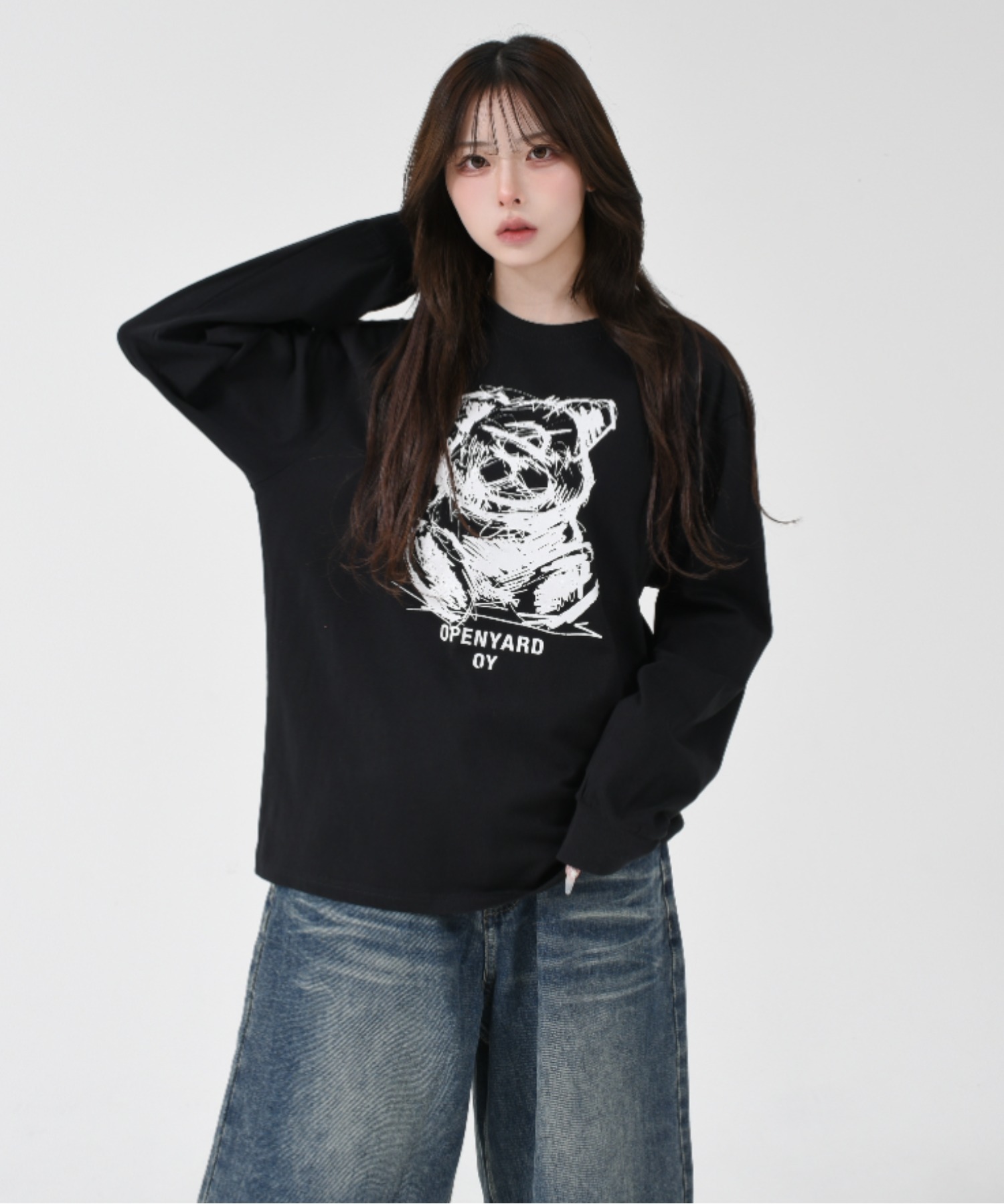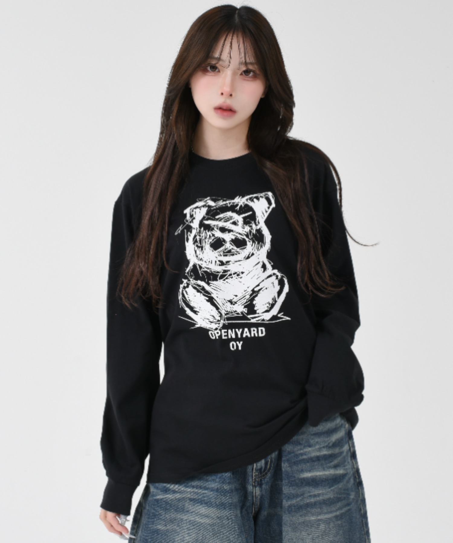 A long-sleeve cut-and-sew top featuring a stylish bear sketch design.