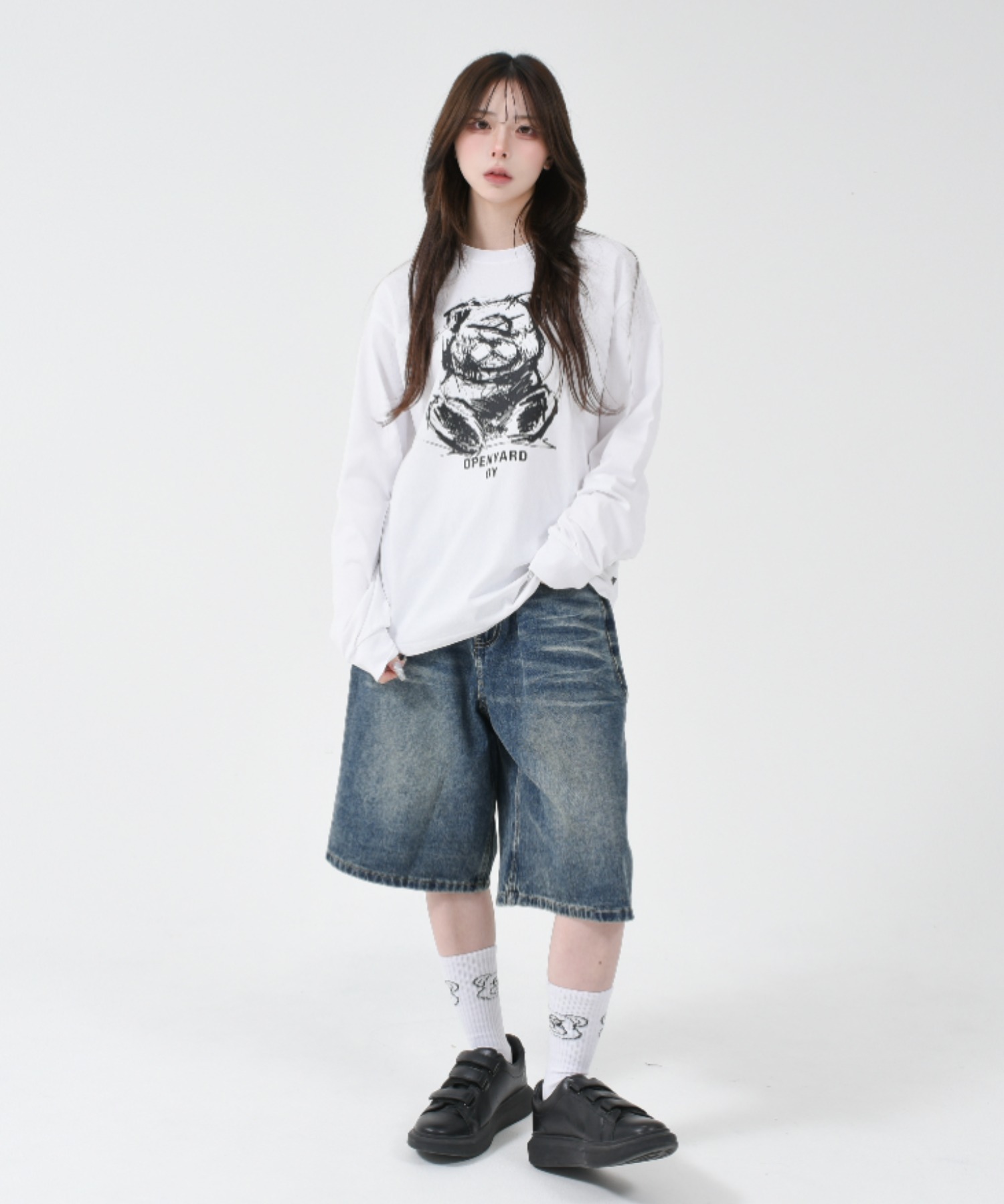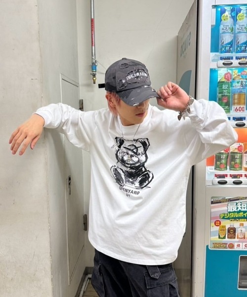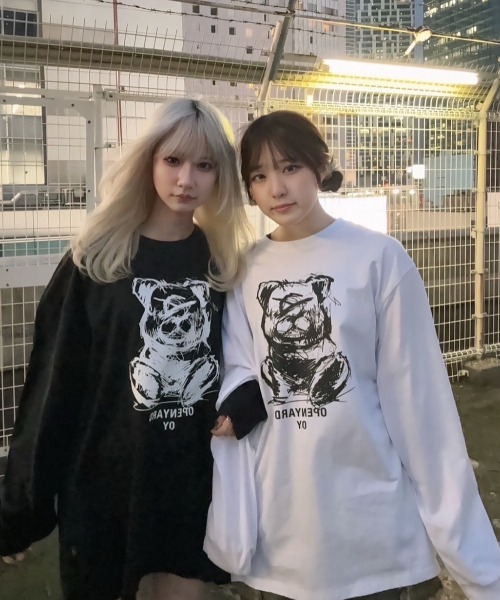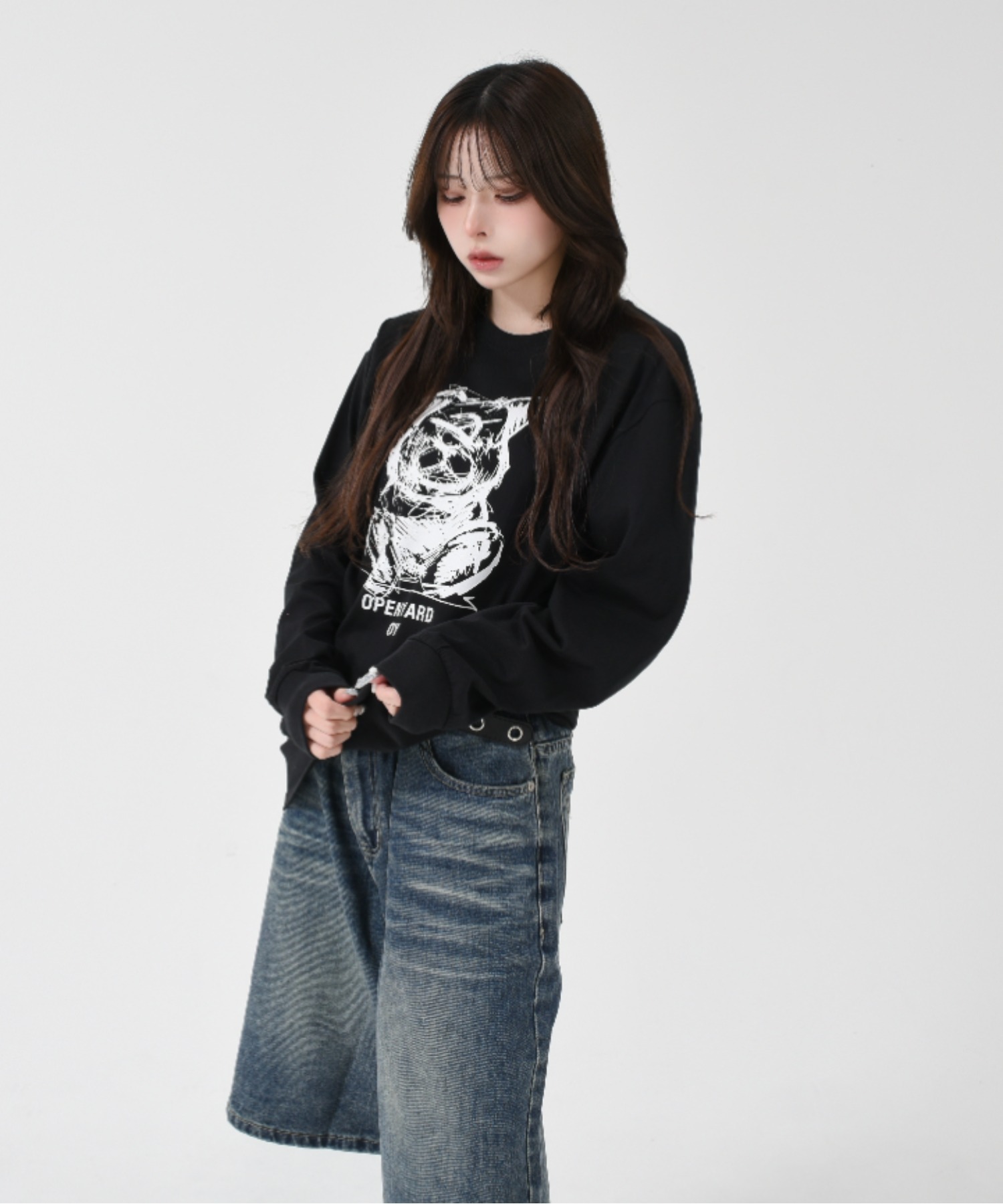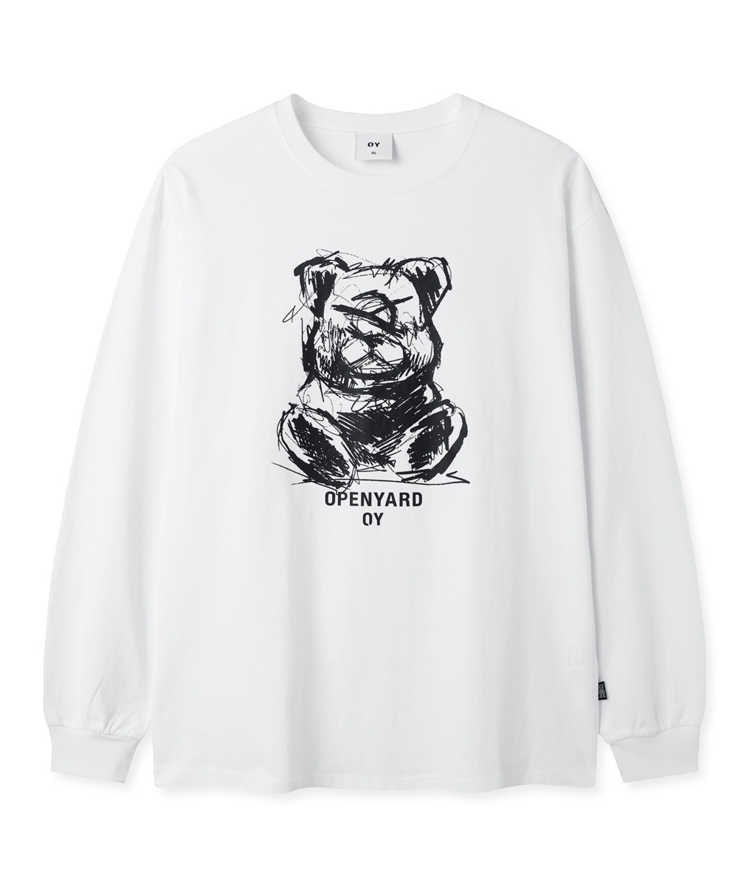 A long-sleeve cut-and-sew top featuring a stylish bear sketch design.