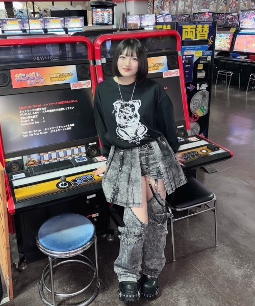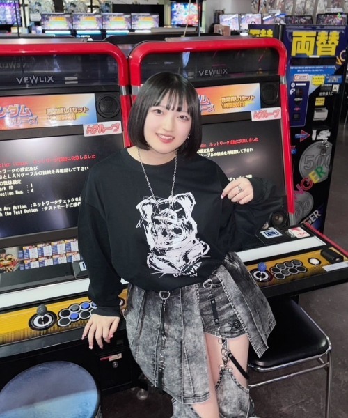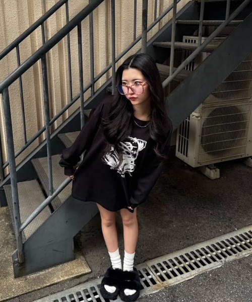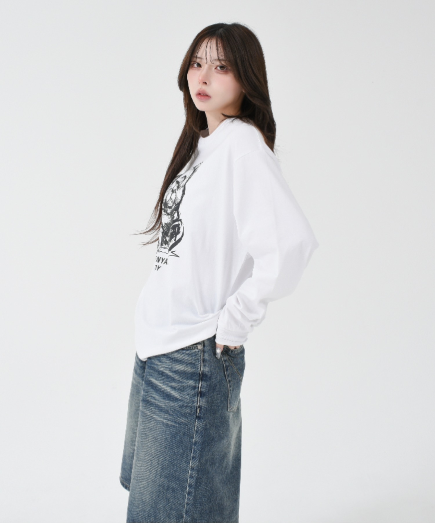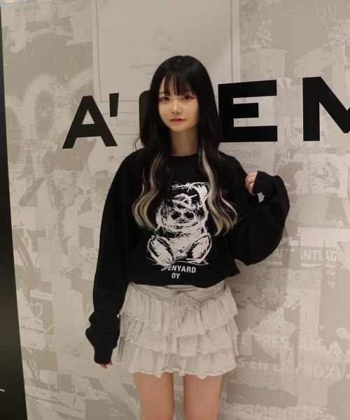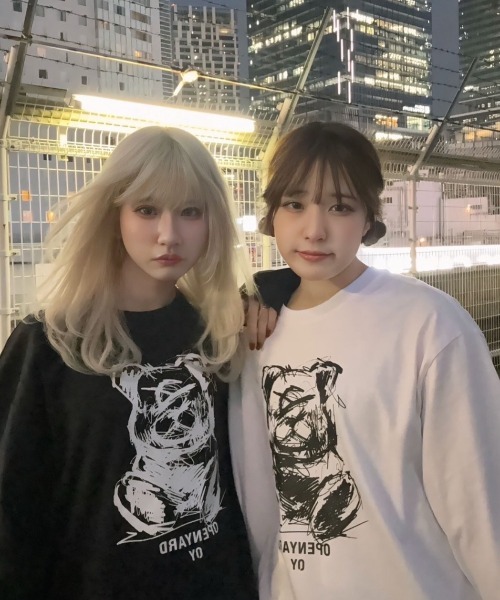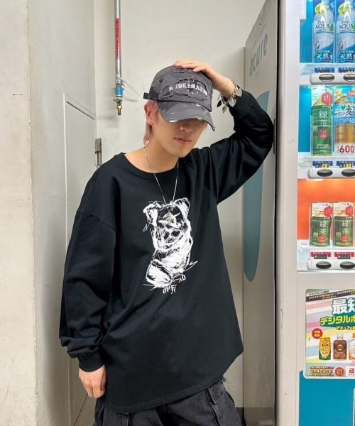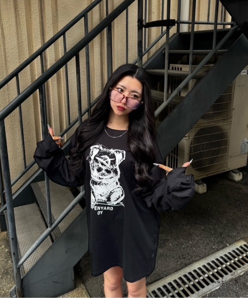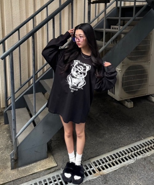 A long-sleeve cut-and-sew top featuring a stylish bear sketch design.