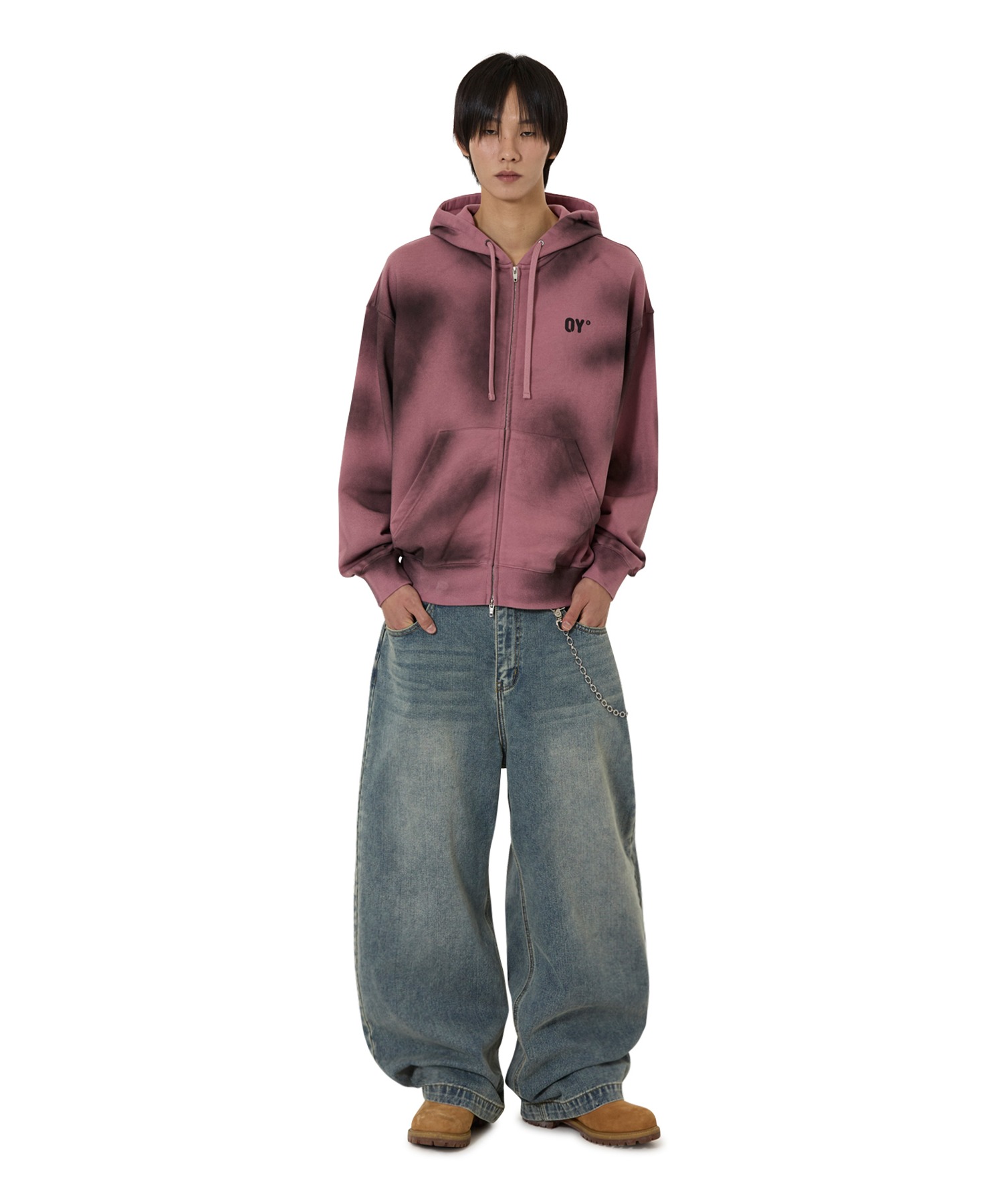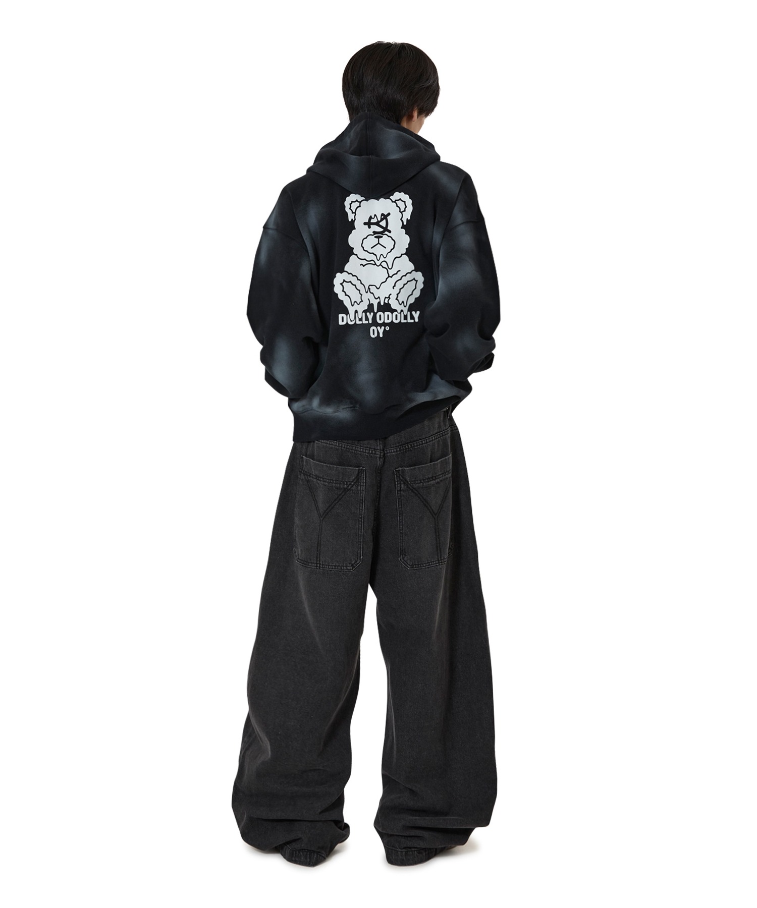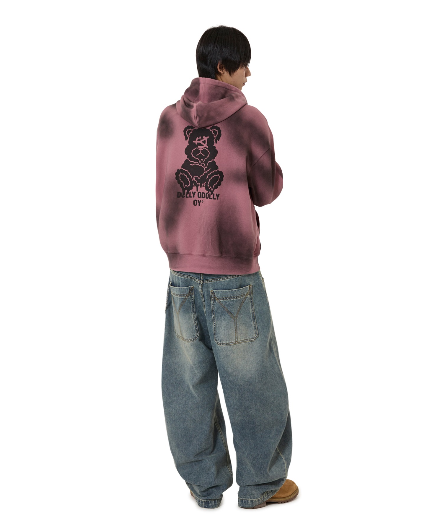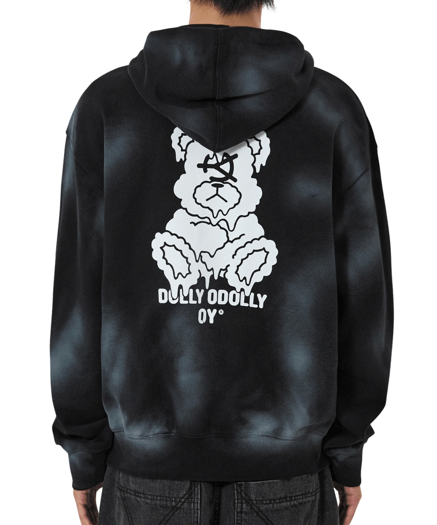 A zip-up hoodie featuring an eye-catching sprayed finish and a bold melting bear graphic that spans the entire back.