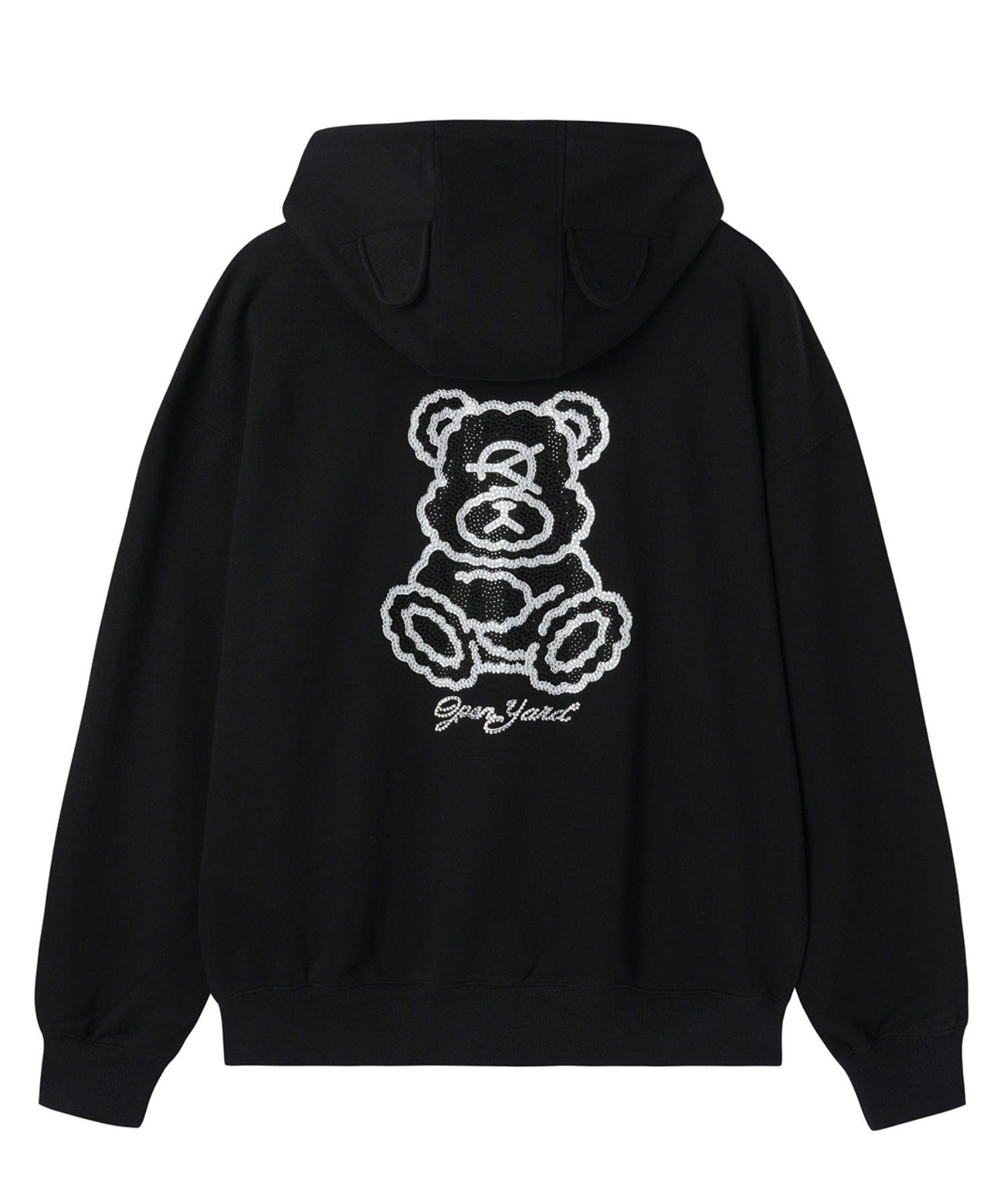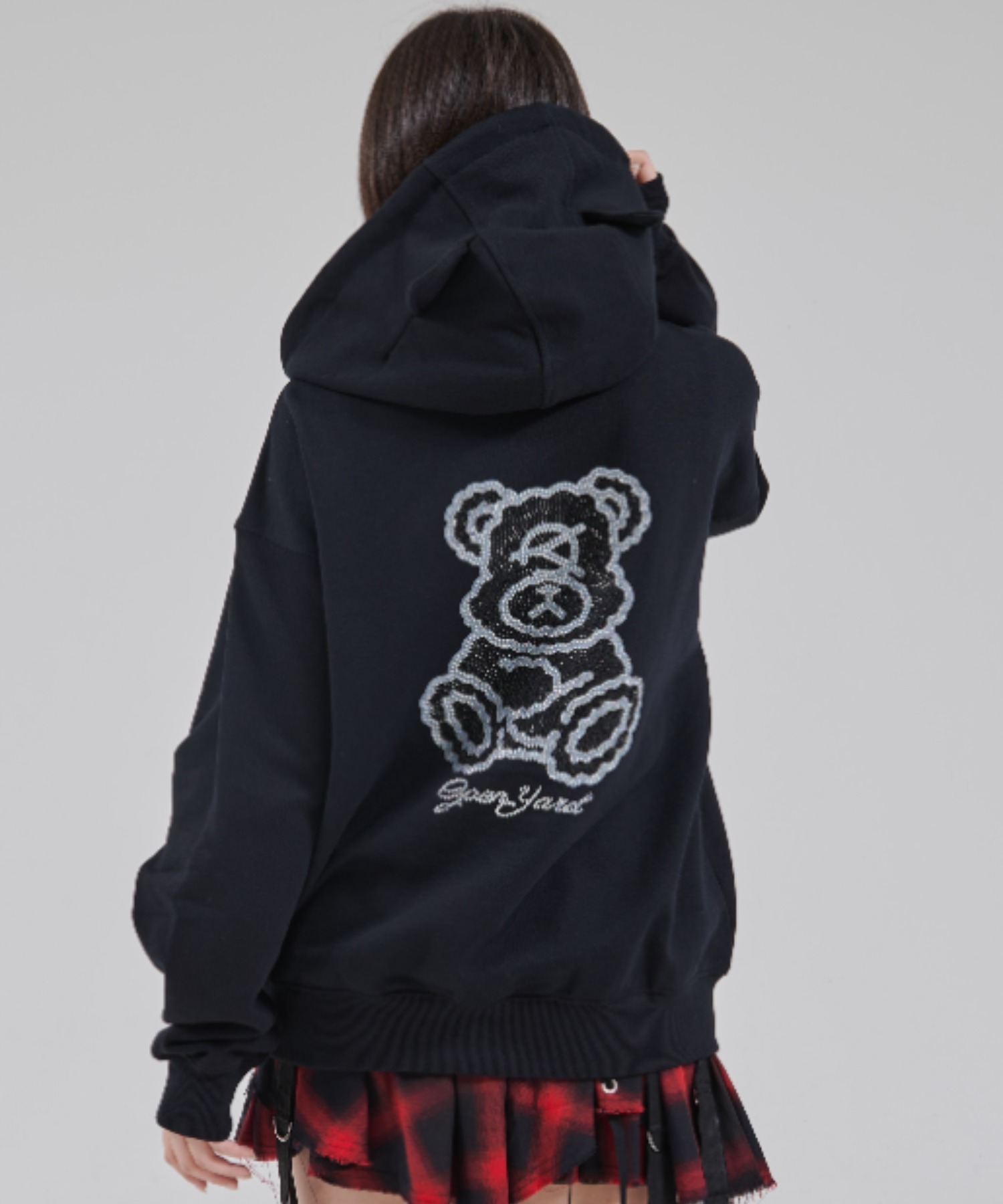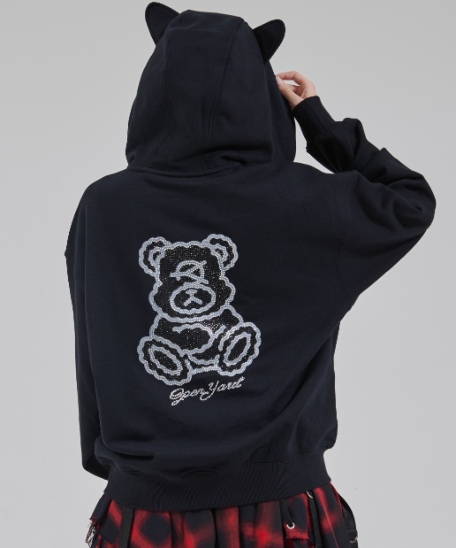 On the back, a large bear motif is rendered in raised stones, combining standout presence with a cute aesthetic.