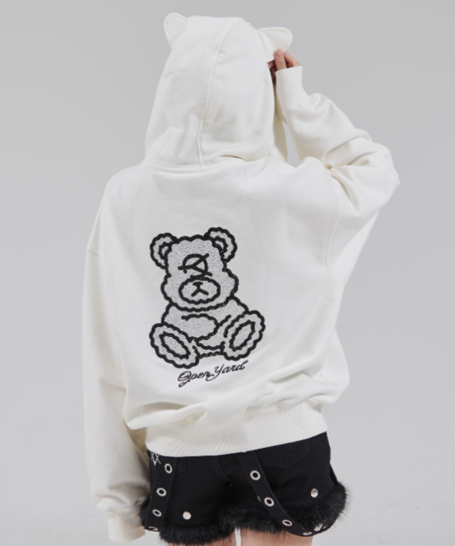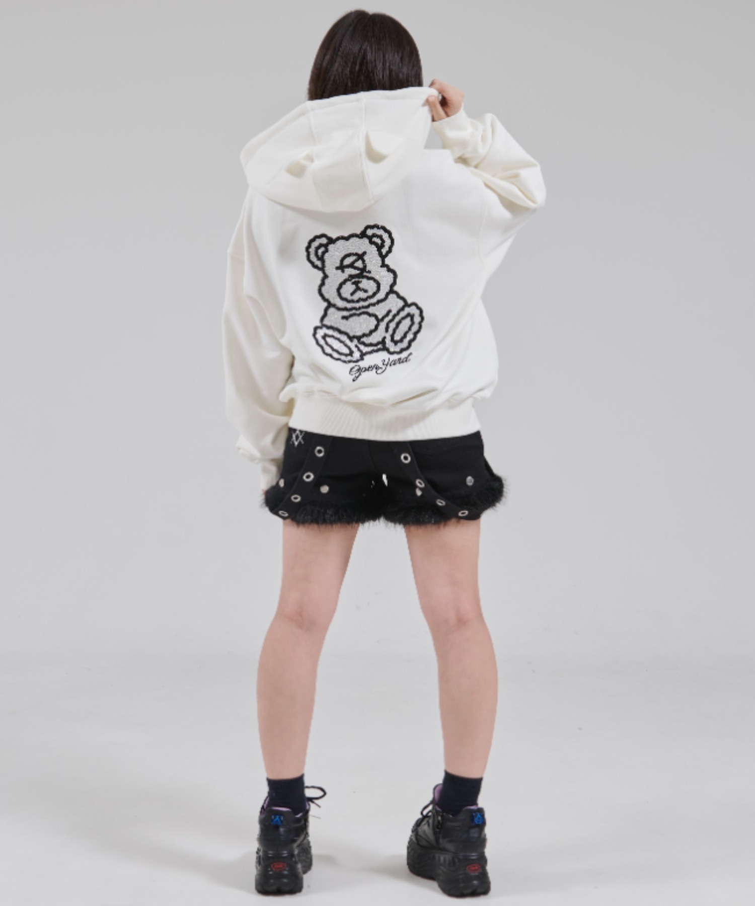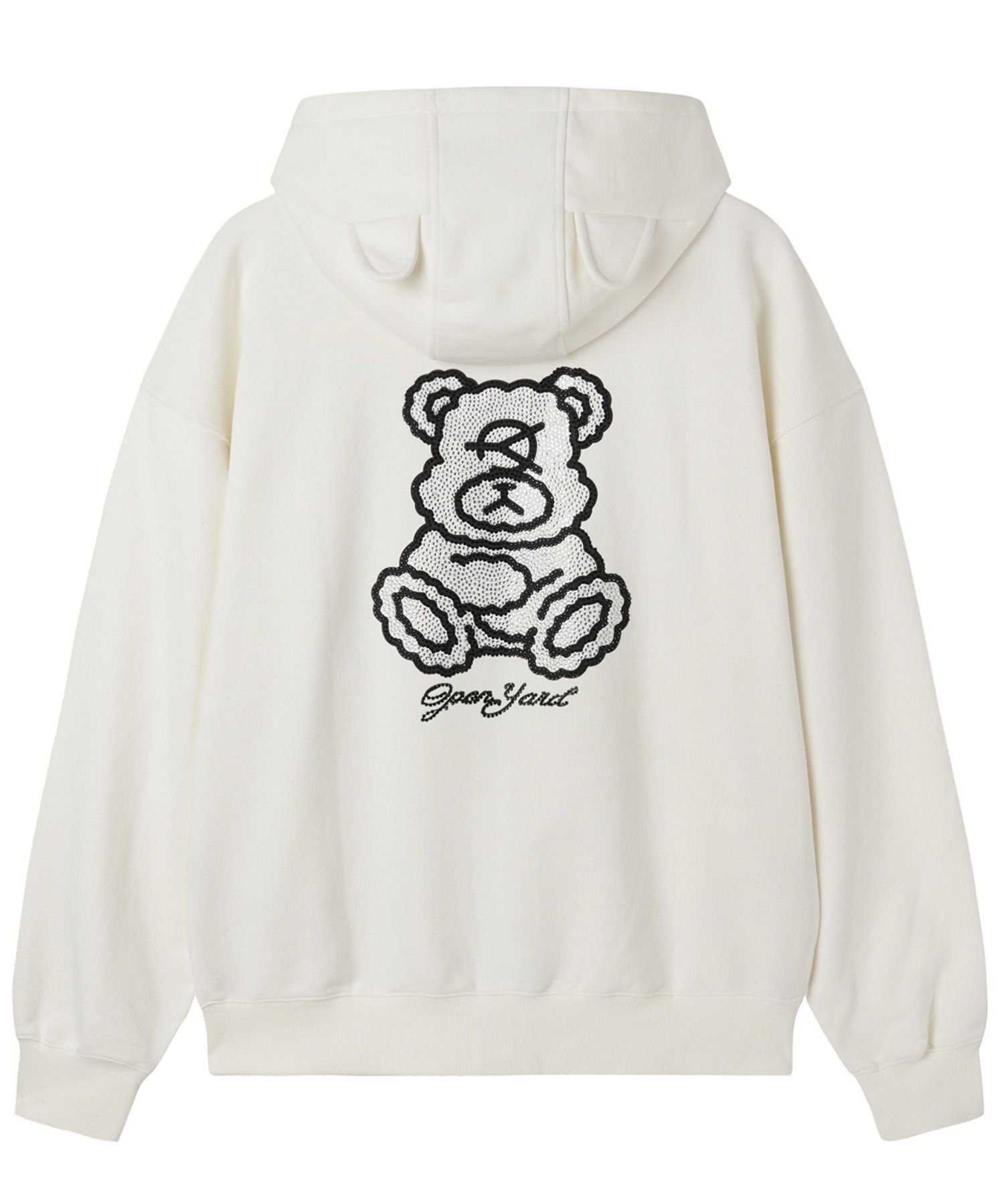 On the back, a large bear motif is rendered in raised stones, combining standout presence with a cute aesthetic.