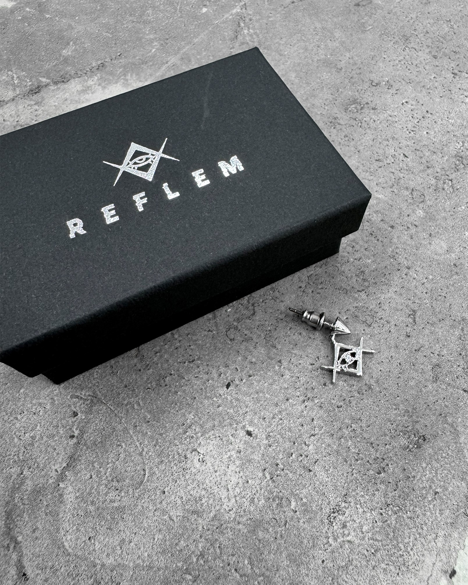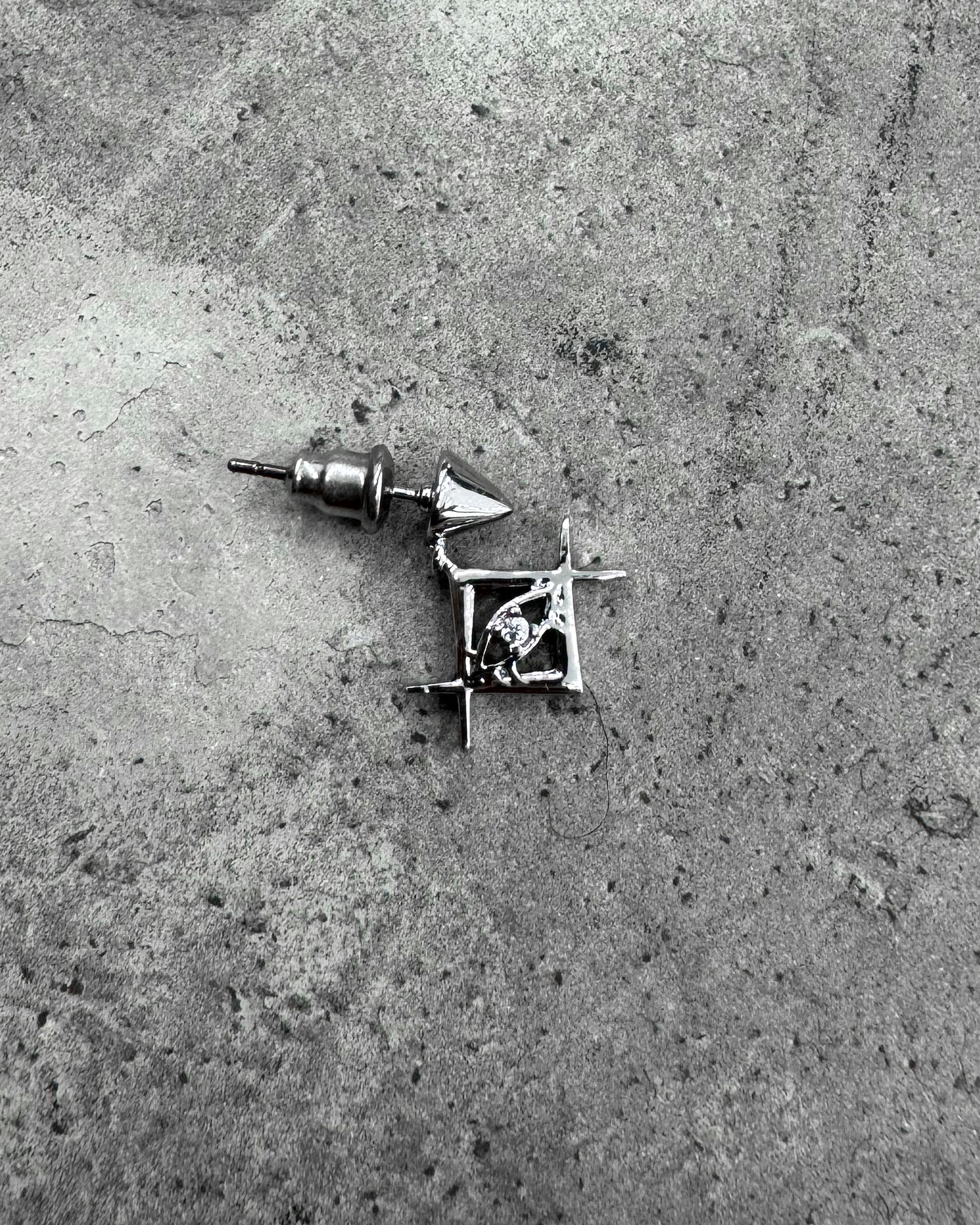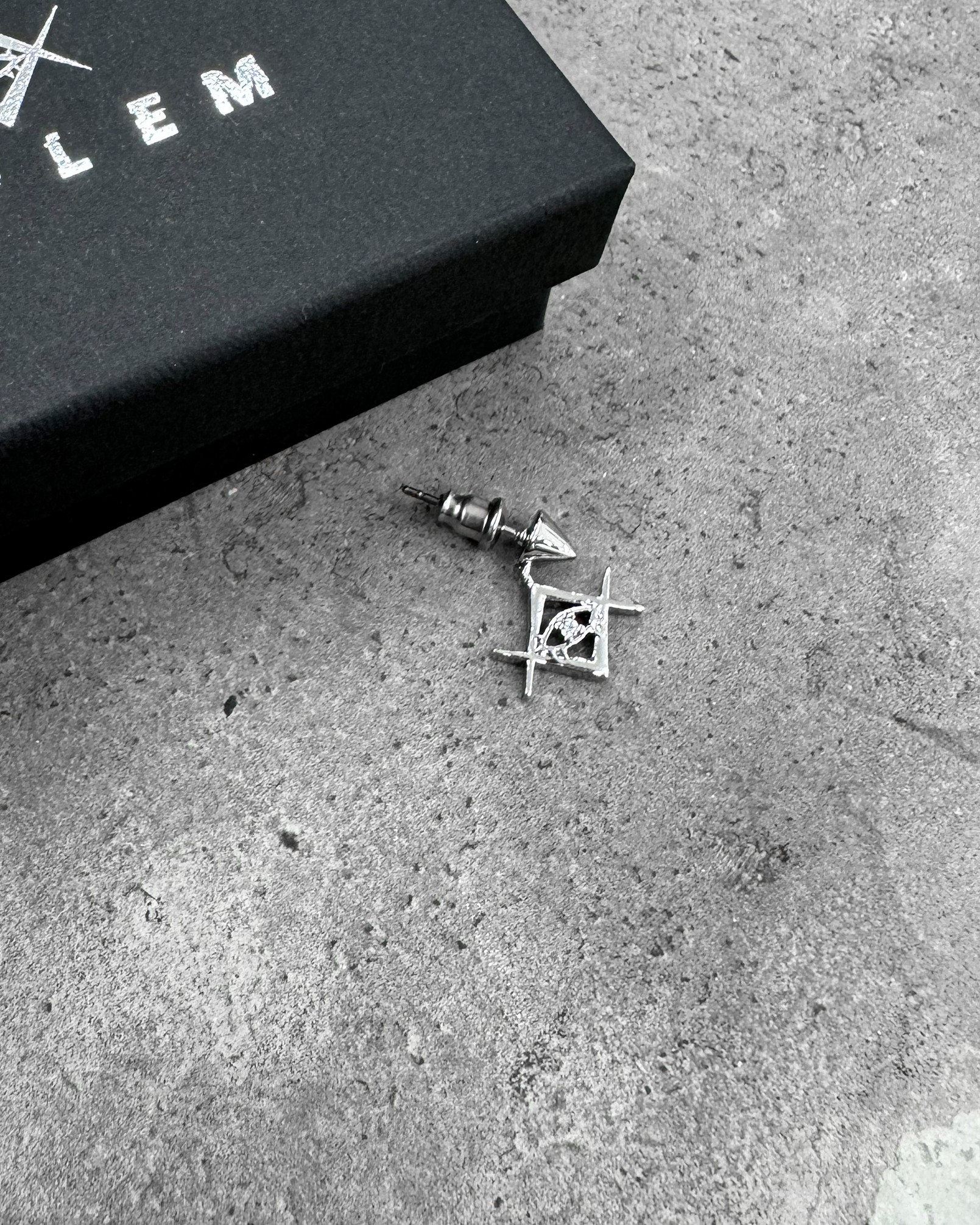 Stud earrings featuring a “Thorn Eye” logo charm.