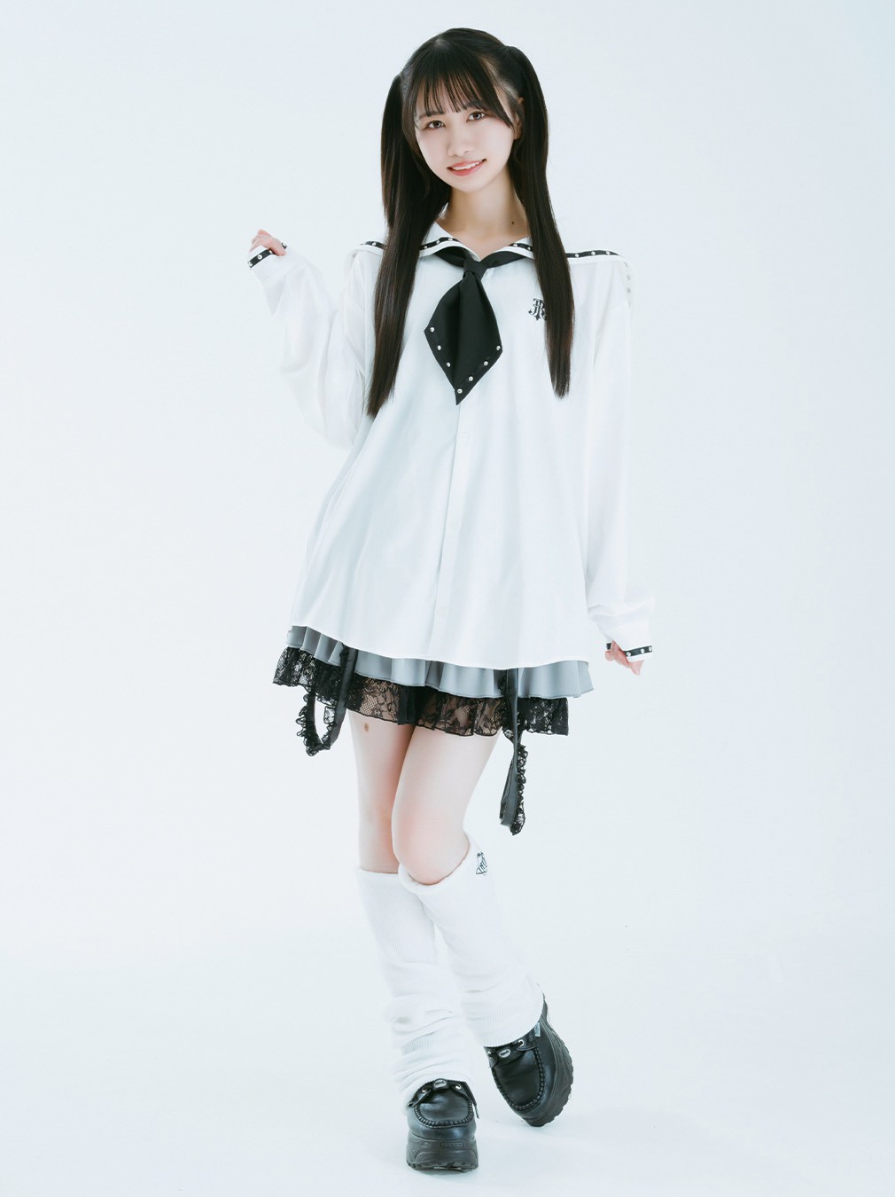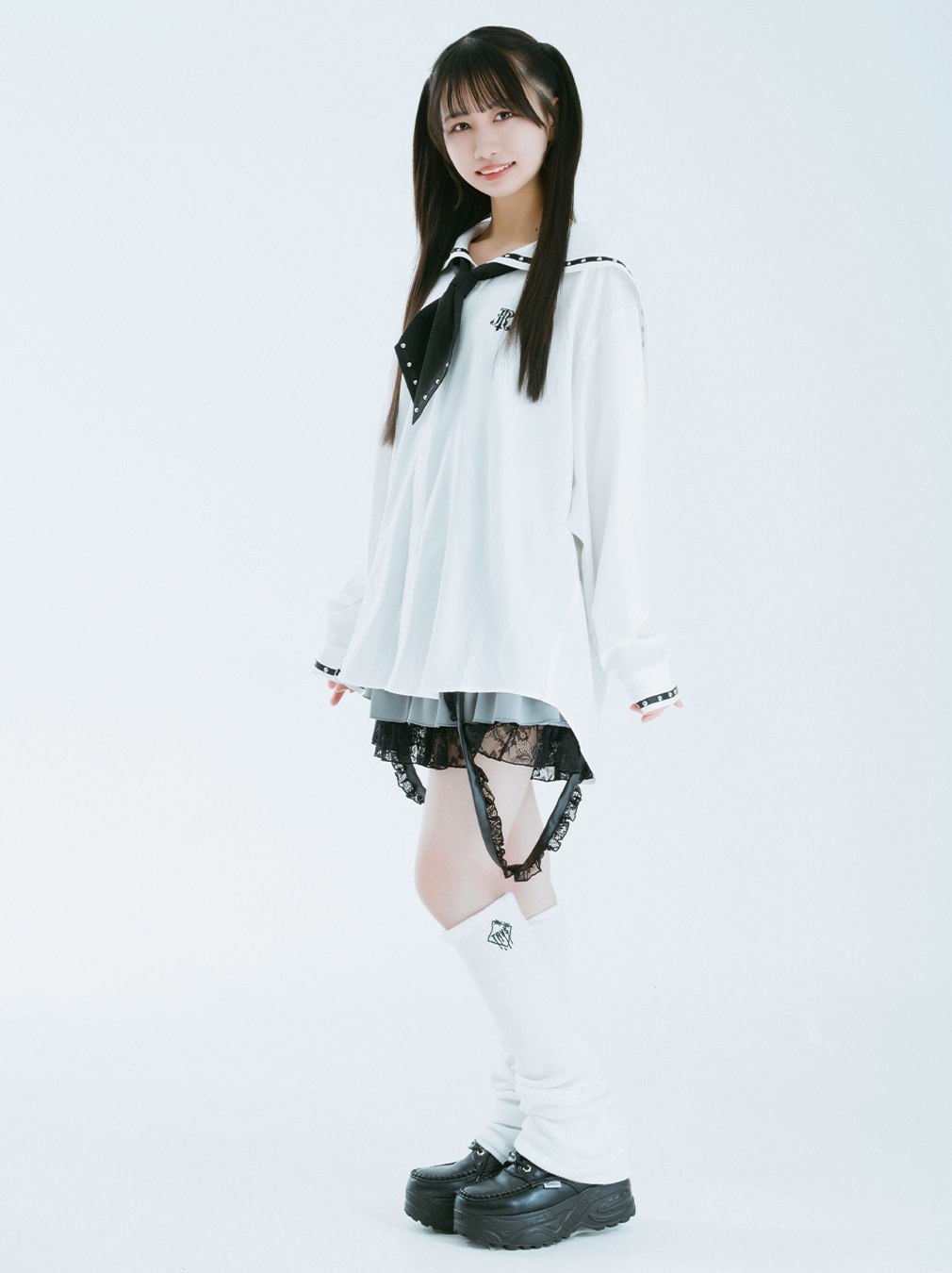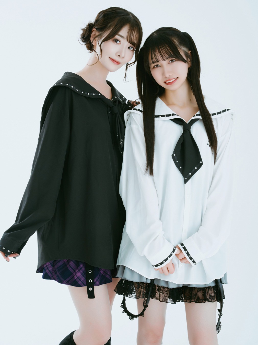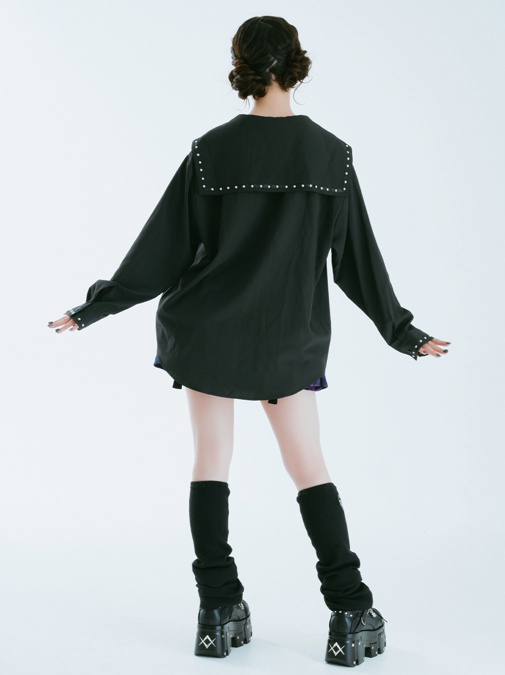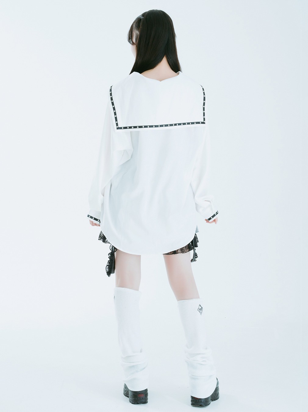 A piece that blends the refined look of a sailor collar with the edgy touch of studded line tape.