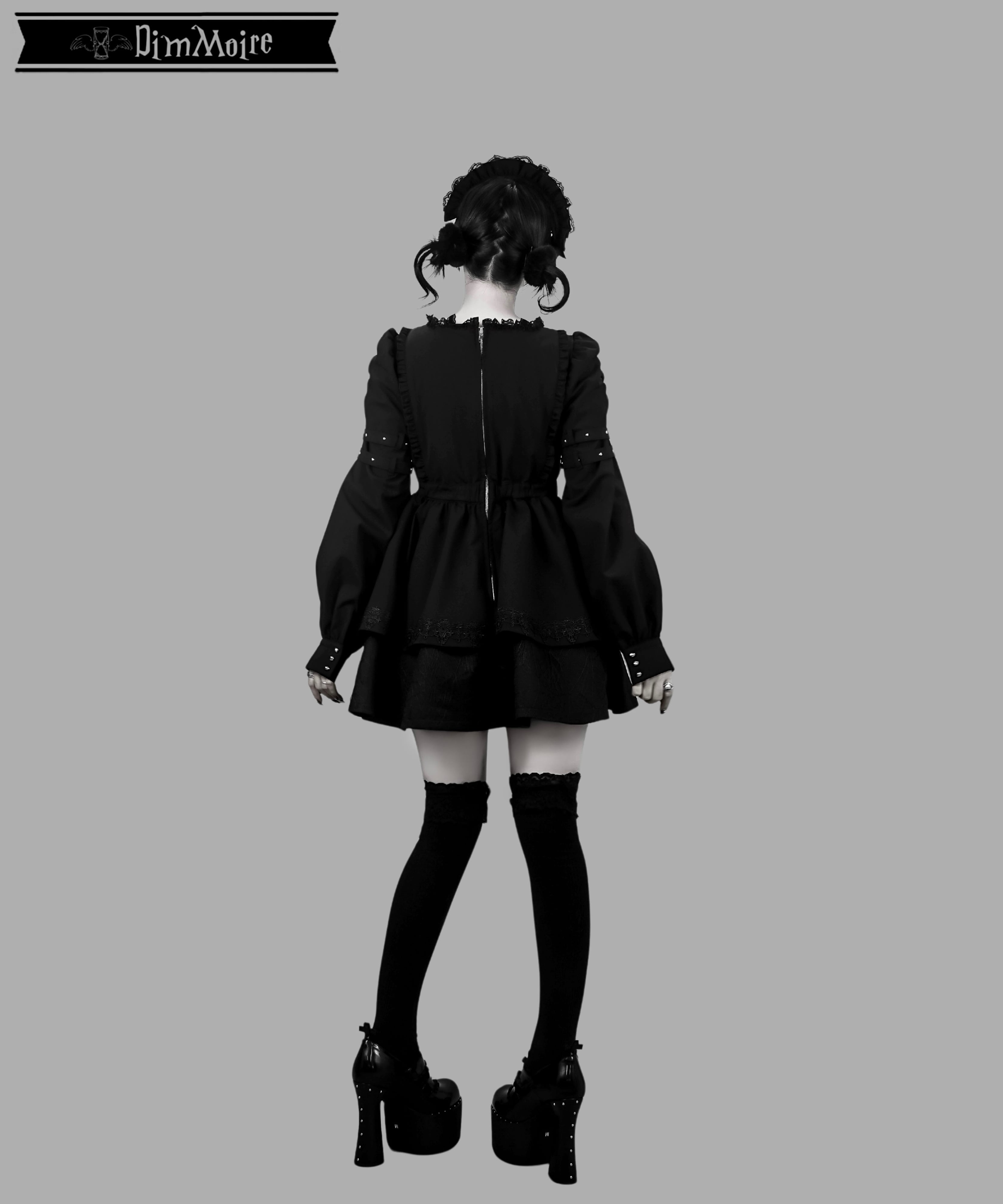 The lowest tier of the skirt is trimmed with spiderweb-pattern lace, enhancing the gothic mood.
