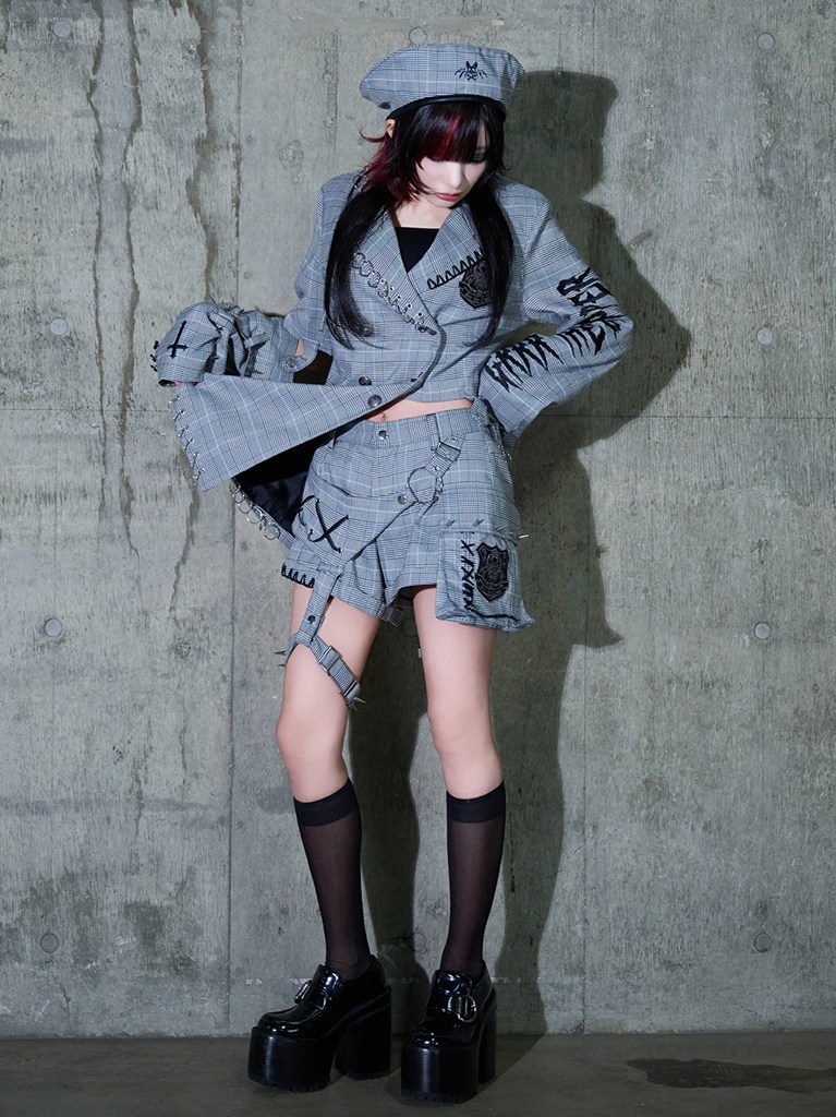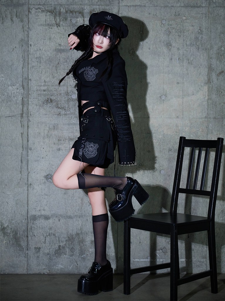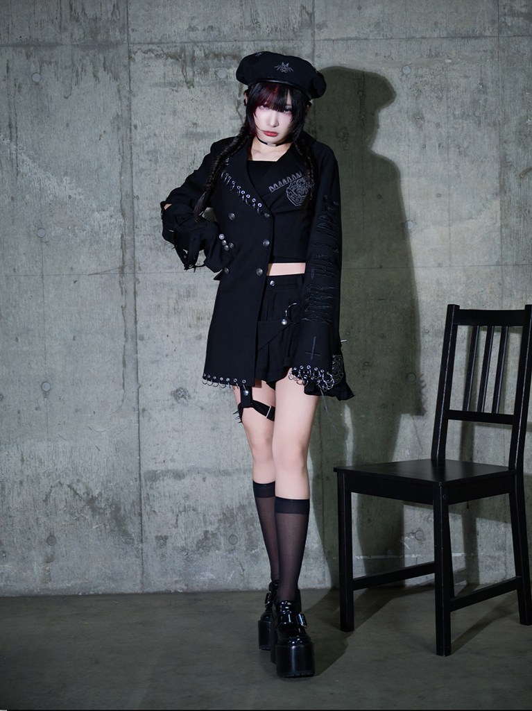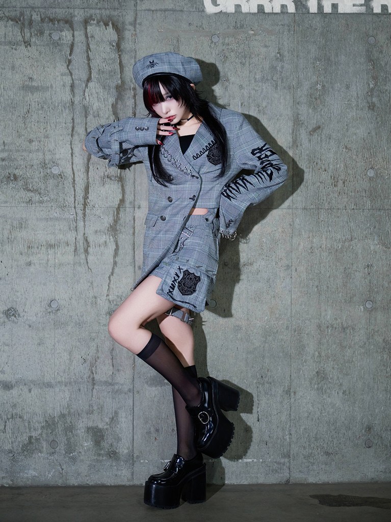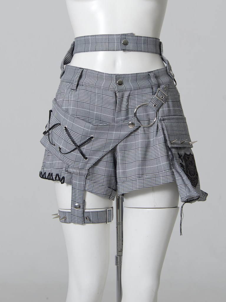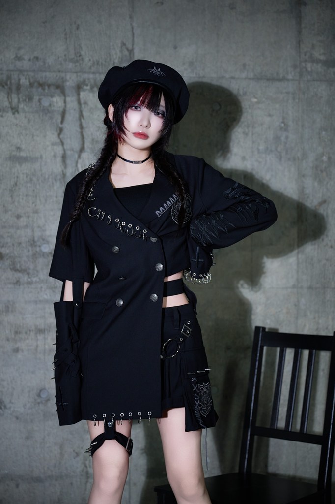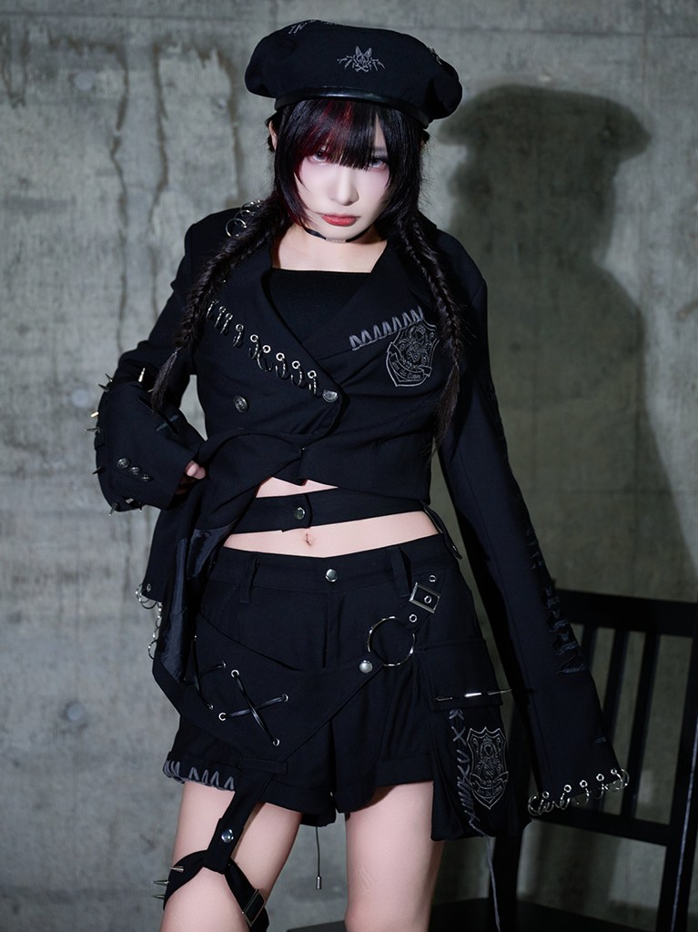 Featuring a double-layered waist specification that adds an edgy touch to your styling. The asymmetrical design consists of a cargo pocket on the left and a basic pocket on the right. Layered fabric is applied throughout to evoke the ruggedness and sense of decadence unique to Grrr. The right leg is equipped with a leg garter, serving as a high-impact, functional accent.