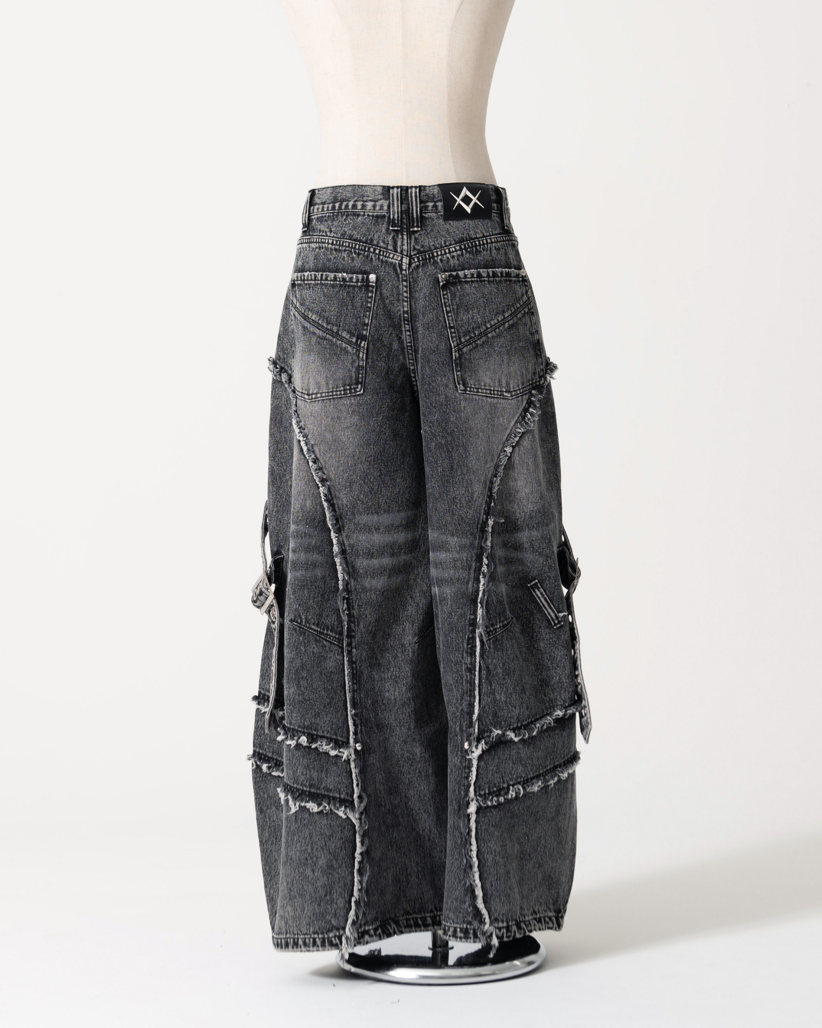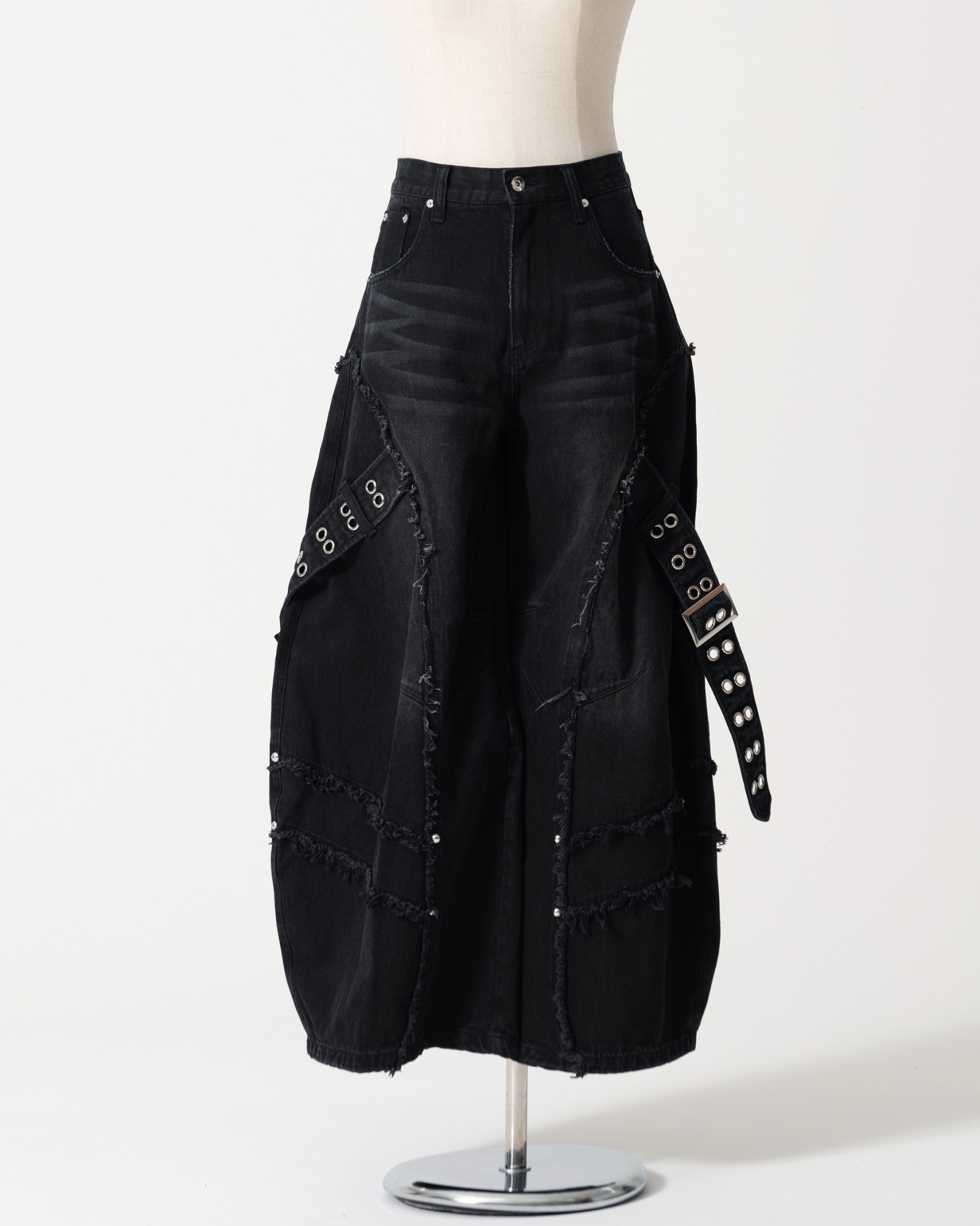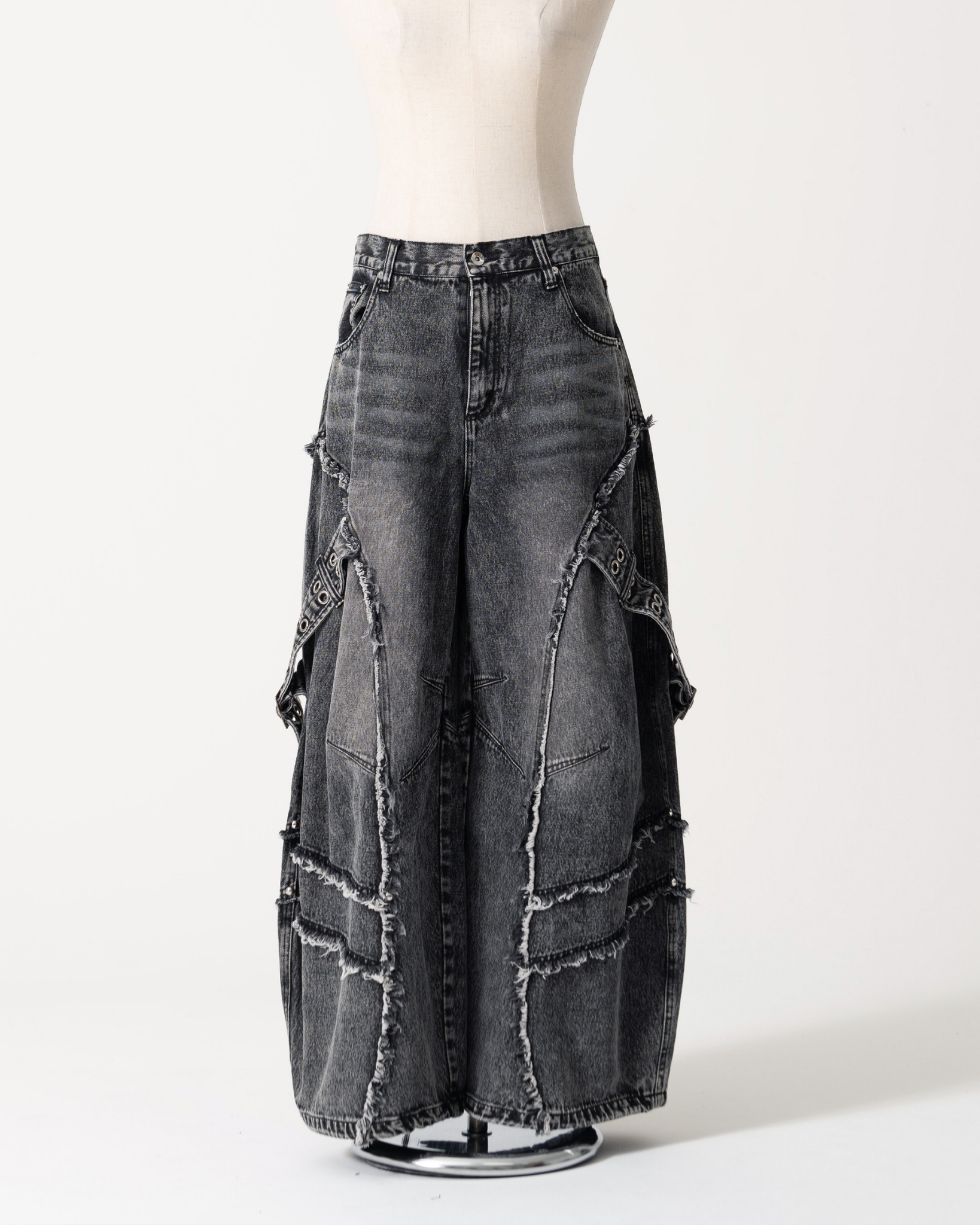 Wide denim pants featuring a trendy barrel silhouette.