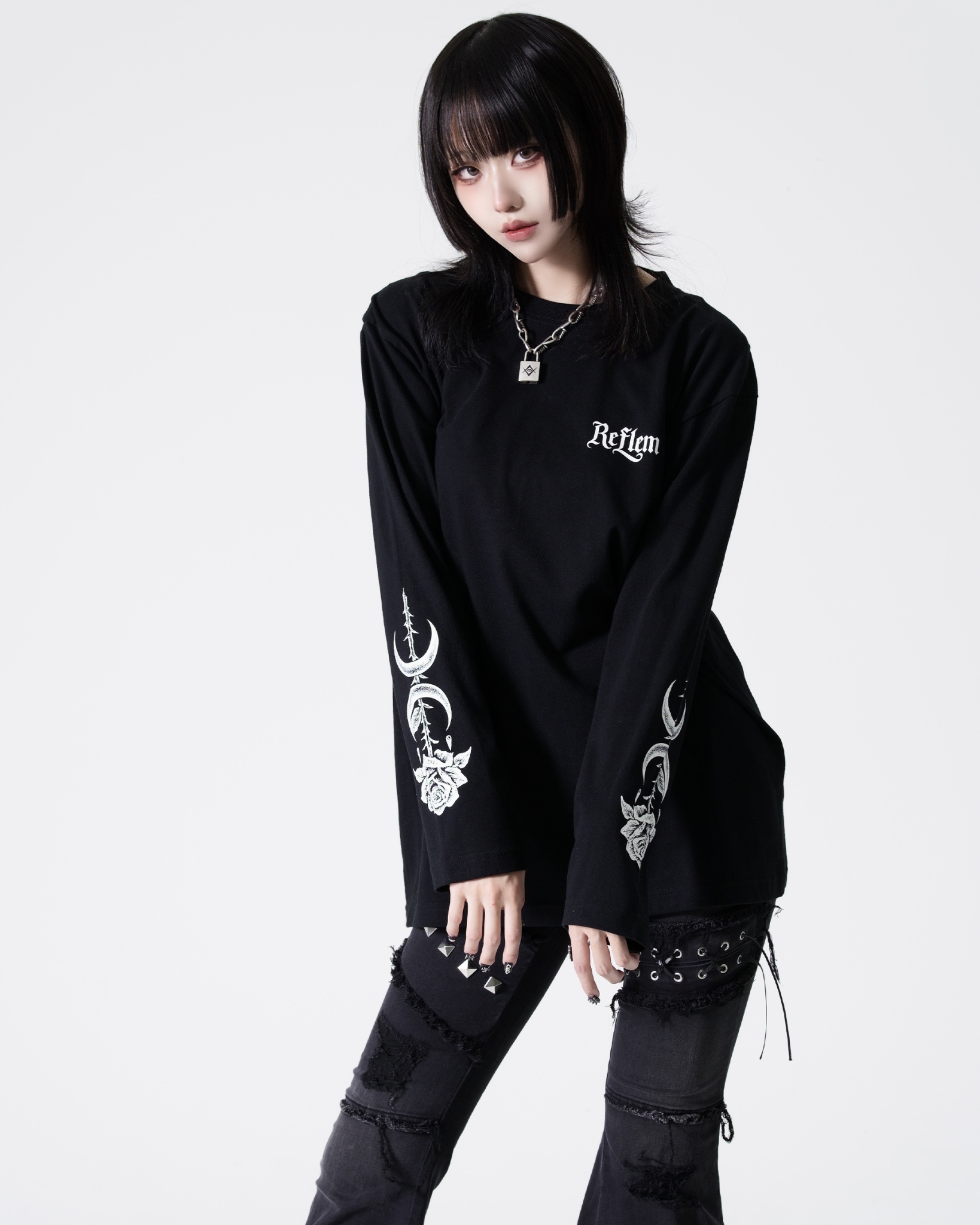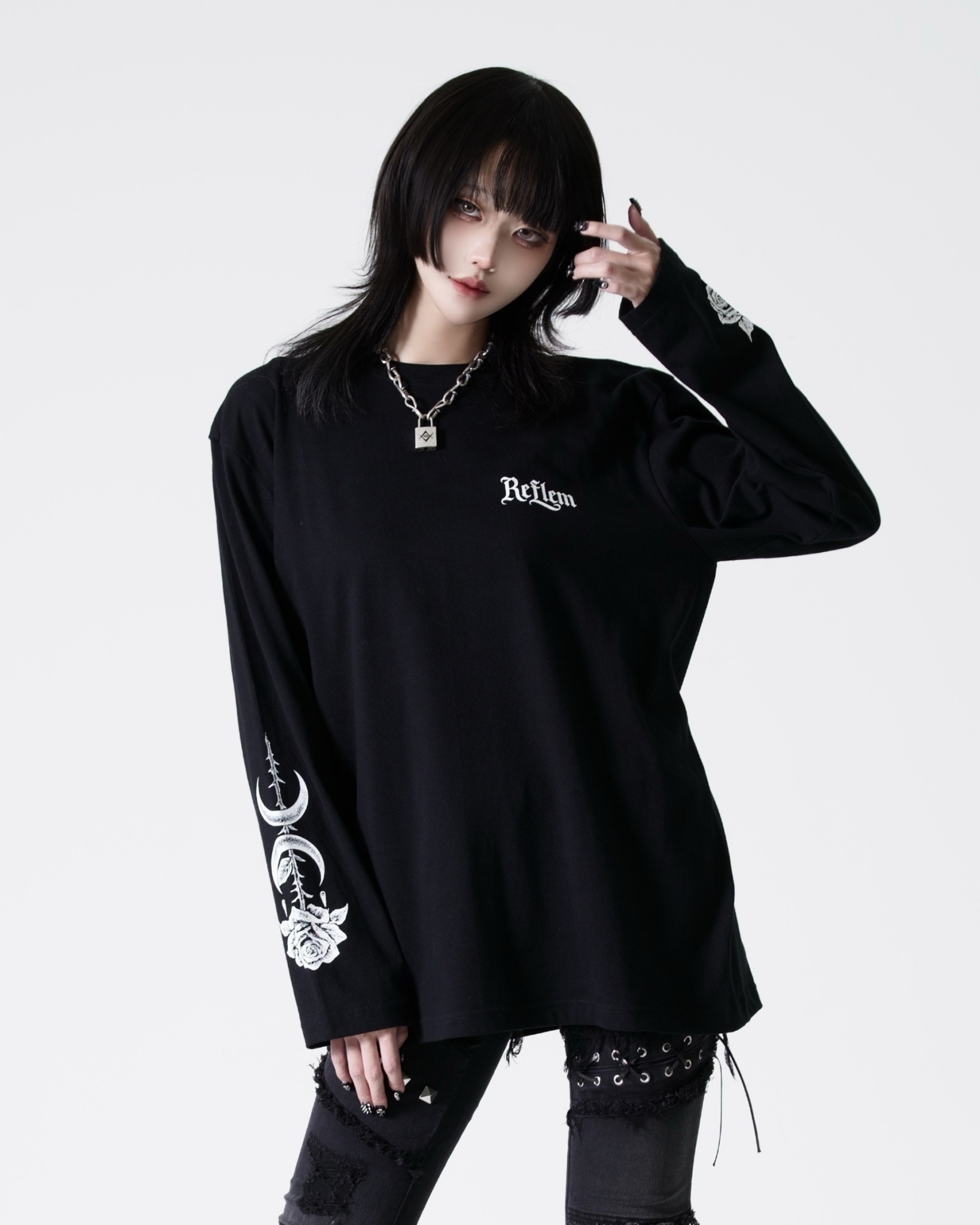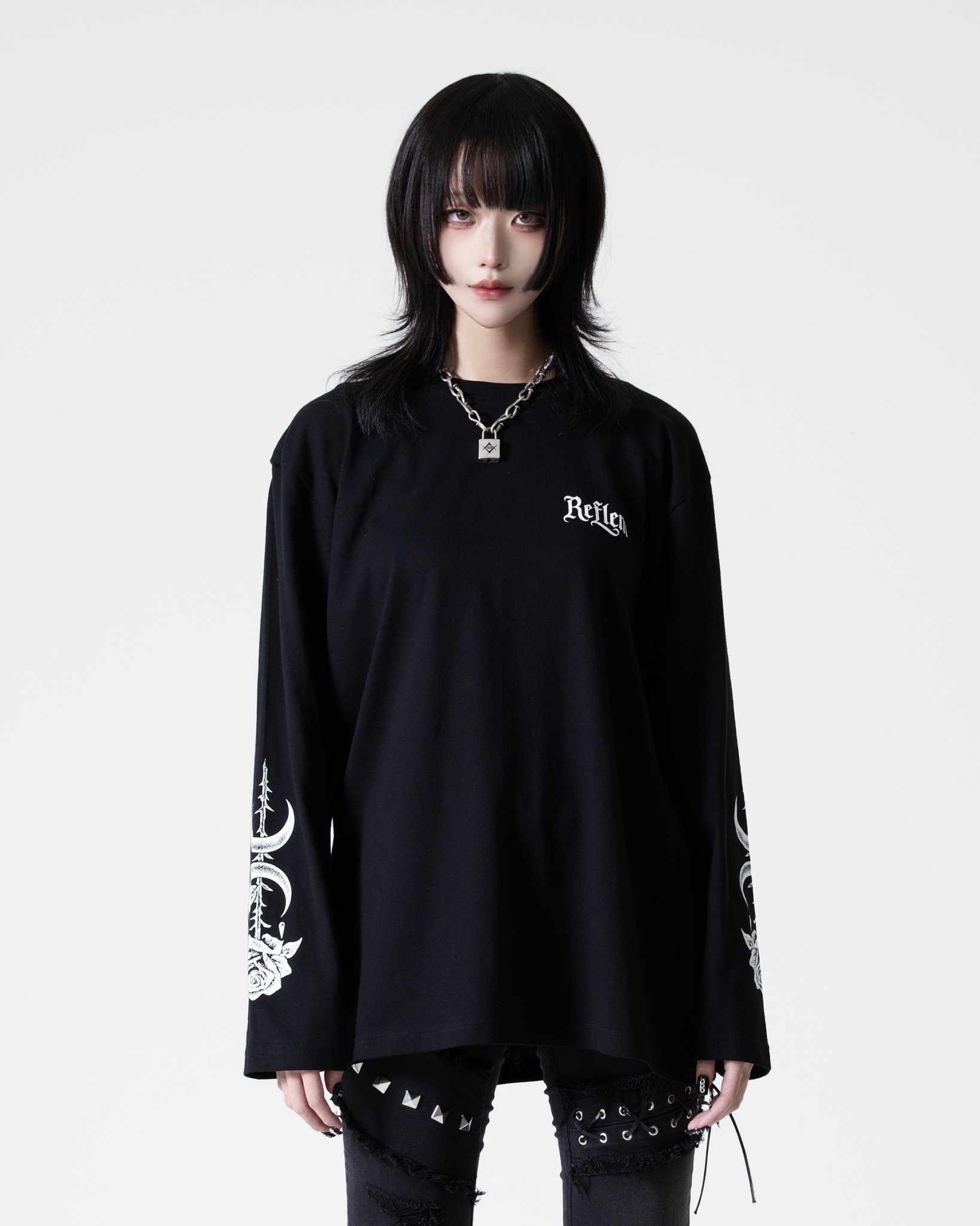 This piece expresses REFLEM’s signature dark street aesthetic.