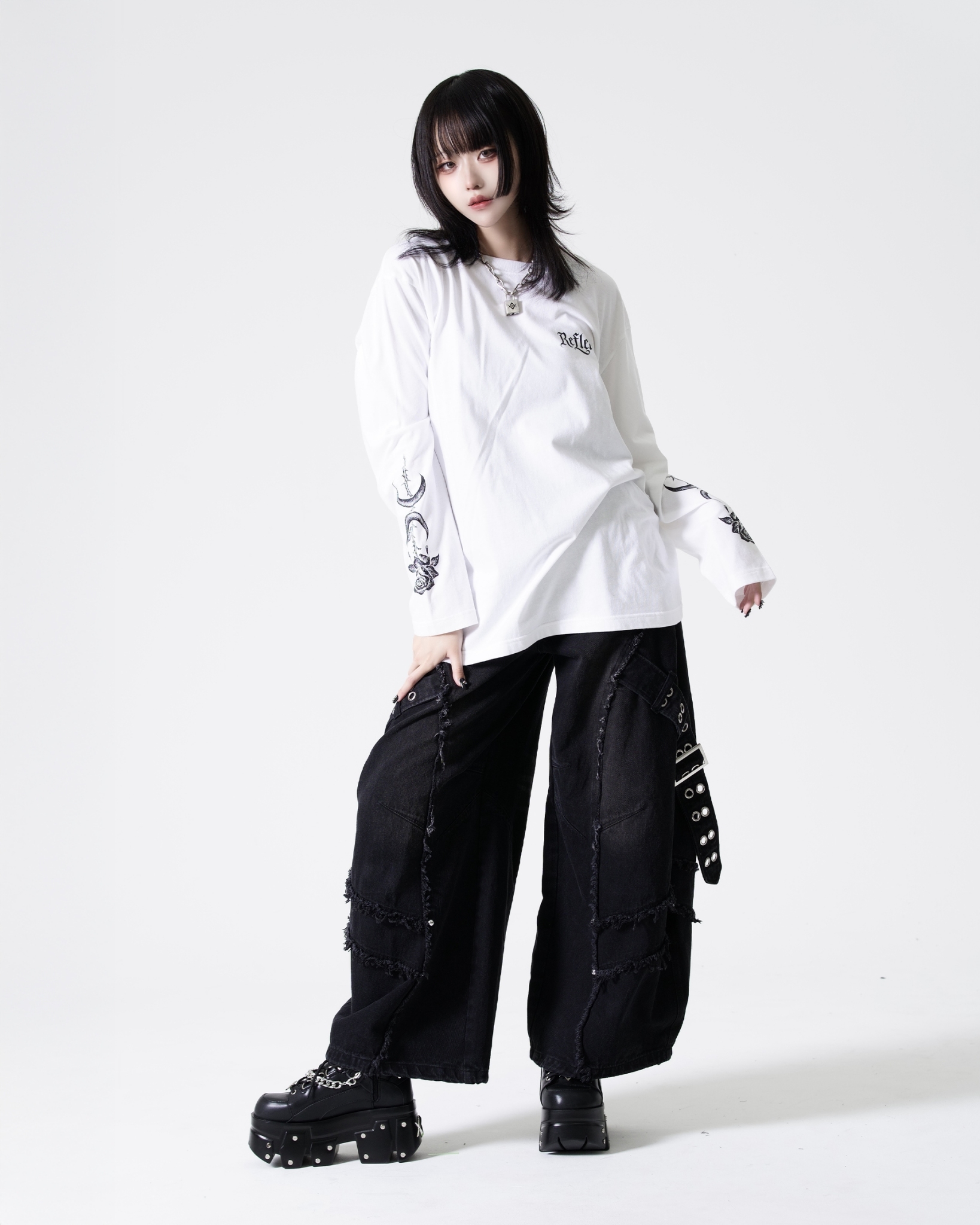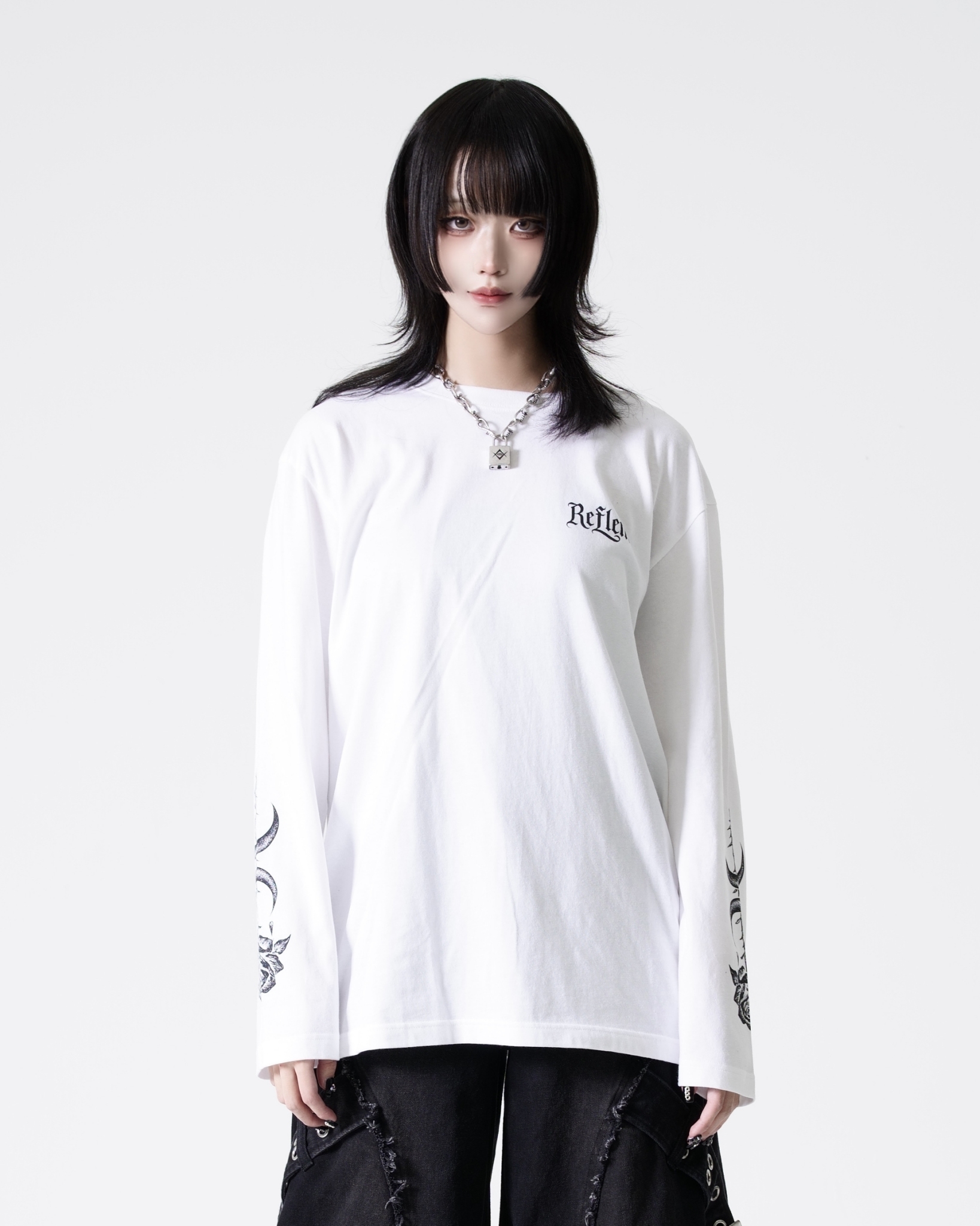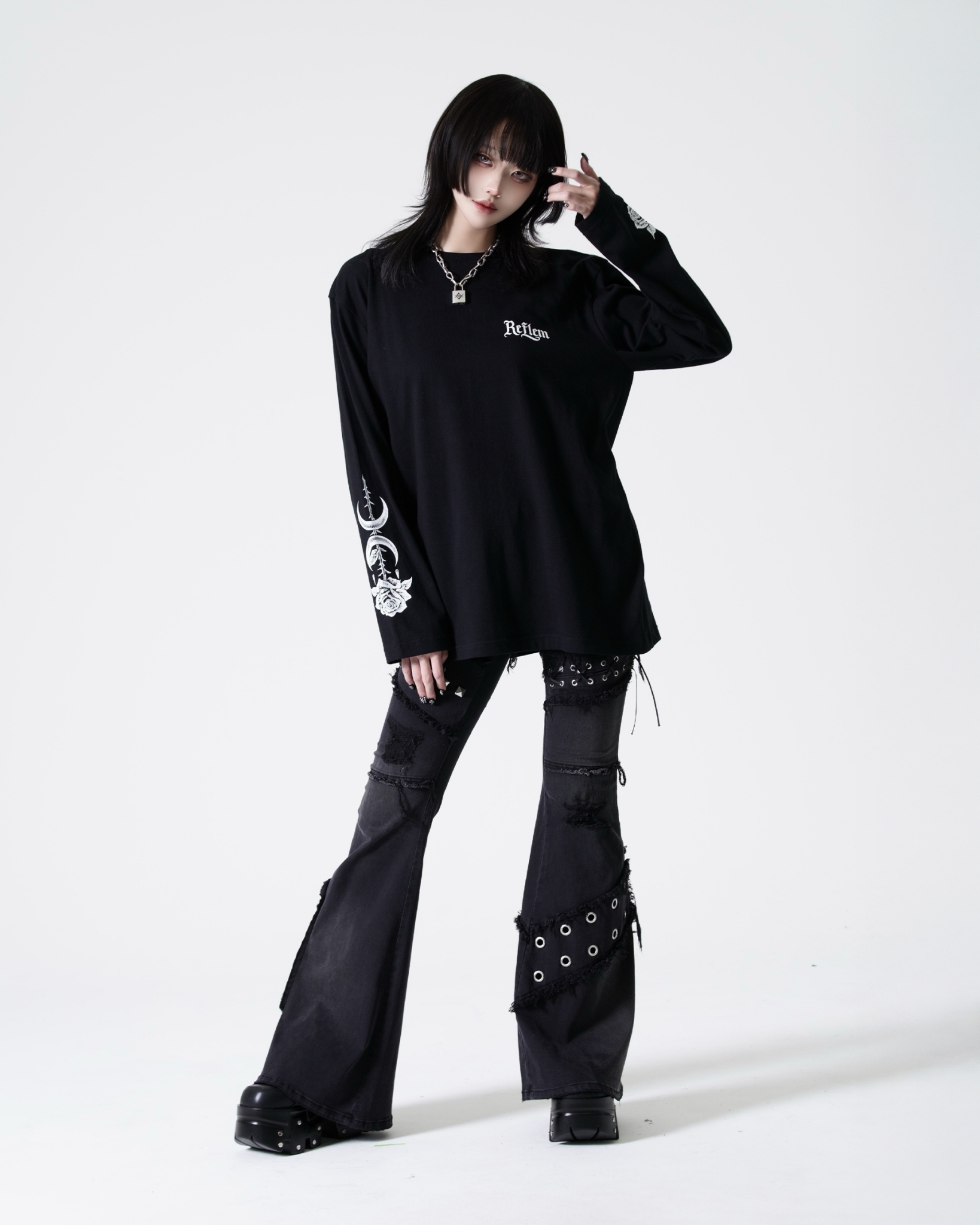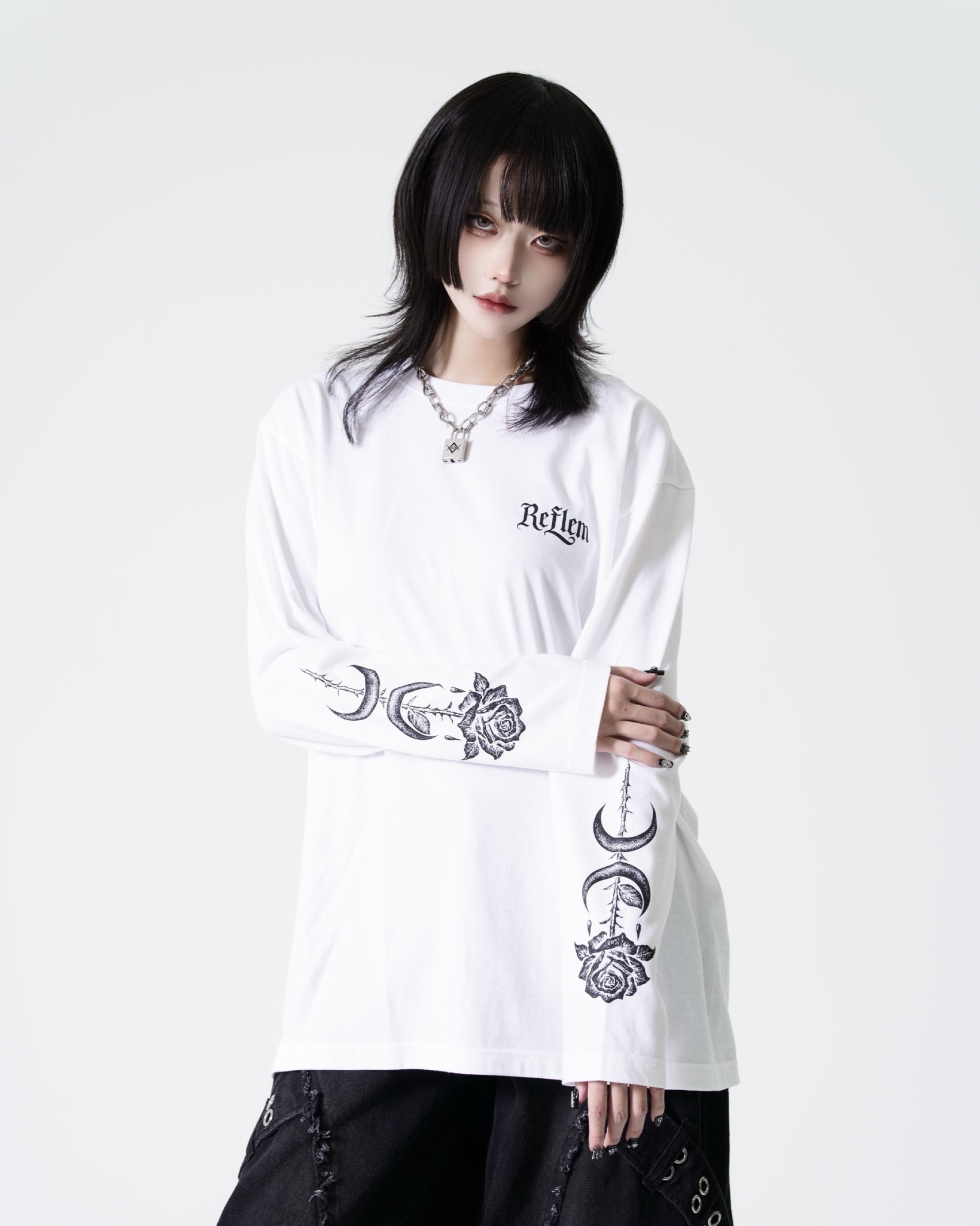This piece expresses REFLEM’s signature dark street aesthetic.