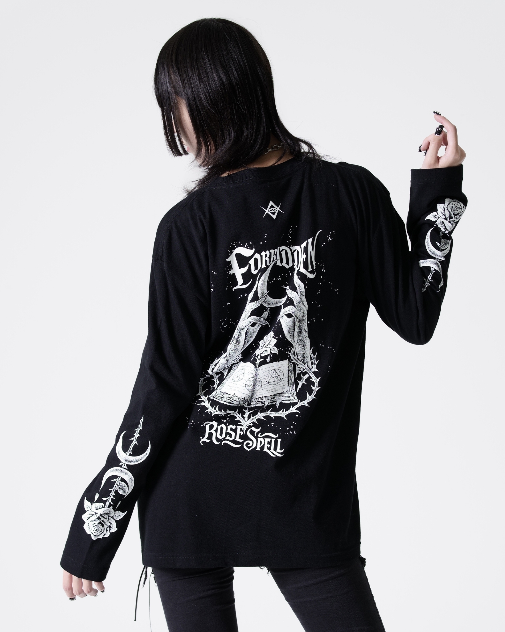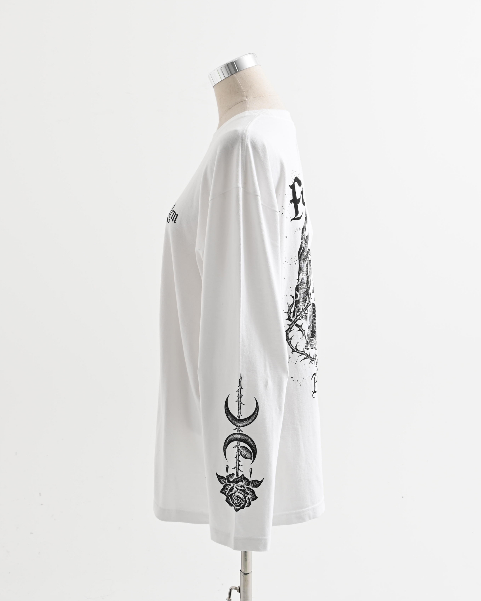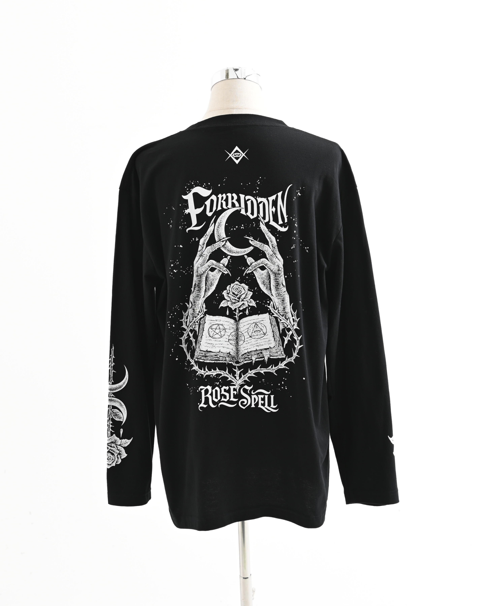 A long-sleeve cut-and-sew top featuring mysterious artwork.