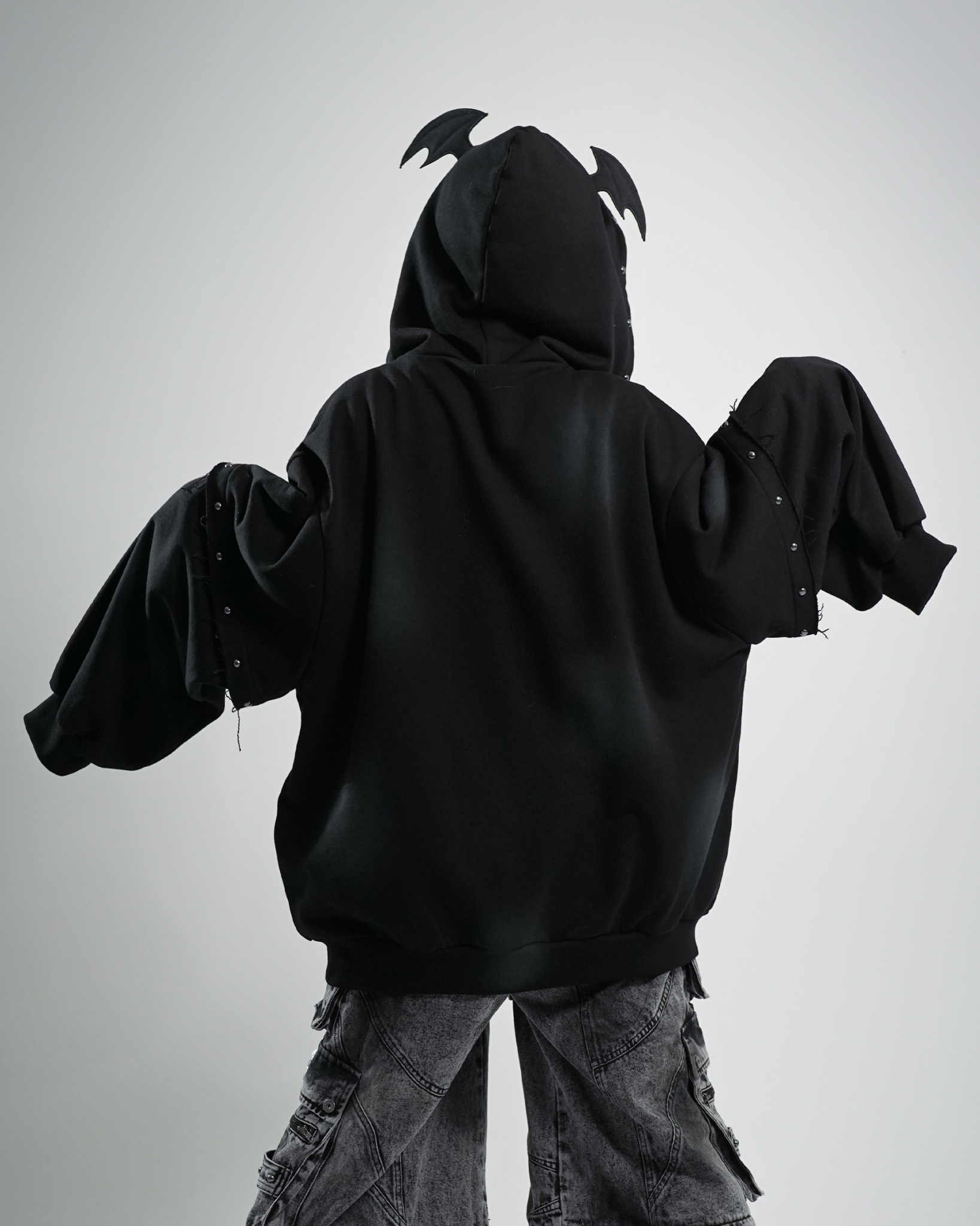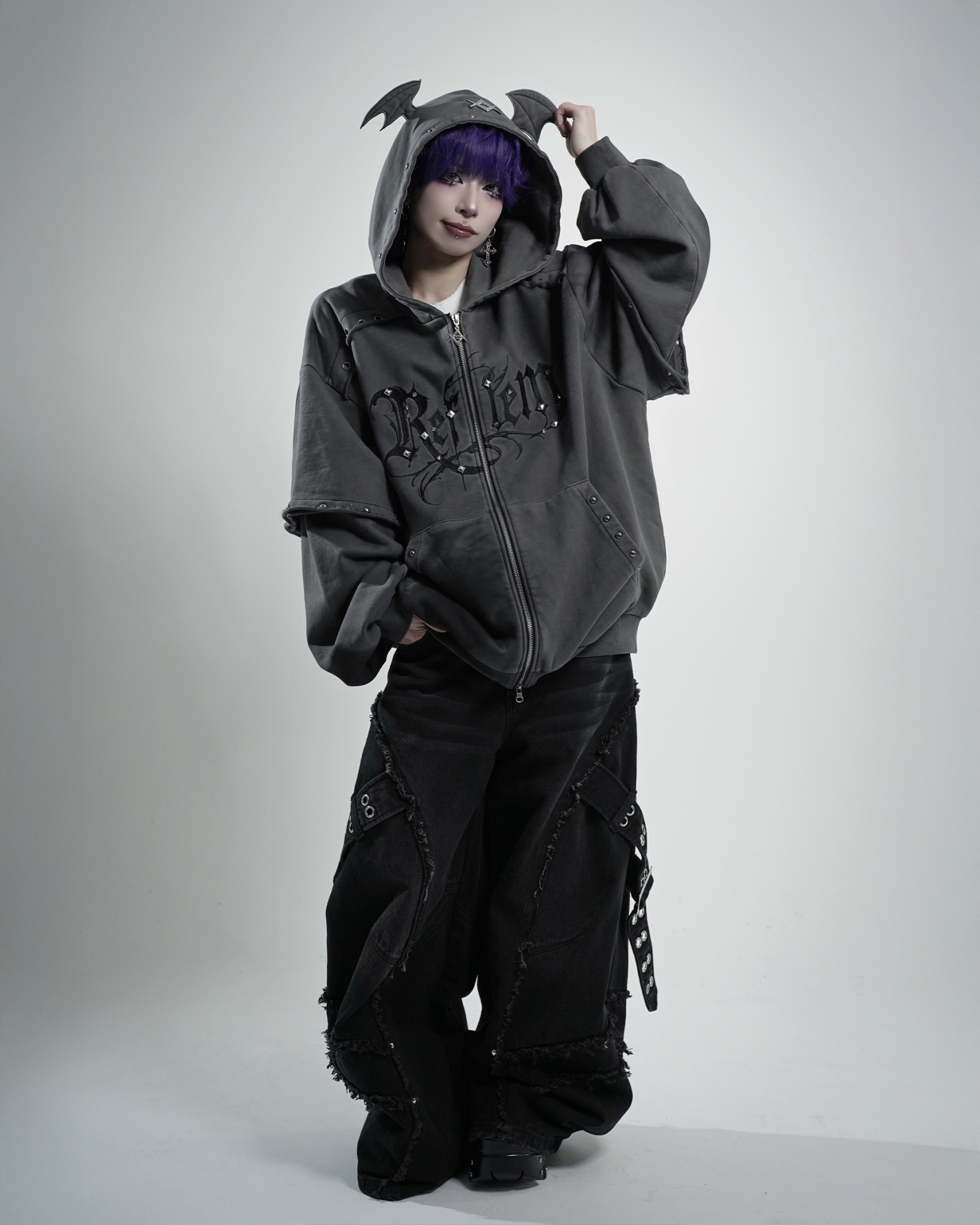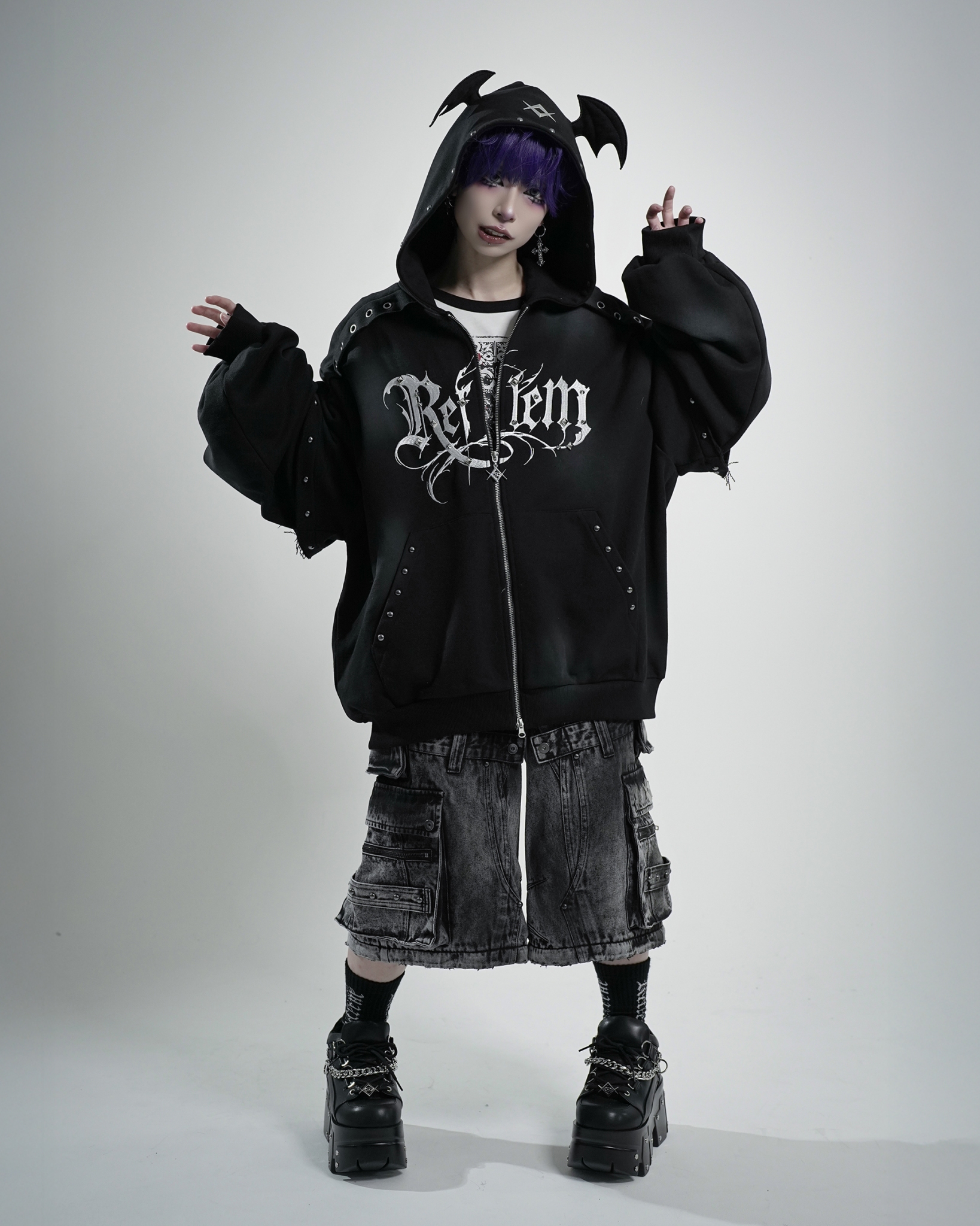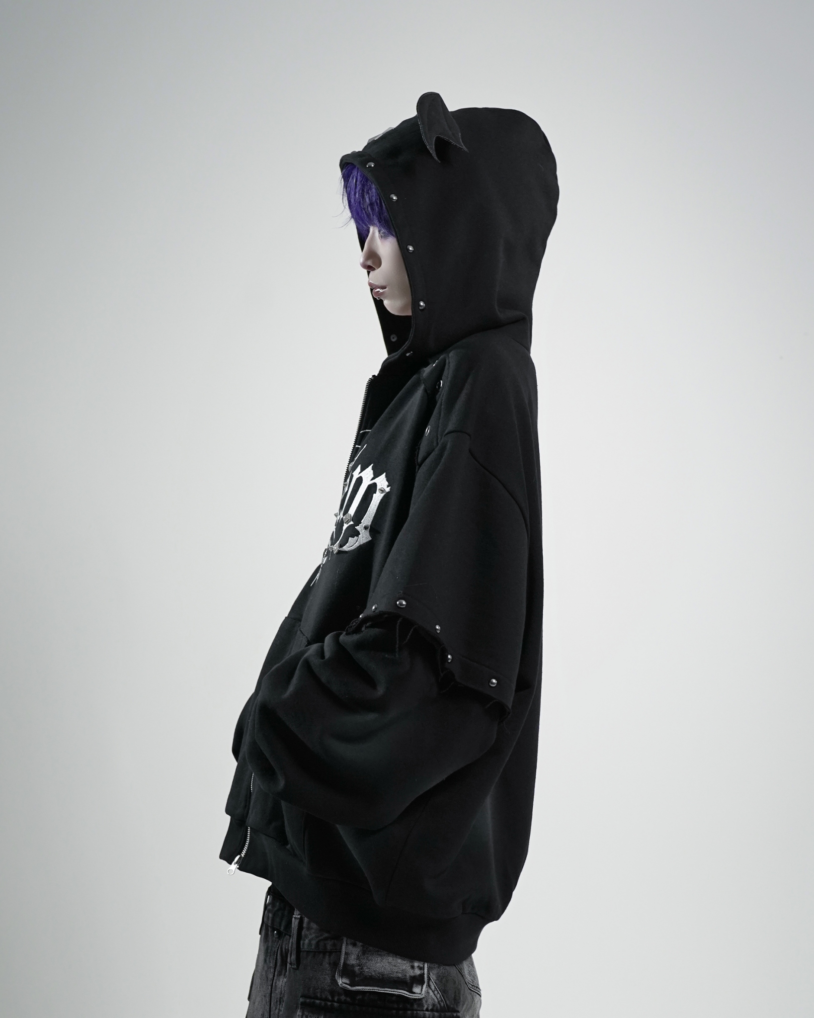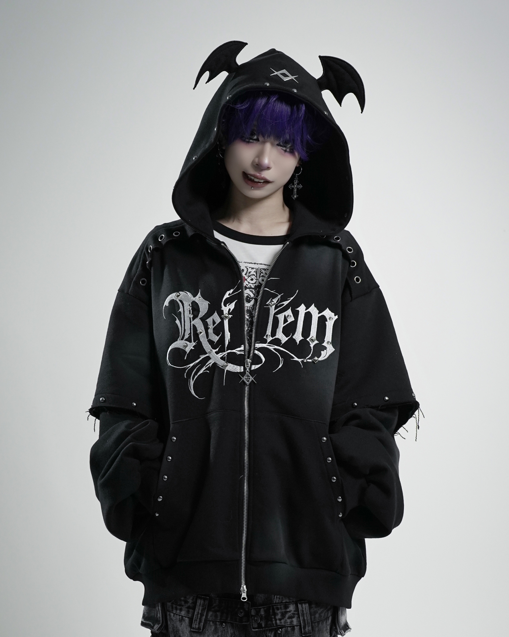 A Yami-Kawaii–inspired zip-up hoodie featuring a striking devil design.