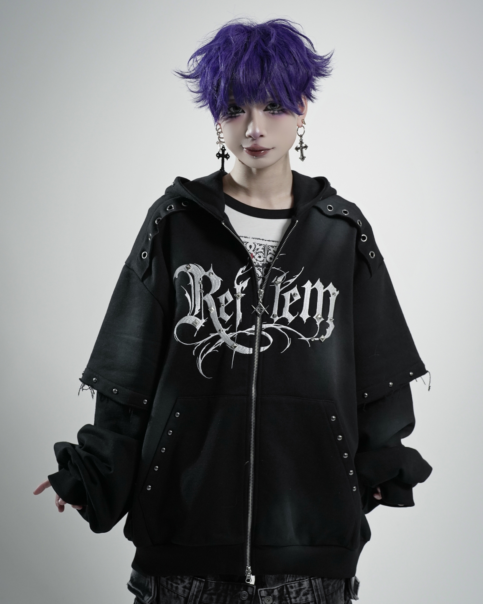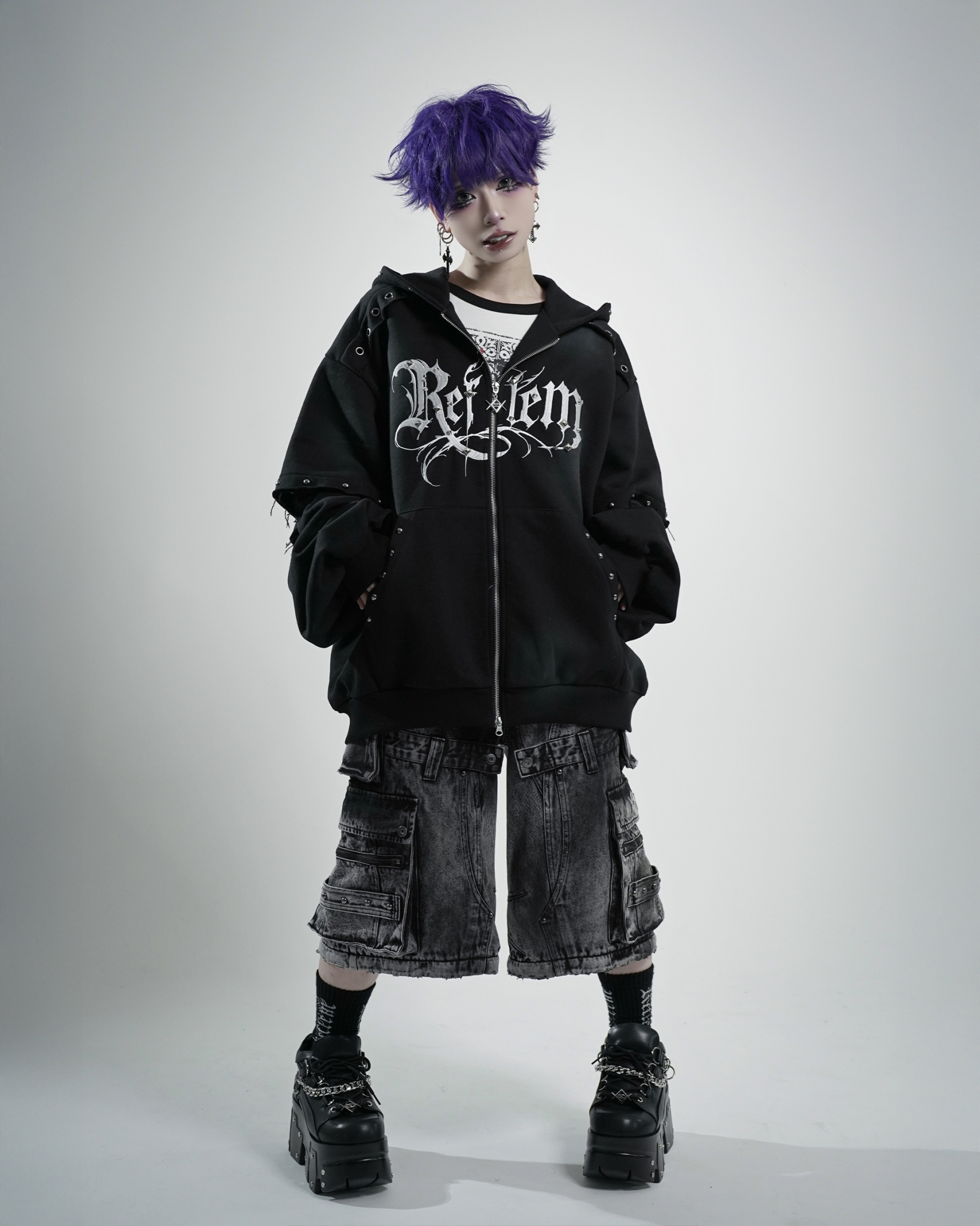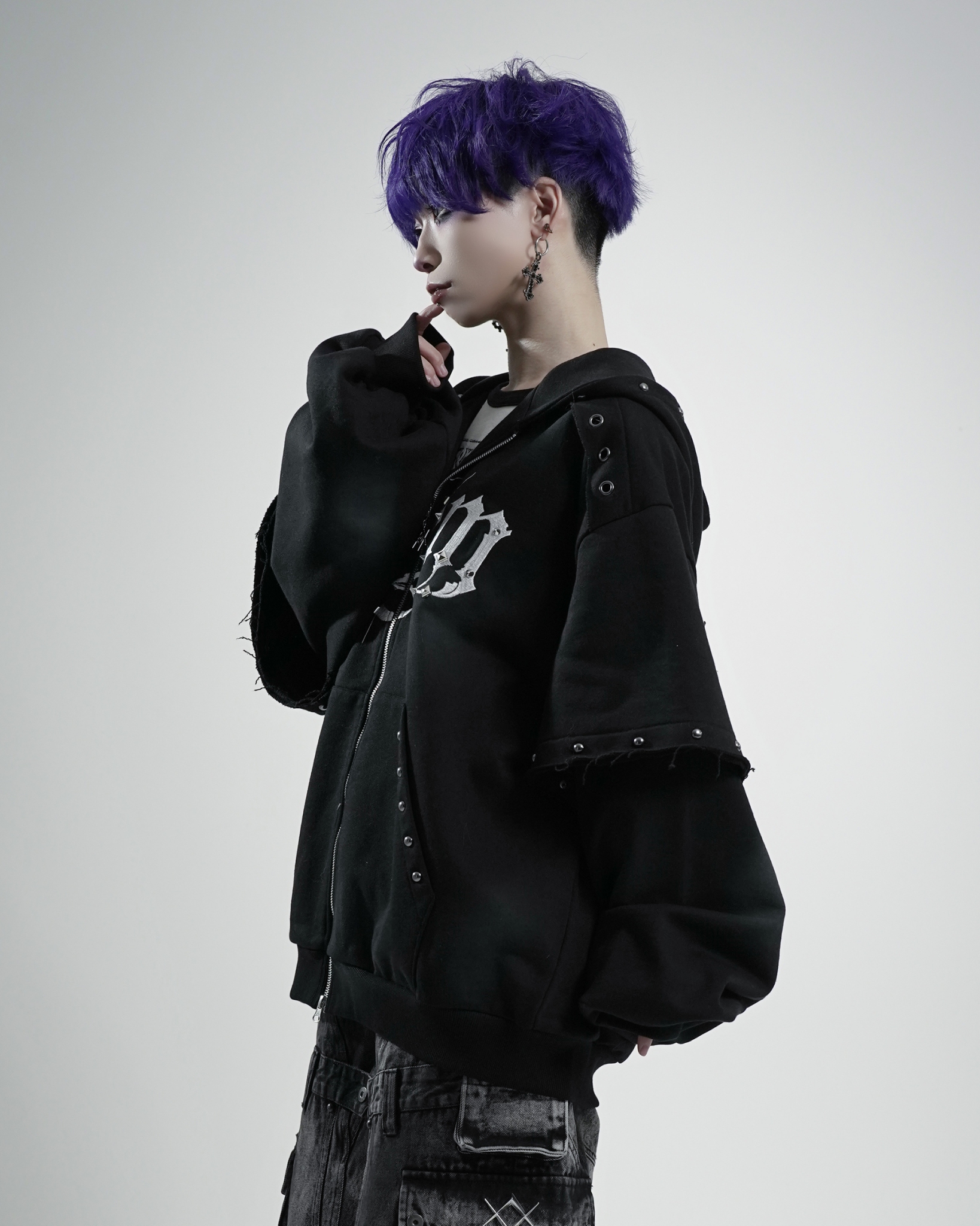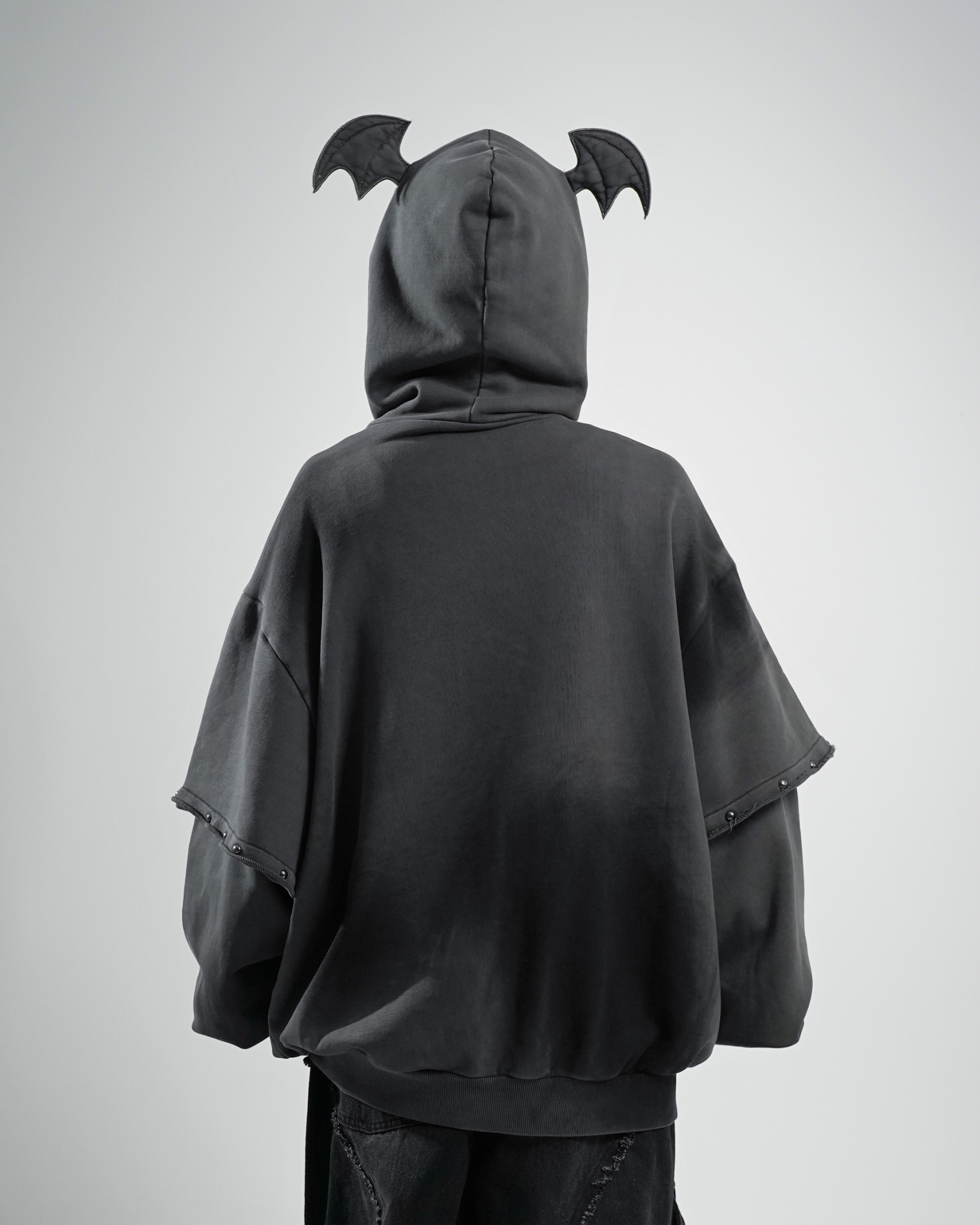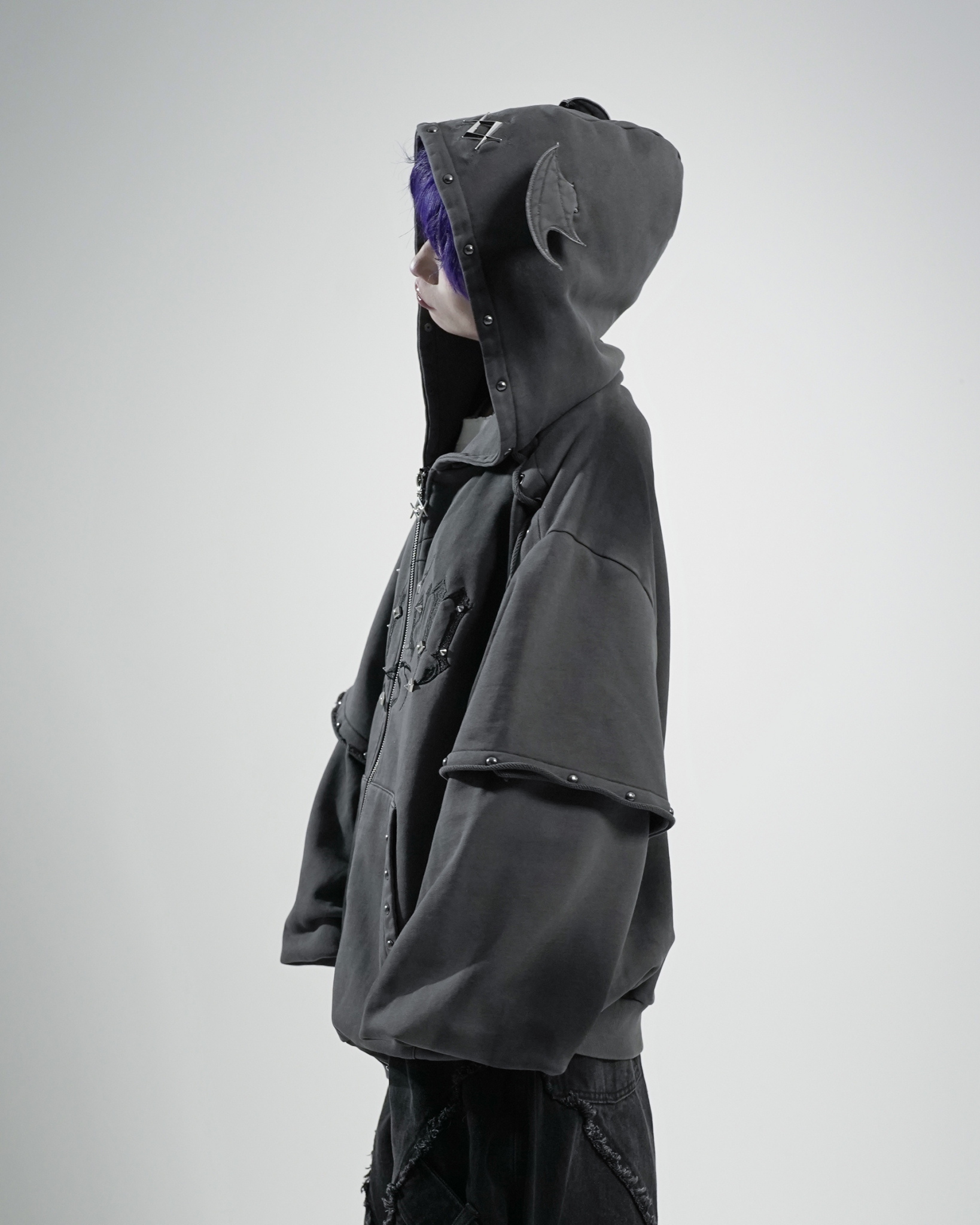 A Yami-Kawaii–inspired zip-up hoodie featuring a striking devil design.