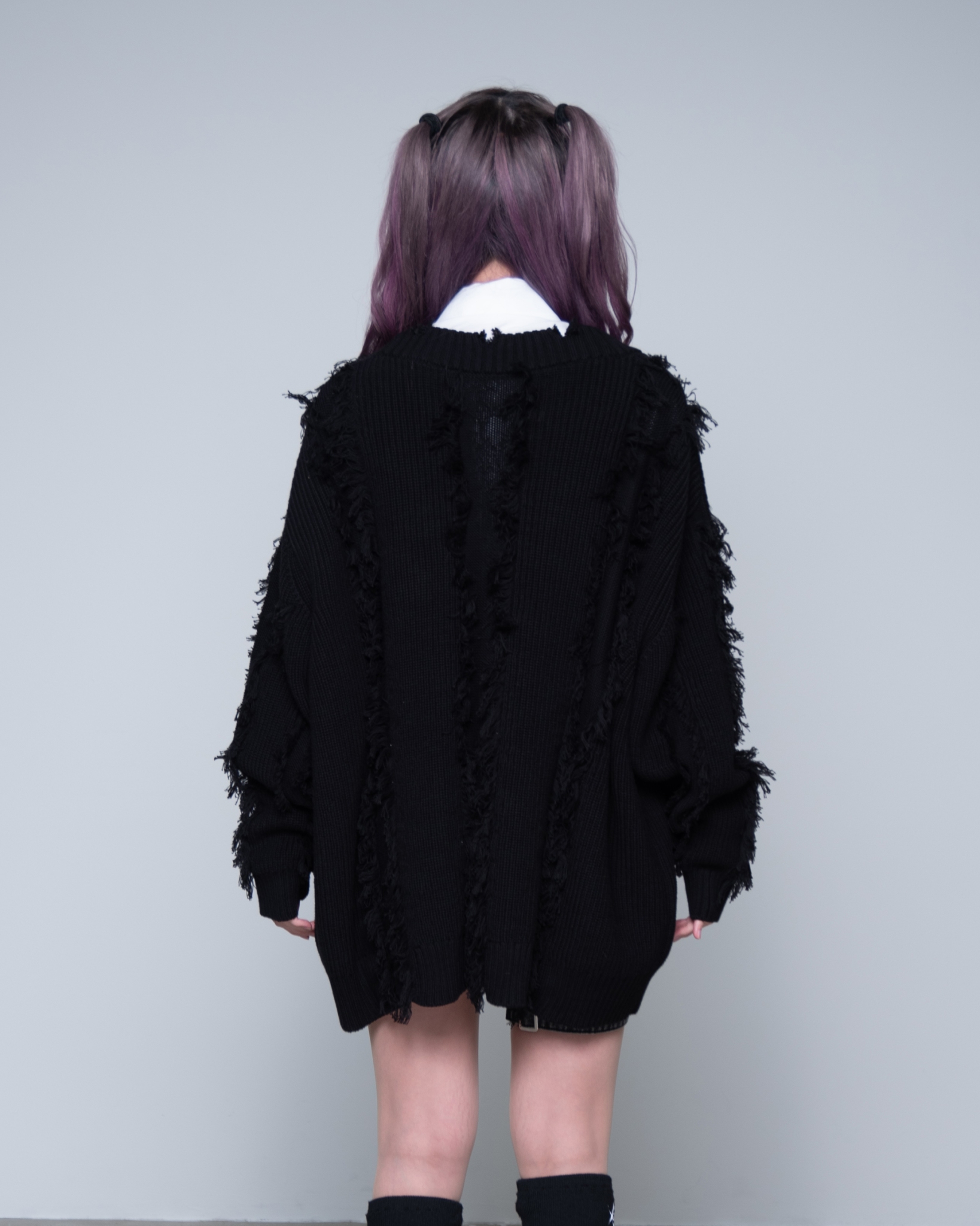 ■ Yarn-cut detailing applied throughout, finished with a fringed effect