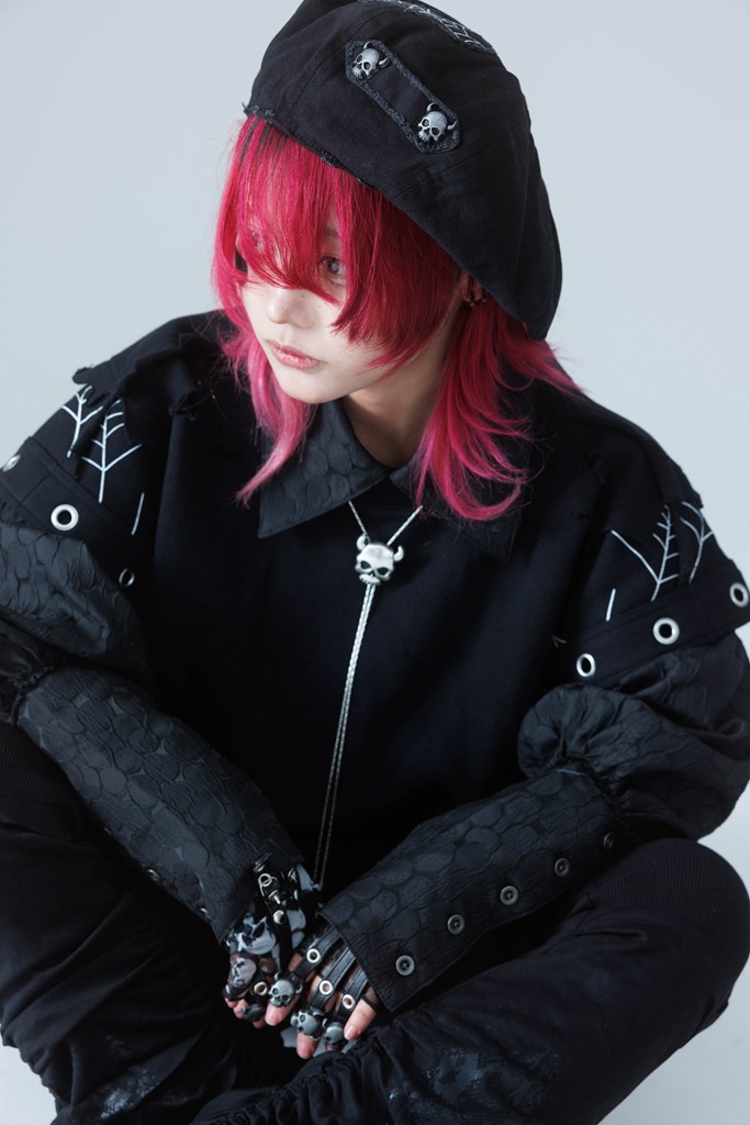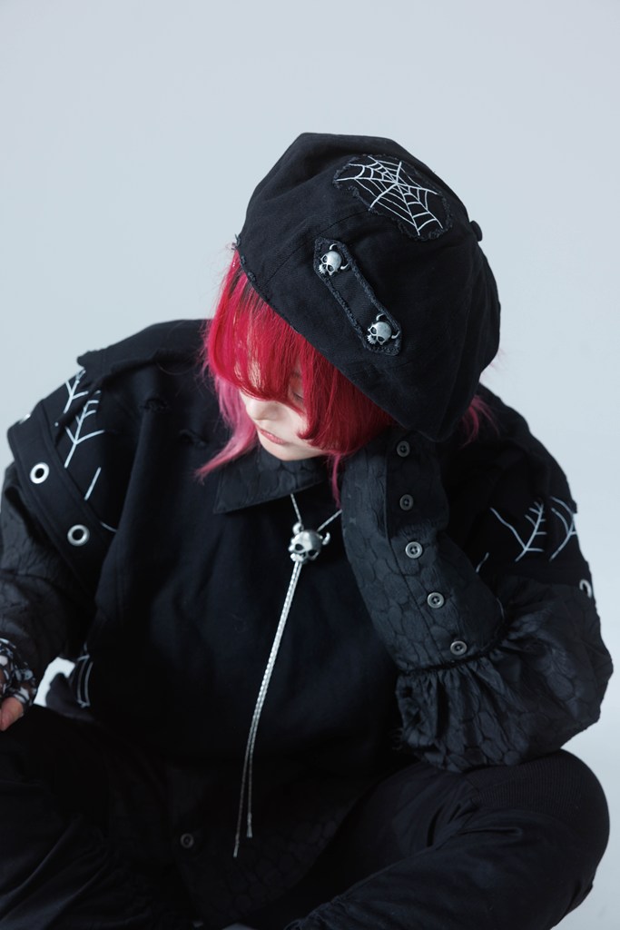 A delicate spiderweb-inspired embroidered patch expresses a dark yet beautiful worldview.