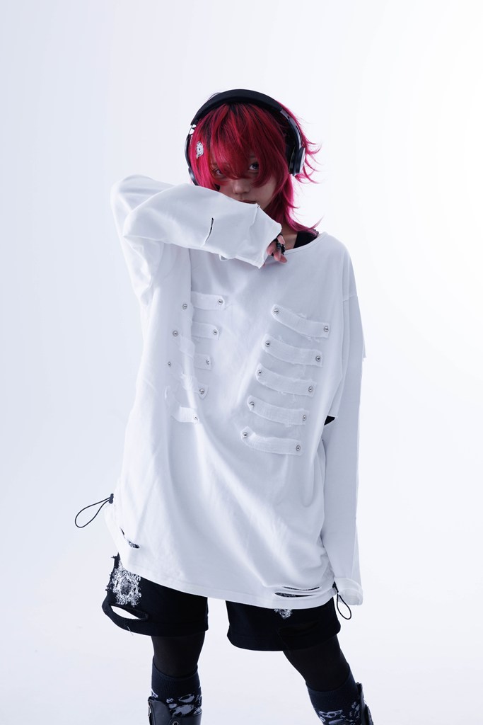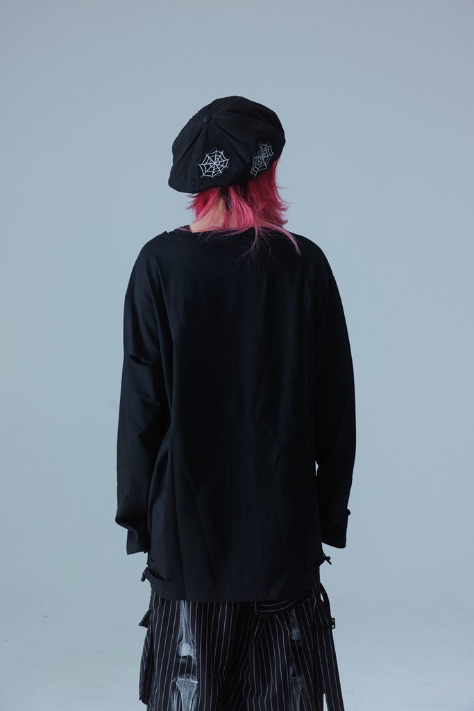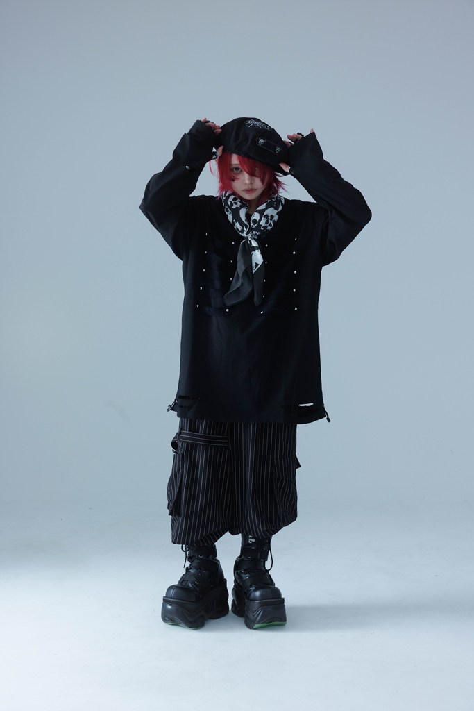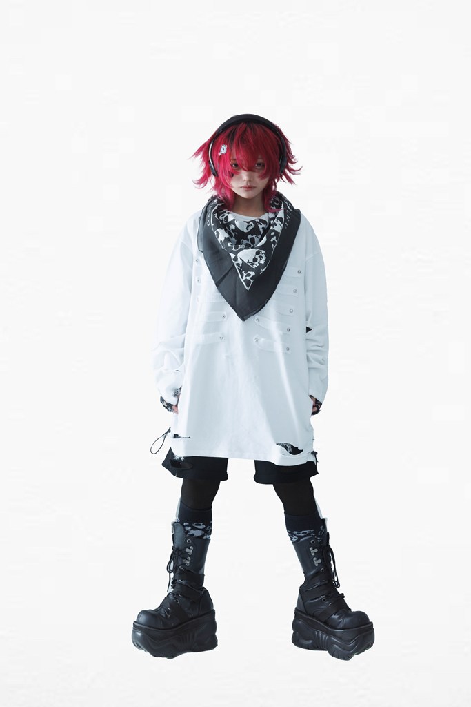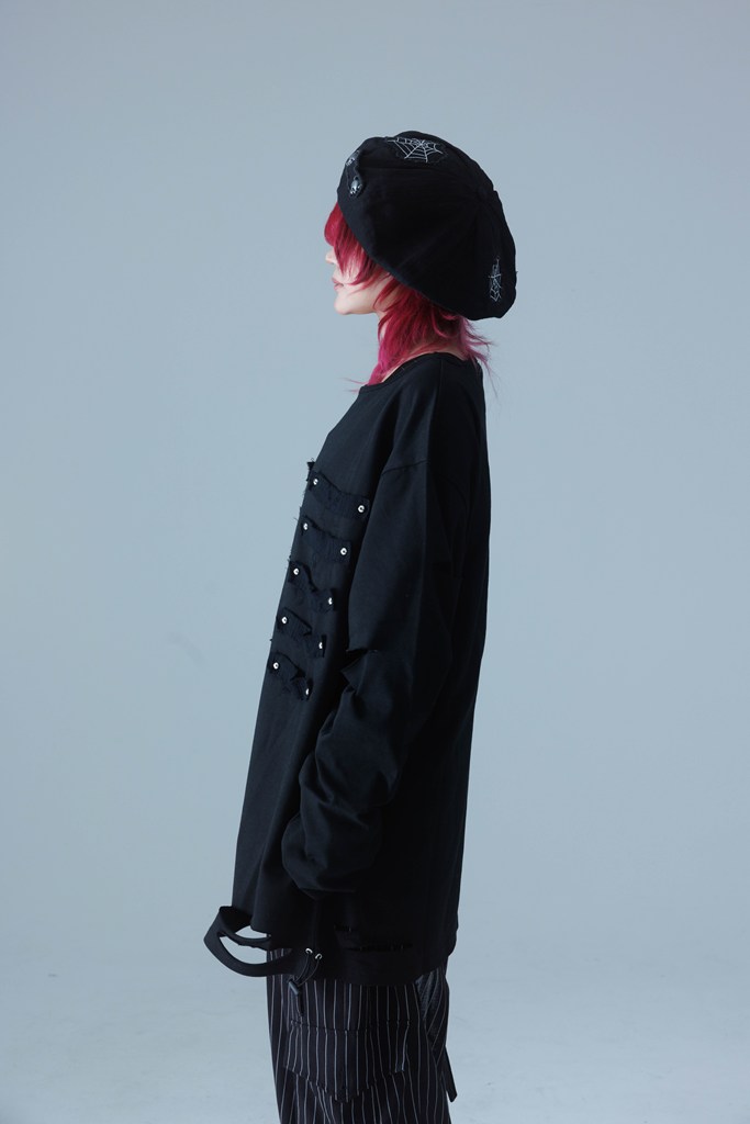 A long-sleeve T-shirt defined by a bone patch, breathing life into Gamchu’s distinctive worldview.