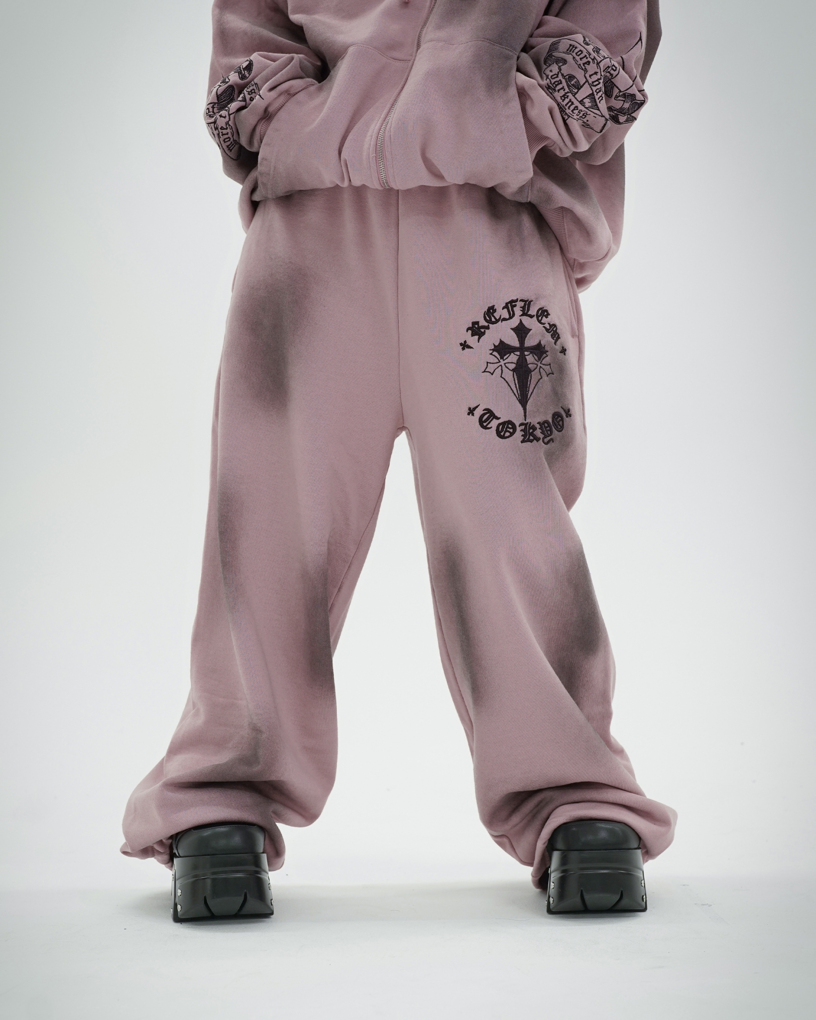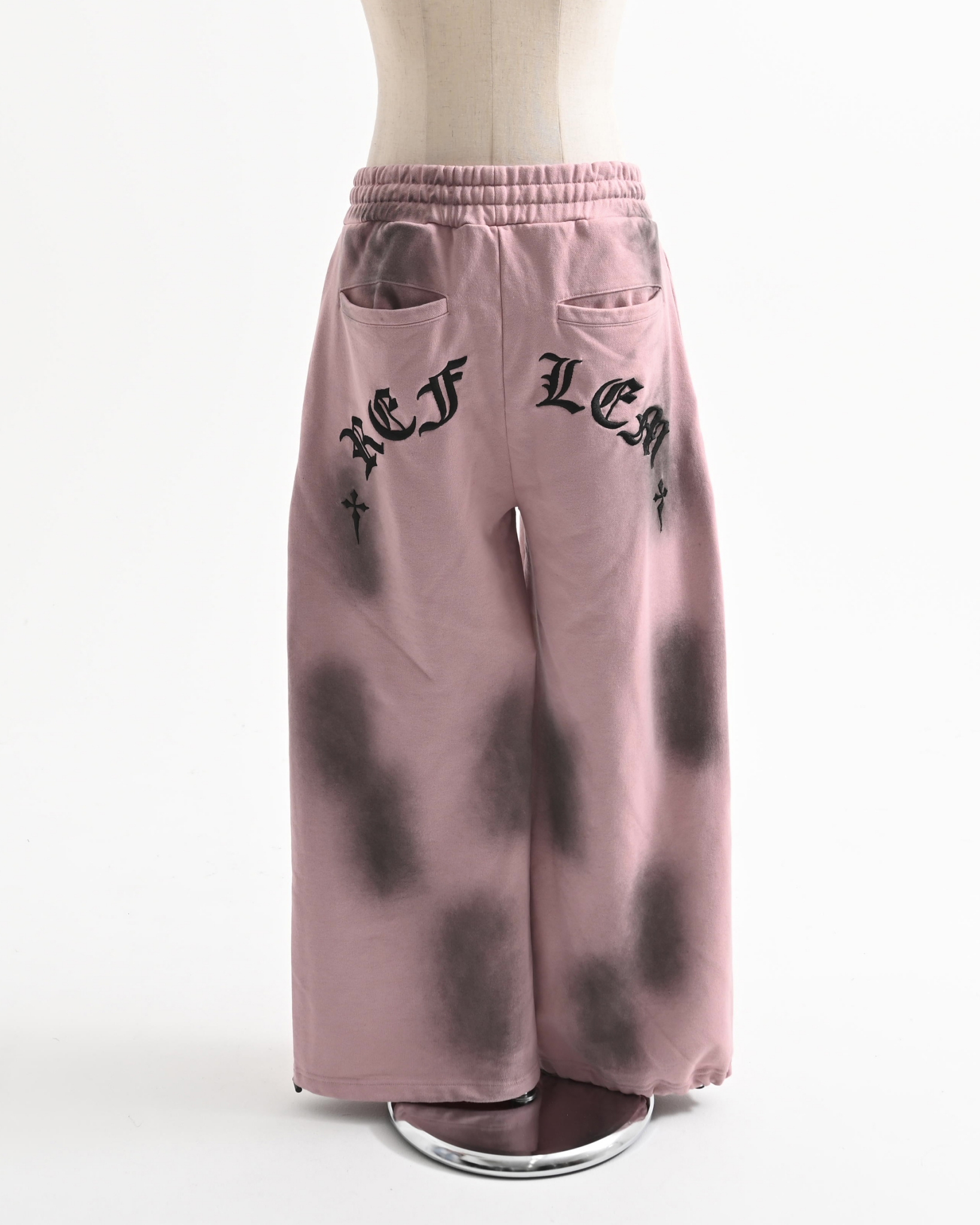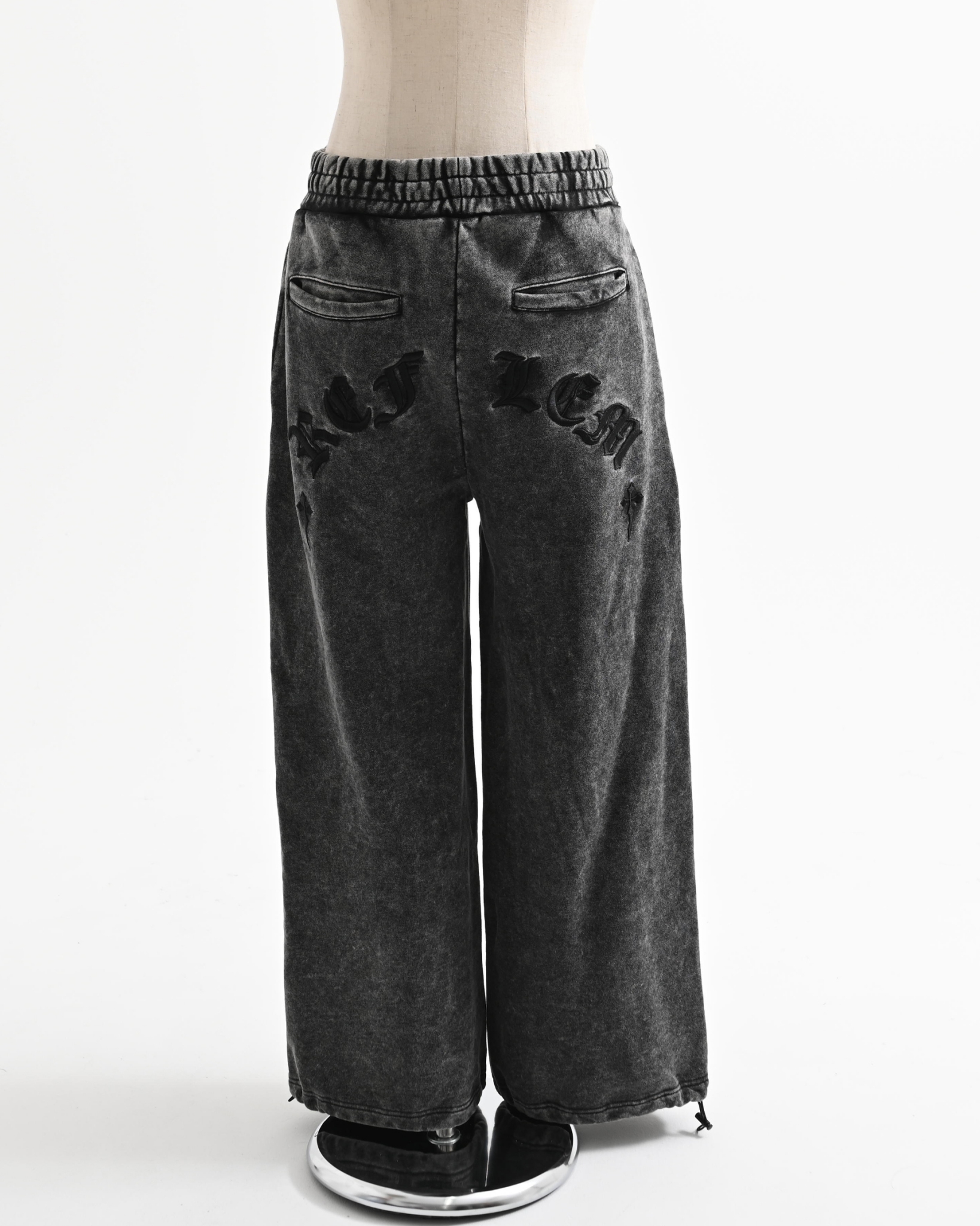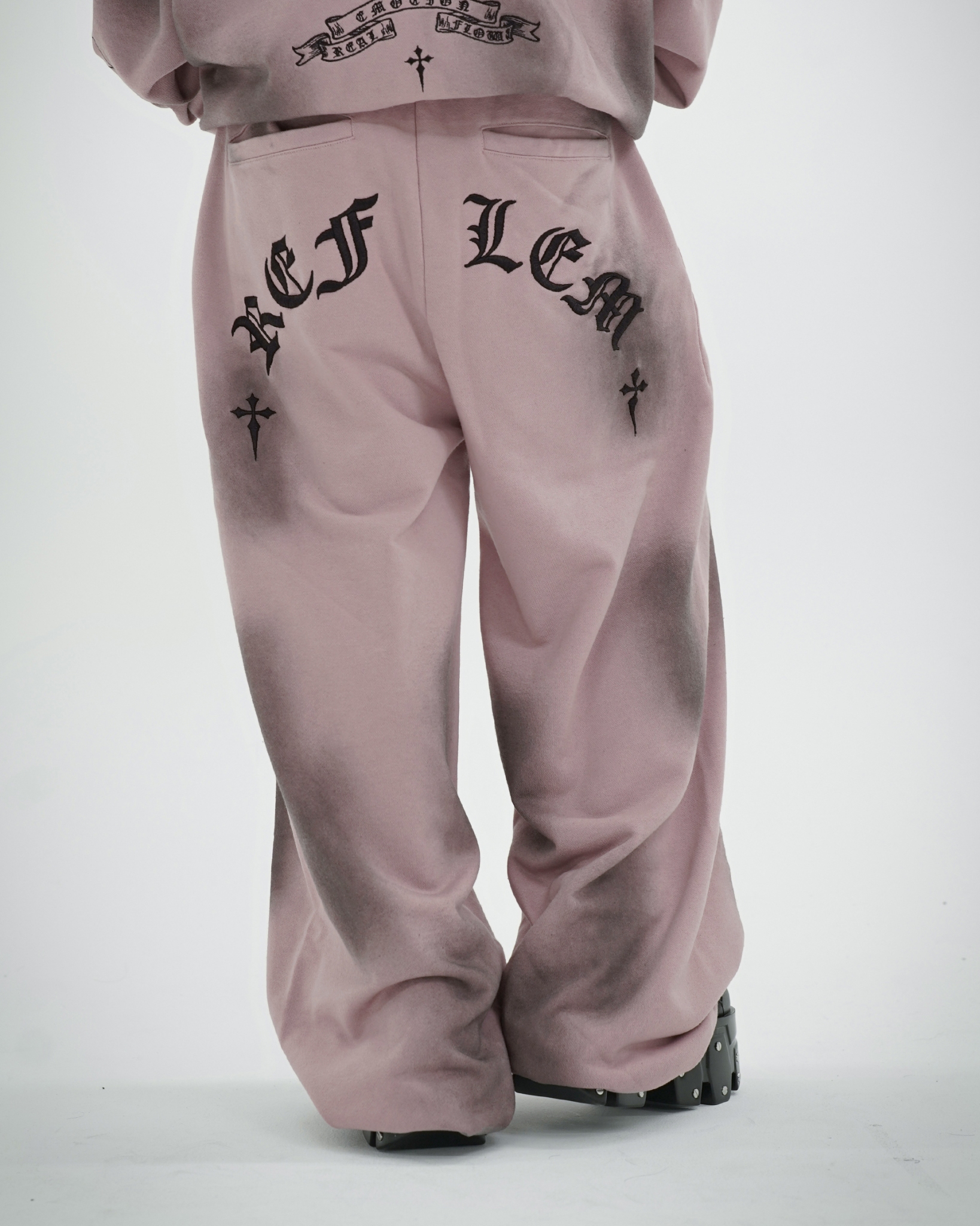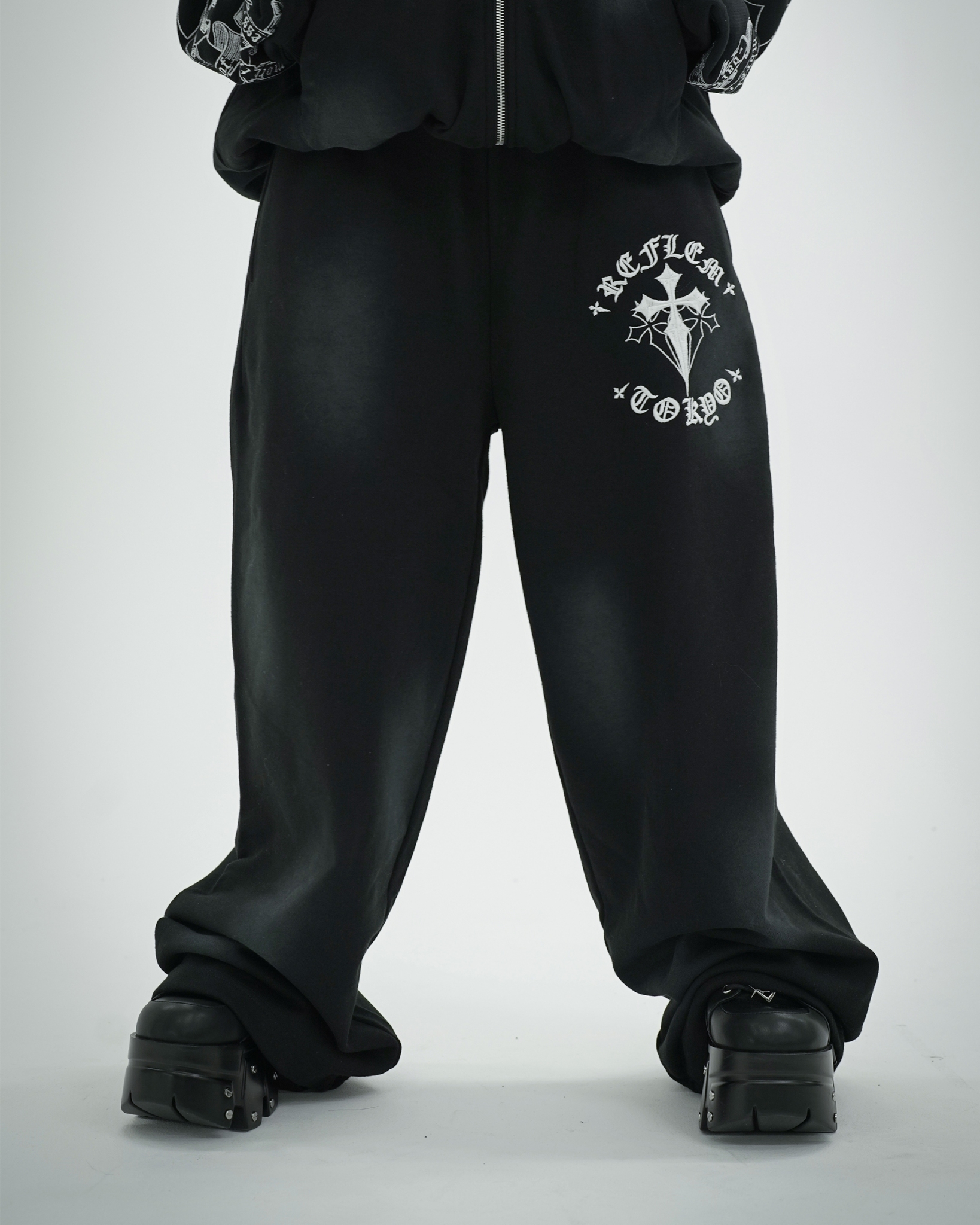Sweat wide pants featuring cross motifs and Old English logo embroidery.