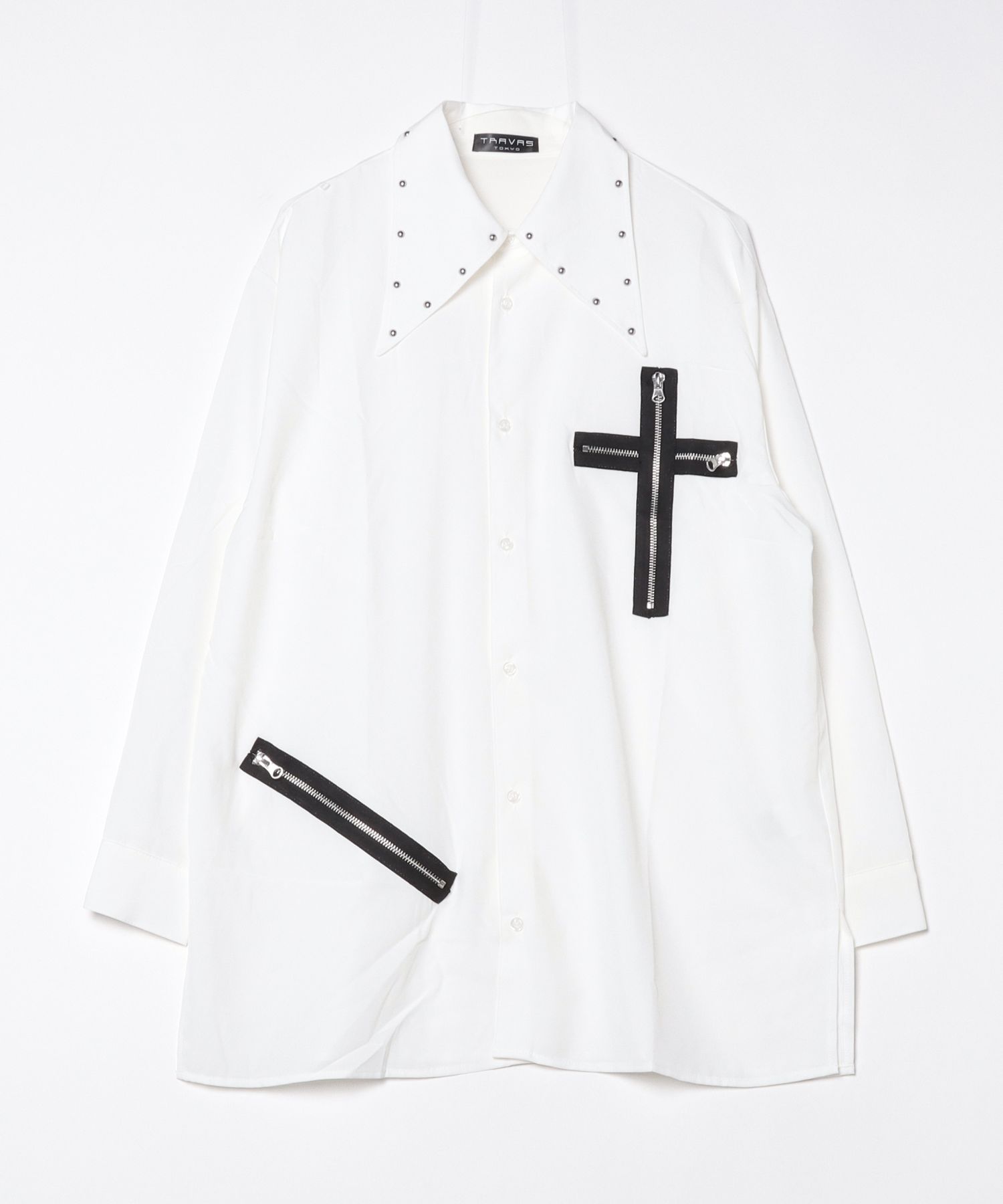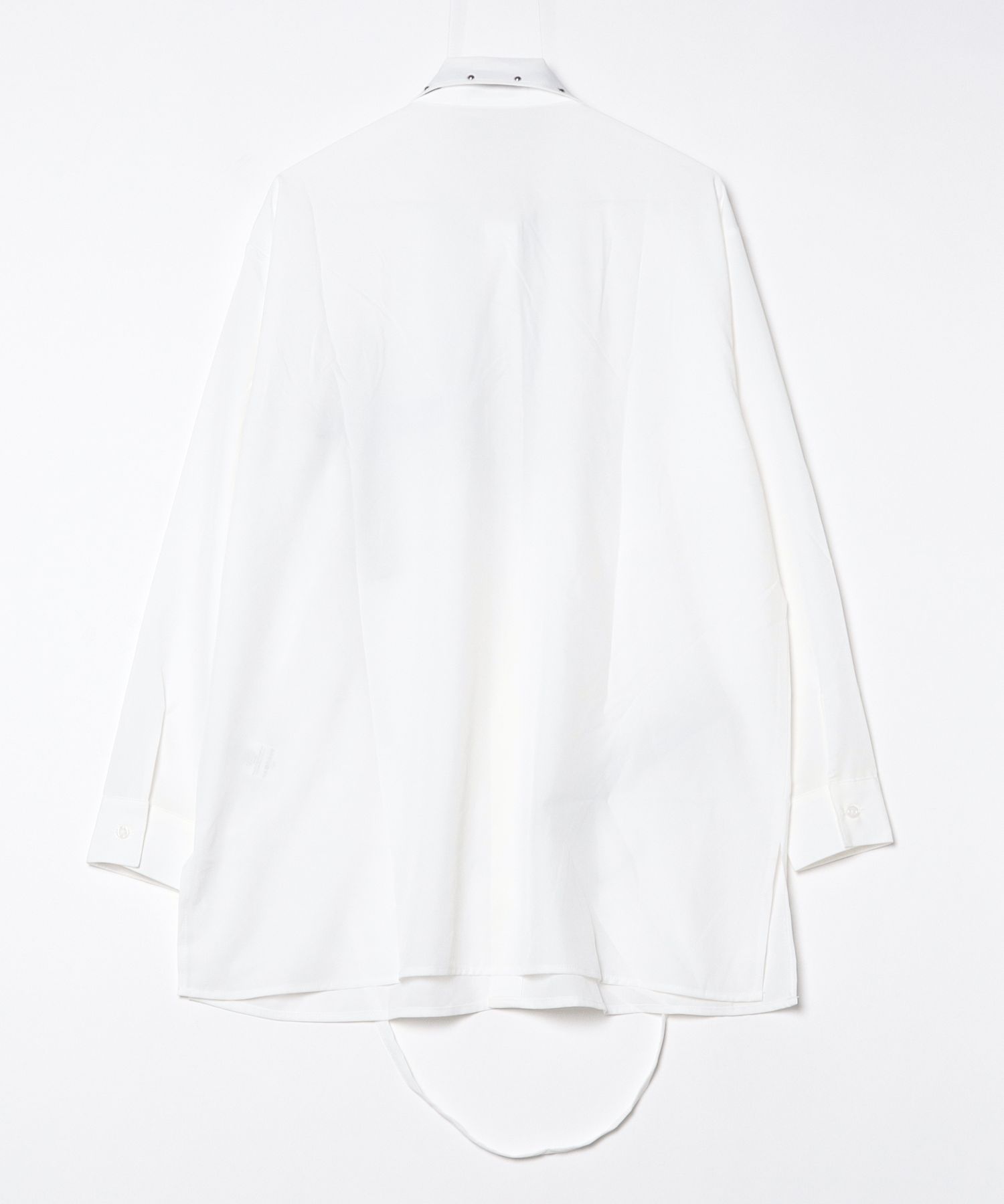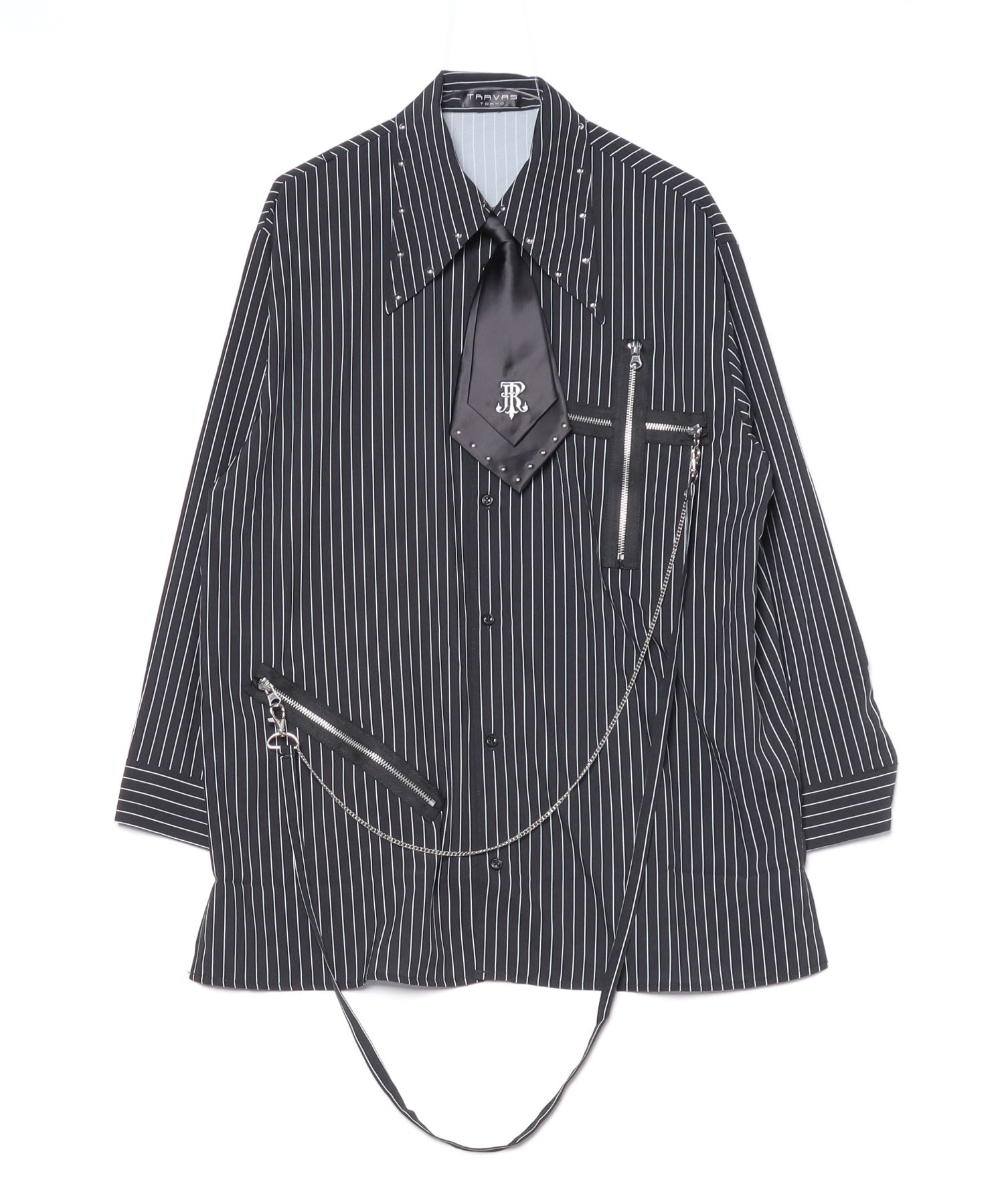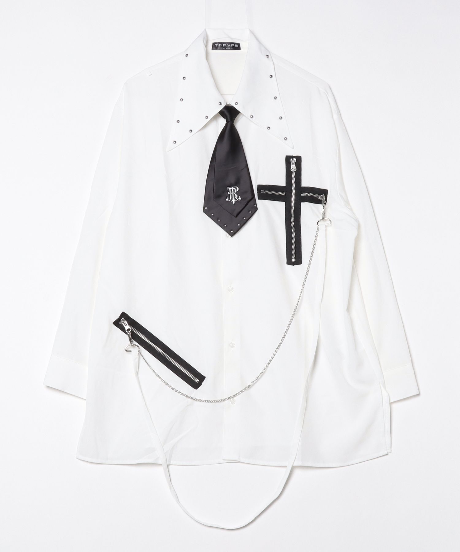 A long-sleeve shirt with a tie, featuring distinctive punk-inspired details.