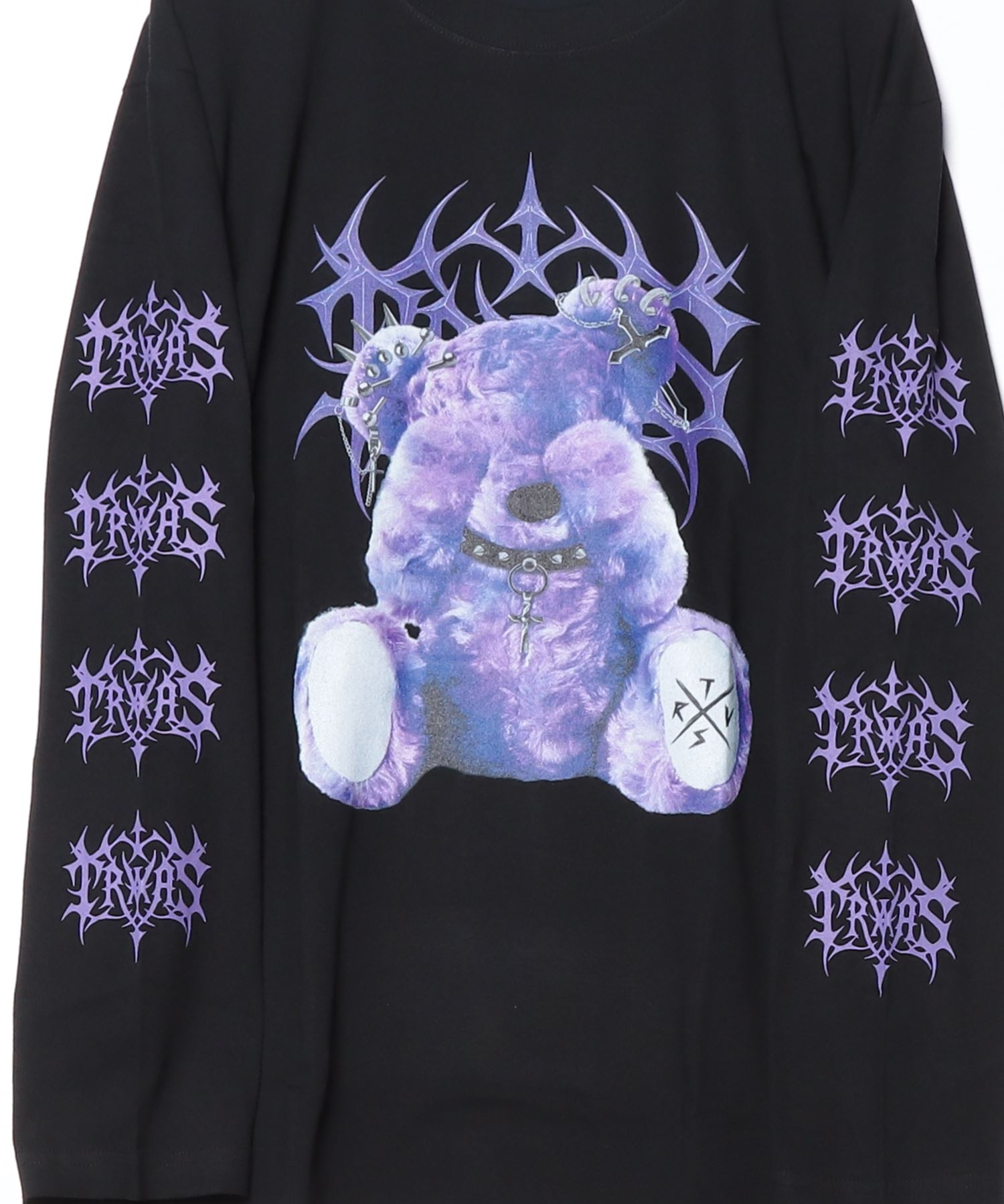 A long-sleeve cut-and-sew top featuring an eye-catching bear print with a unique twist.