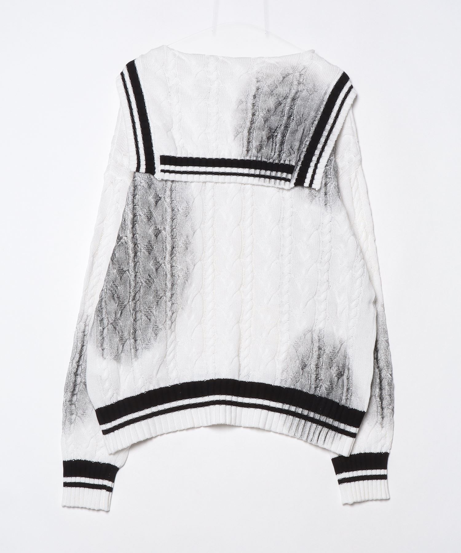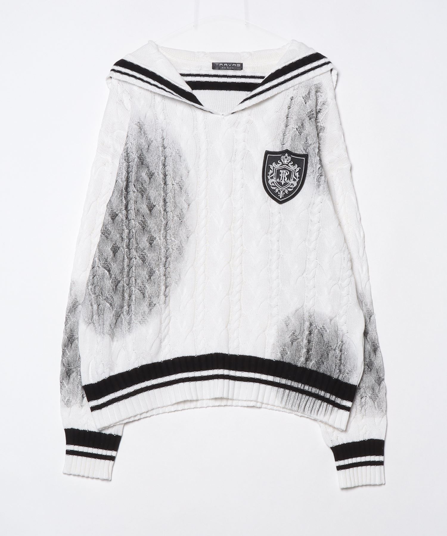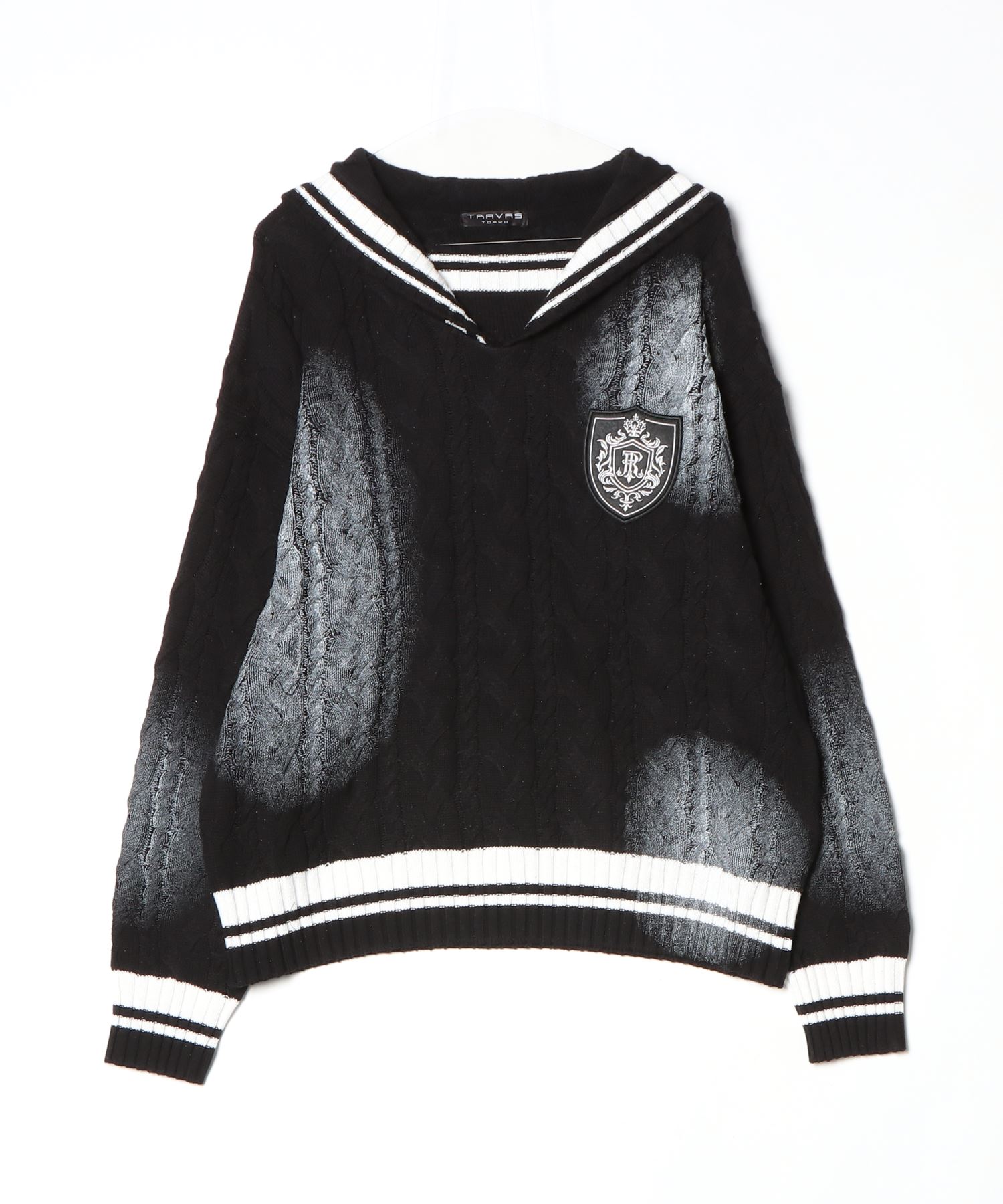 A sailor-collar knit with TRAVAS original patches and pigment processing.