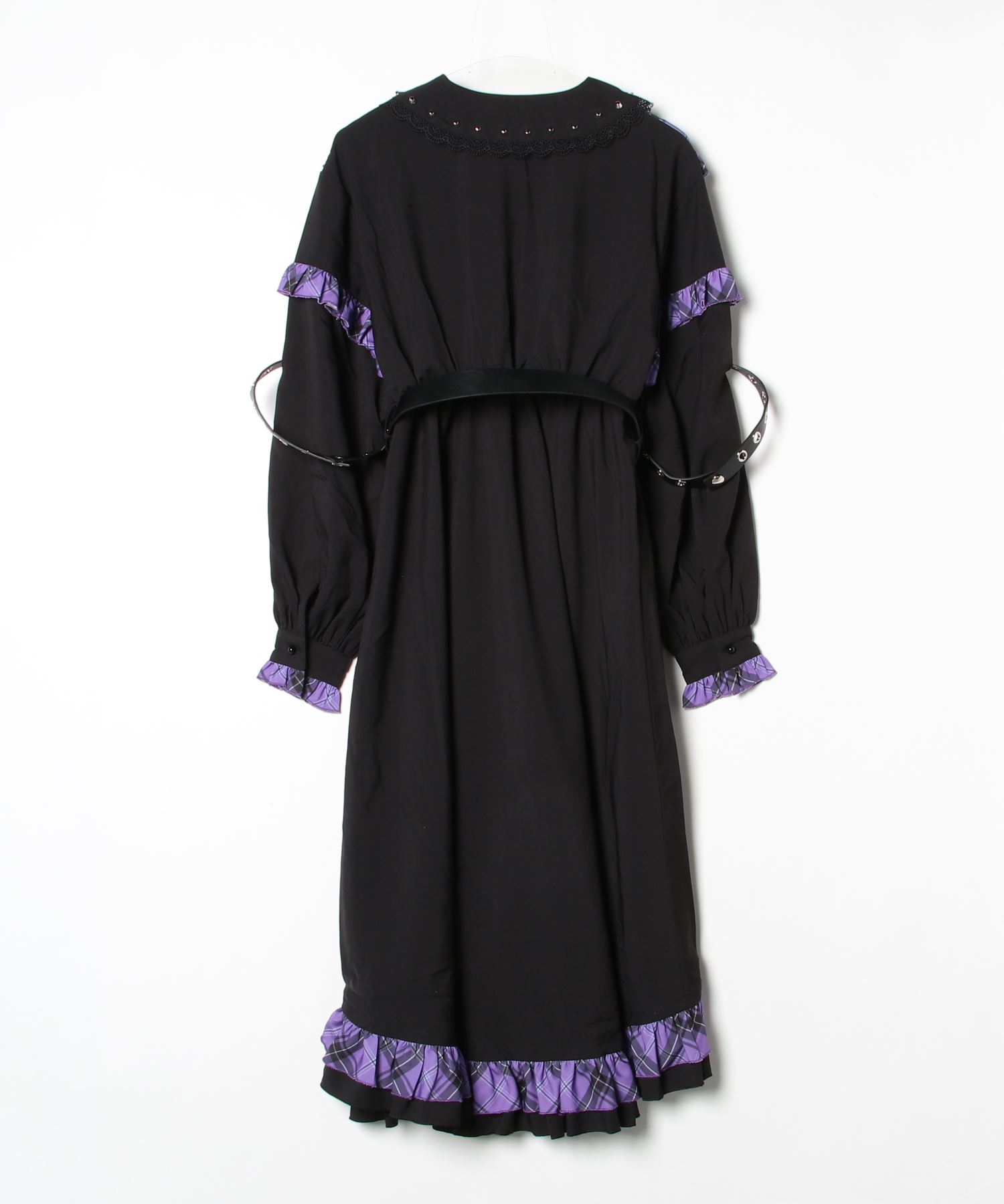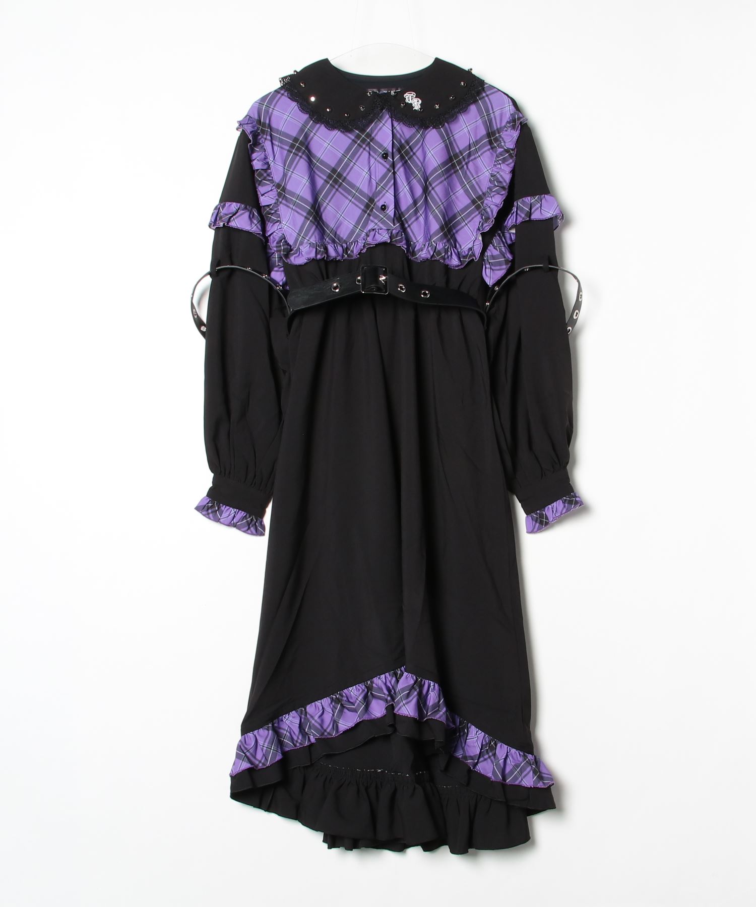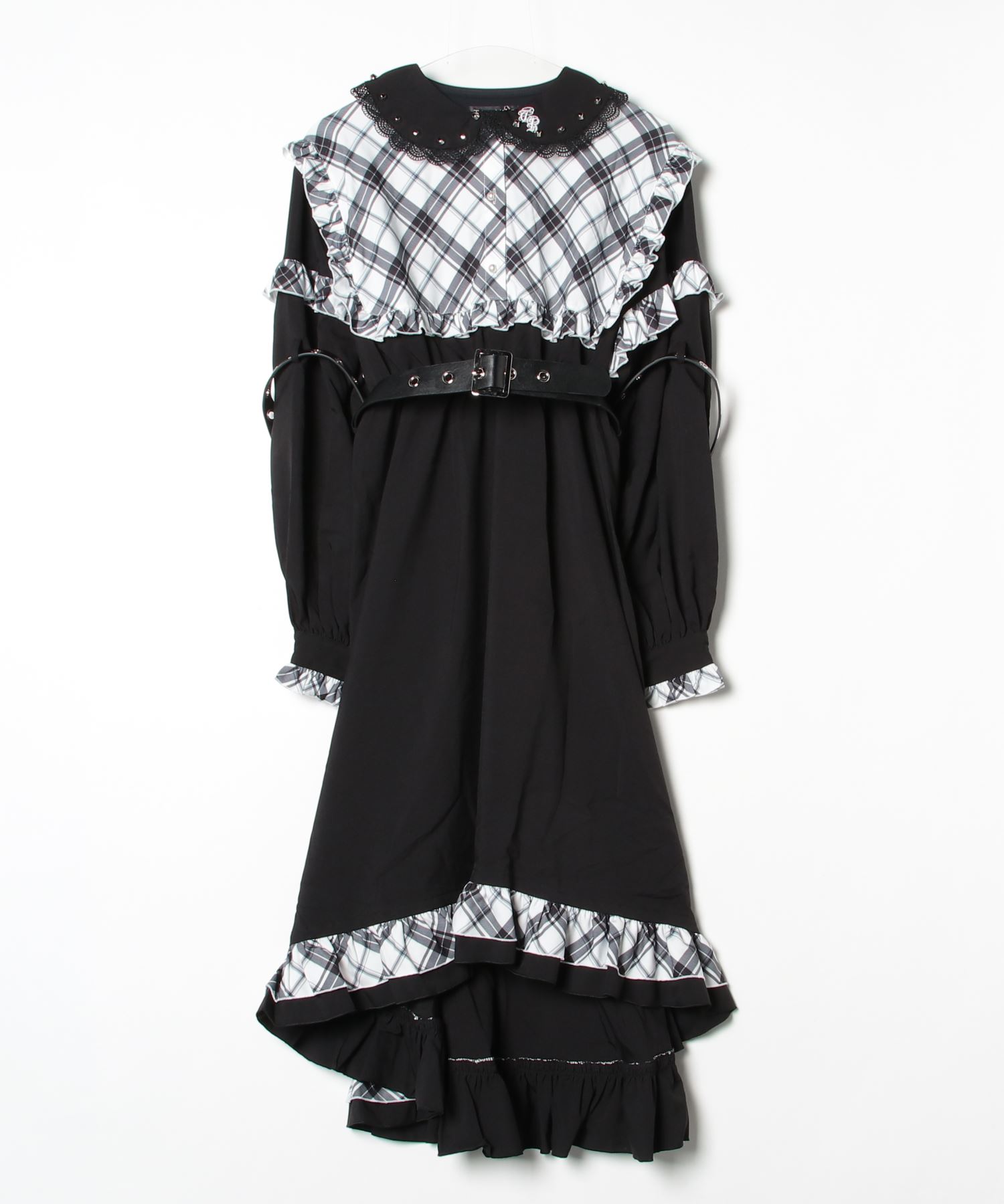 A design dress that combines check patterns and lace materials with a gothic-inspired style.