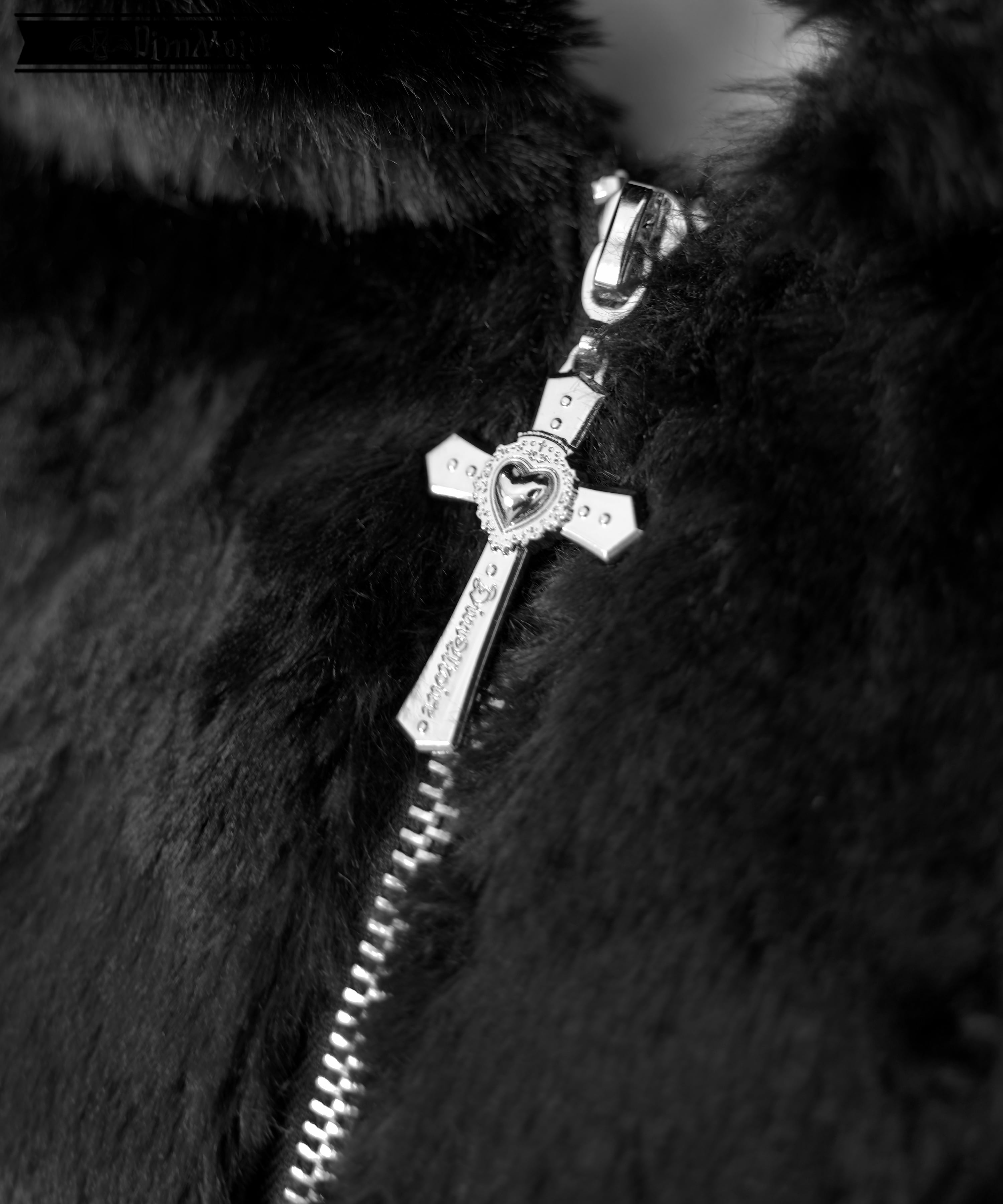 Equipped with a DimMoire original cross zipper charm.