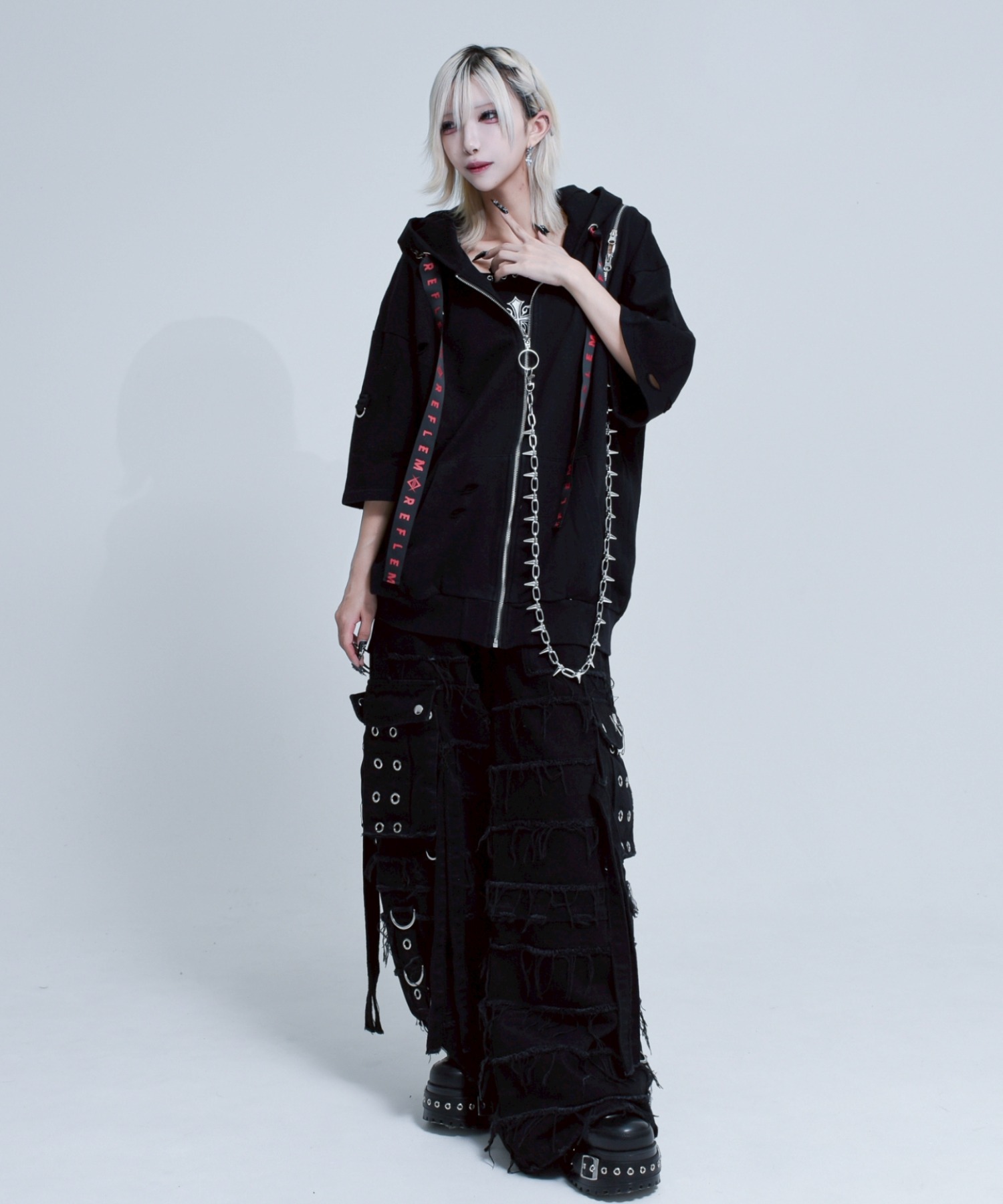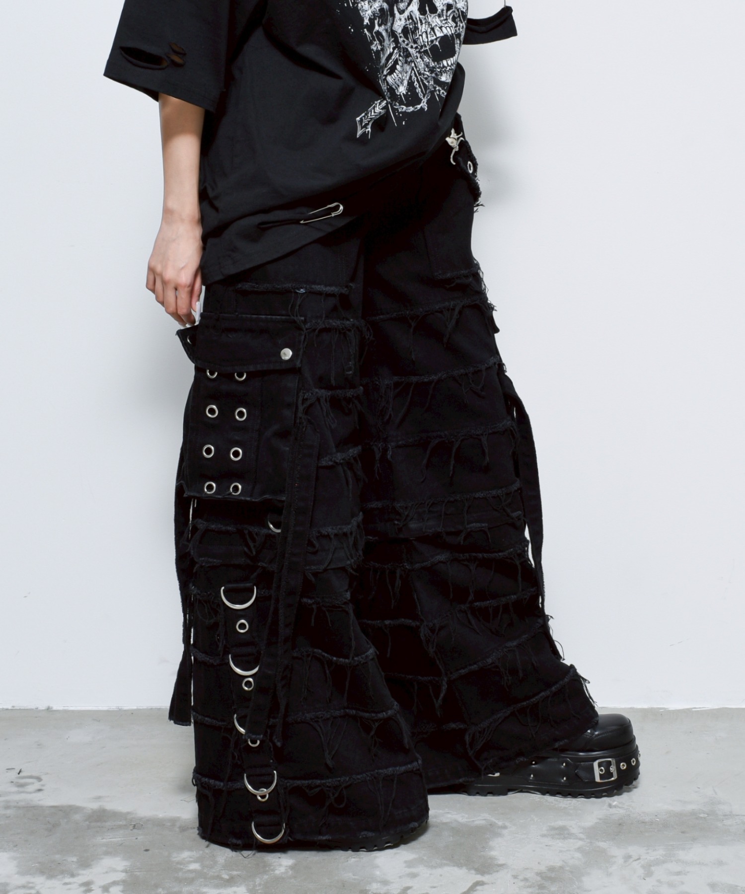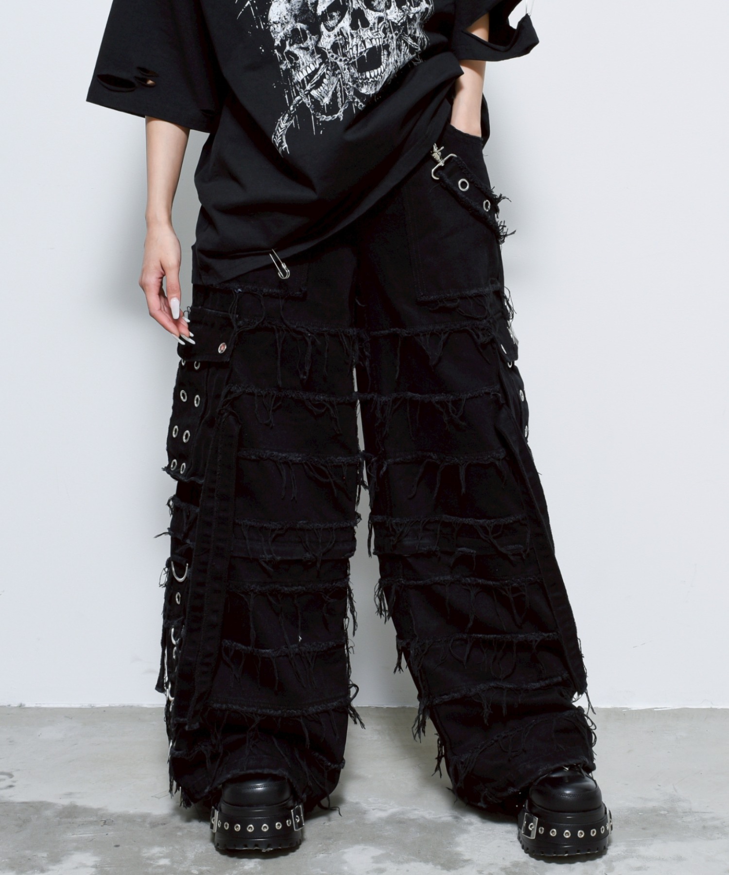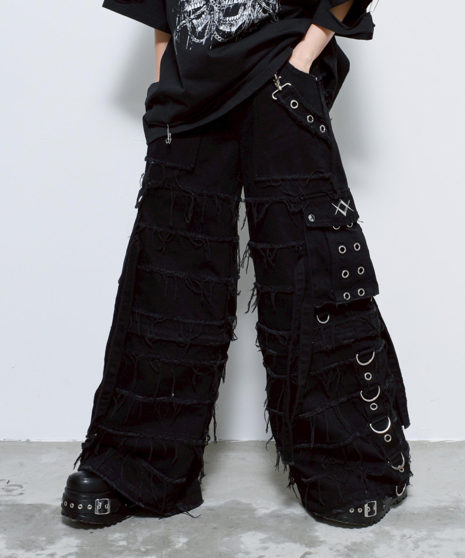 Docking-style wide denim pants featuring a cut-off length switch design.