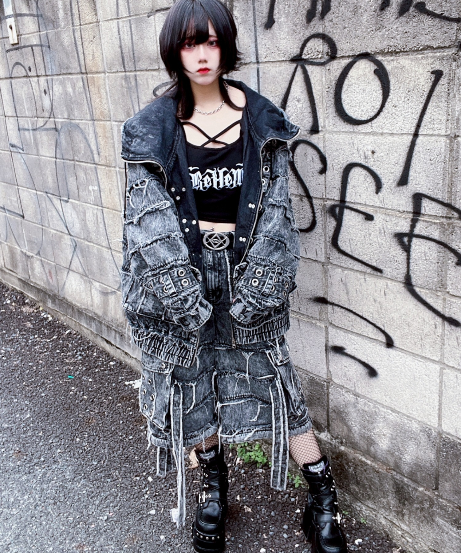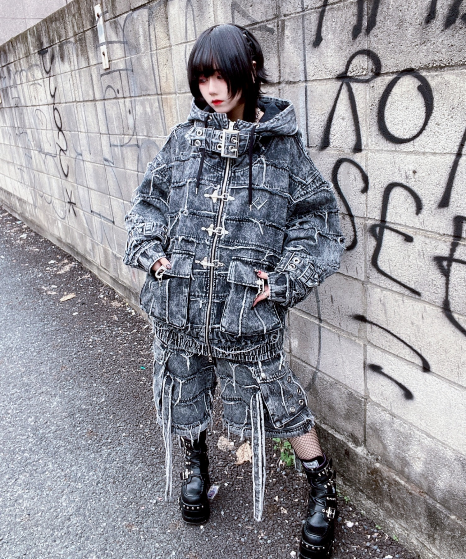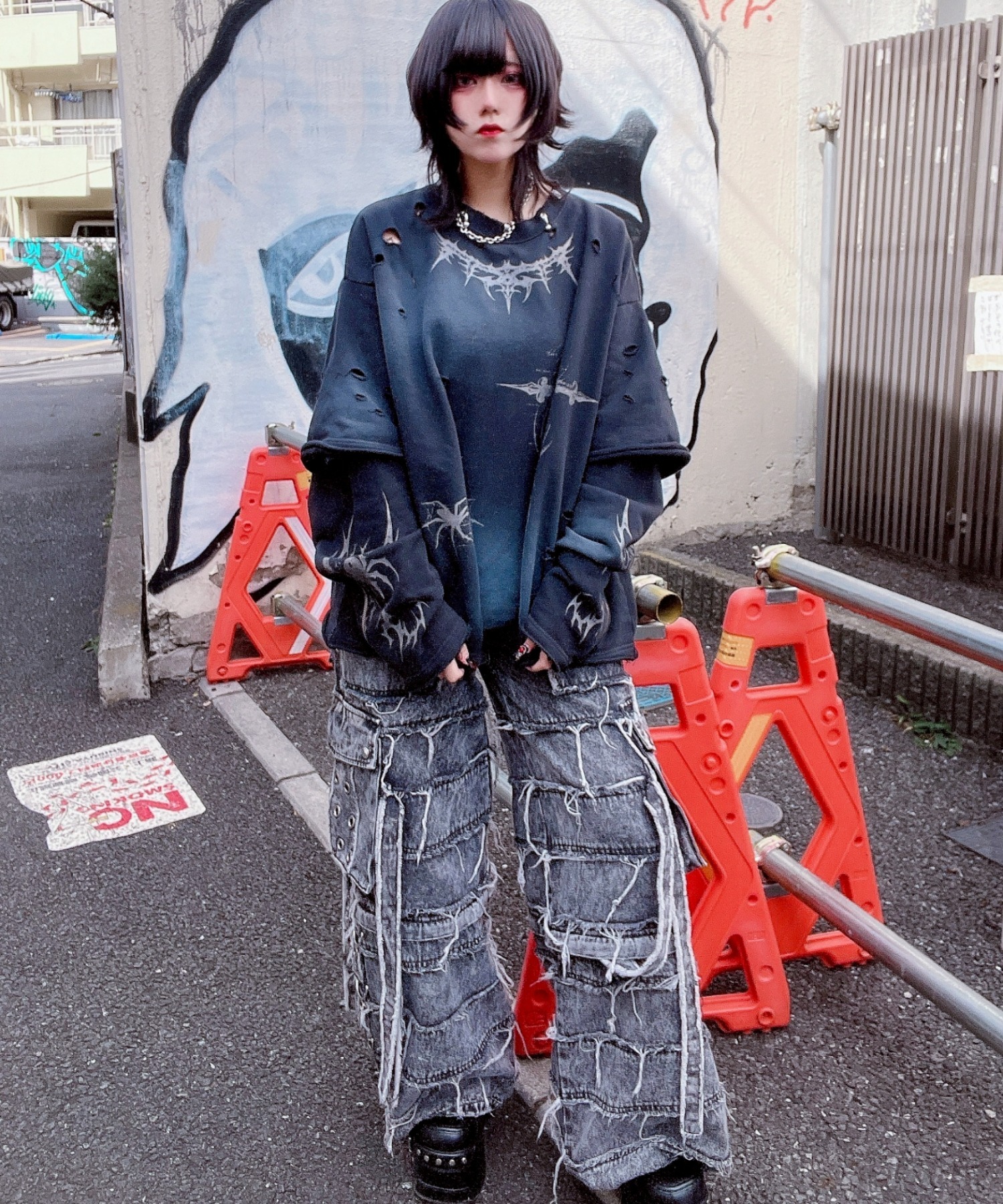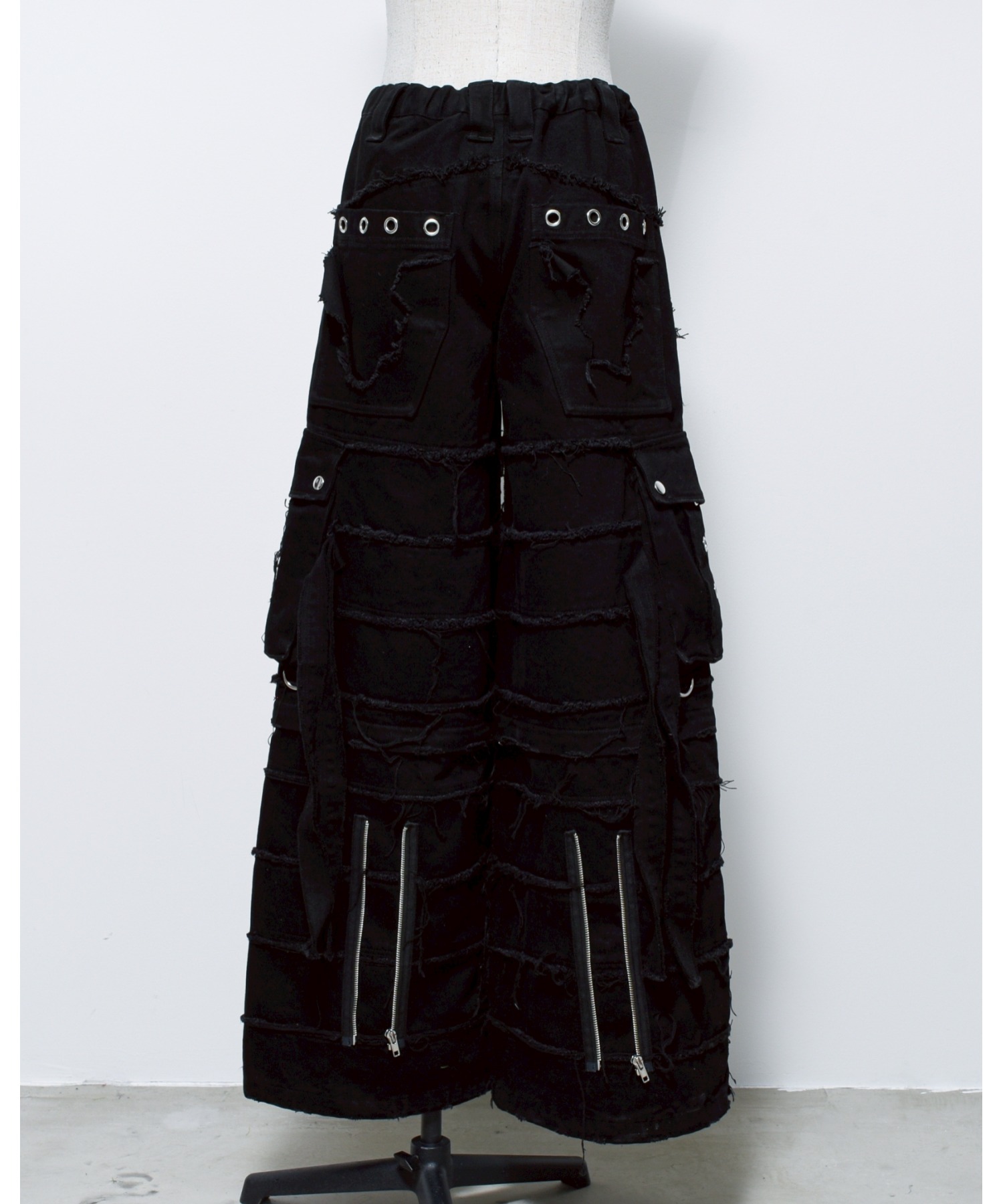 Docking-style wide denim pants featuring a cut-off length switch design.