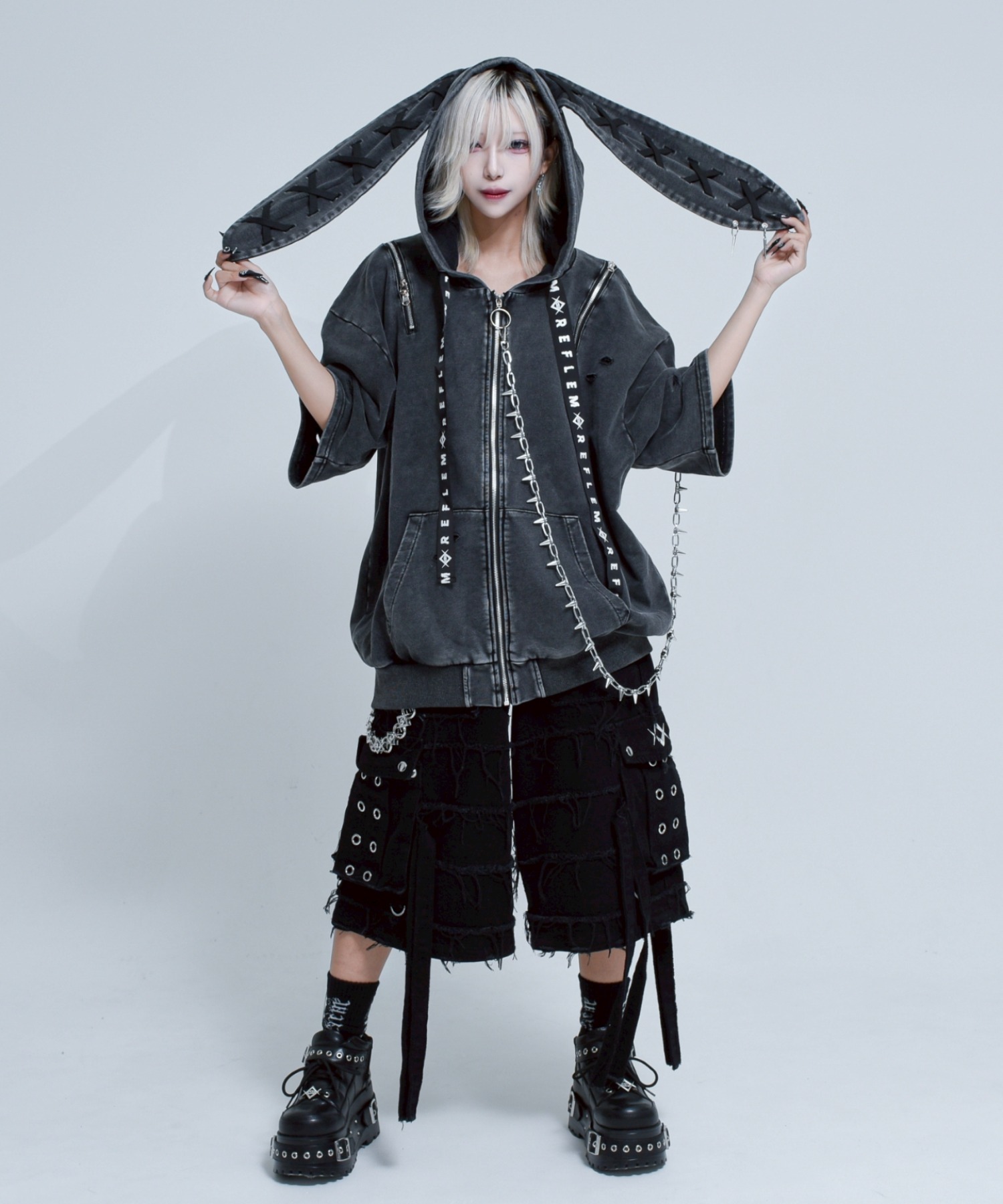 The trendy silhouette is enhanced by distinctive detailing, creating a striking look.
