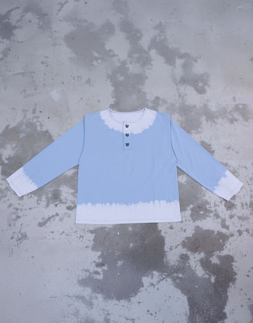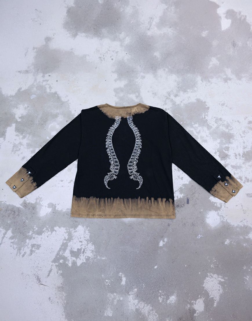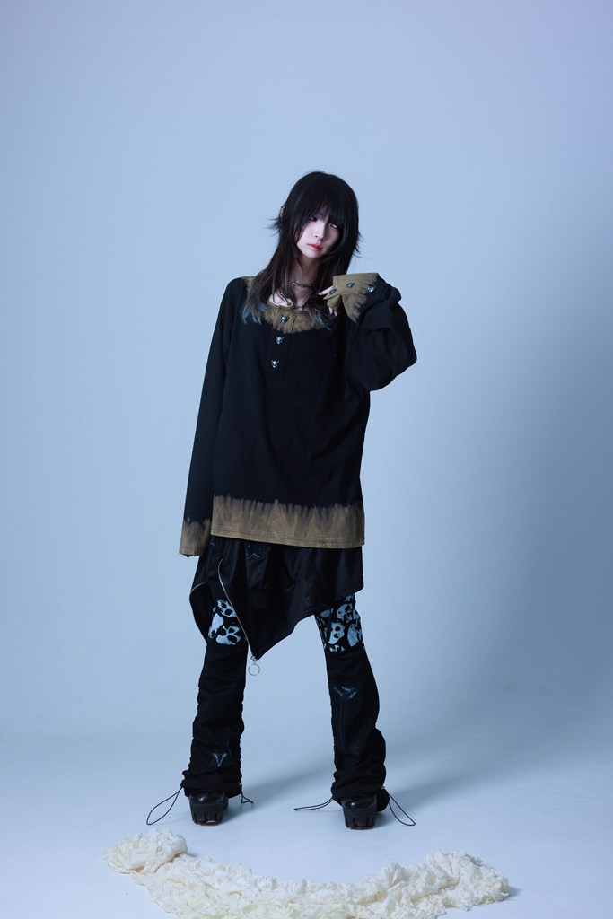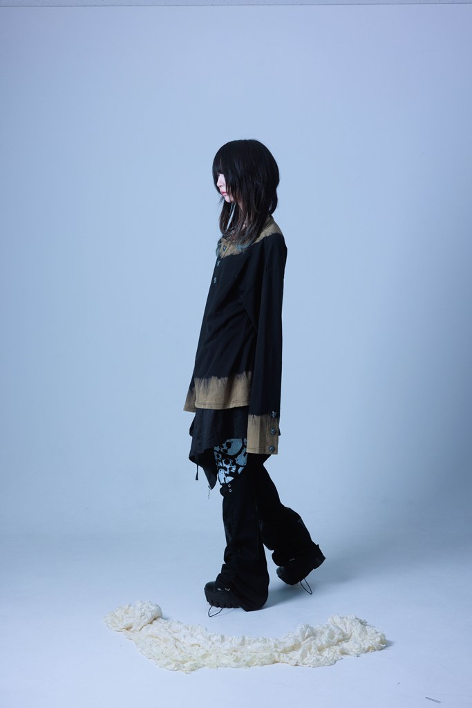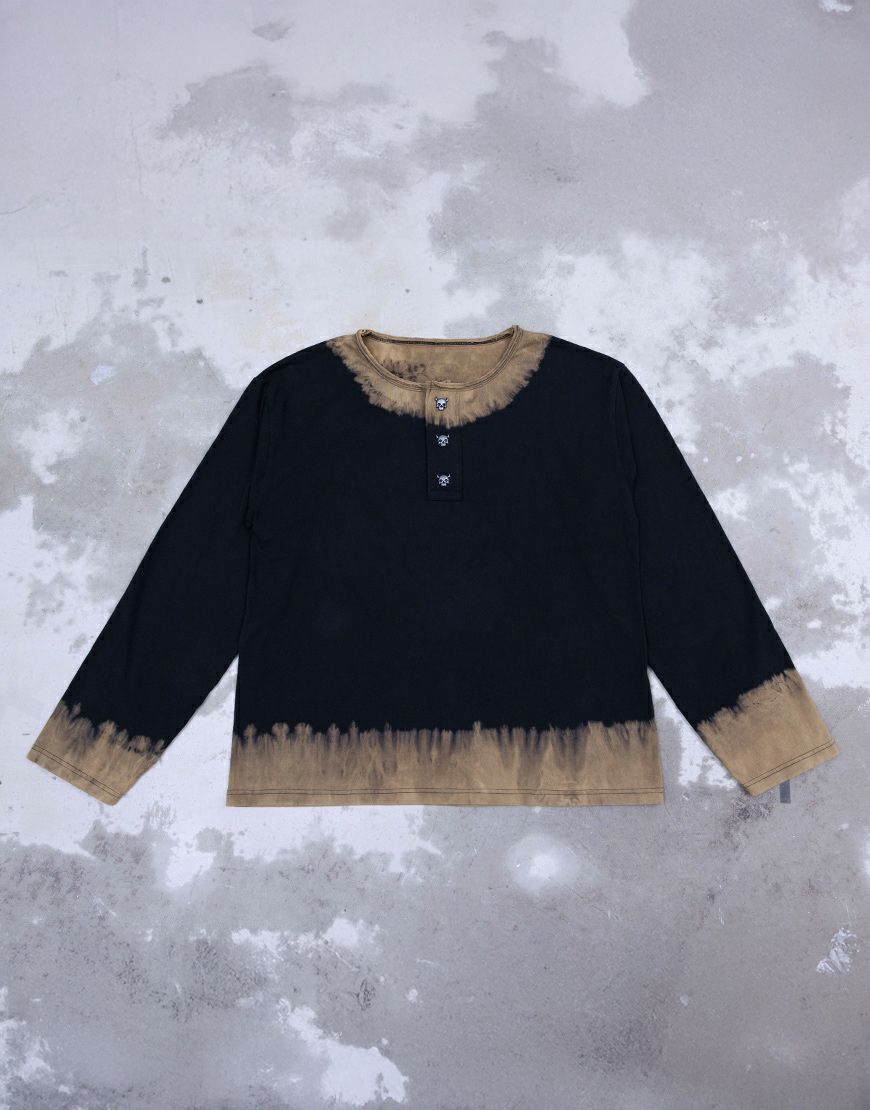 From Gamchu, the Henley-neck long sleeve “Bonliri” makes its debut—an art piece defined by a decadent mood born from the natural bleed of bleach.