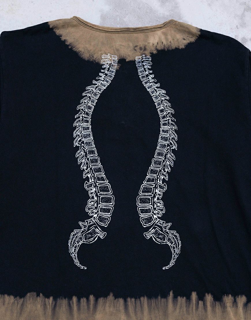 A bold spine motif print extends across the back—graphically depicting the structure of life itself.