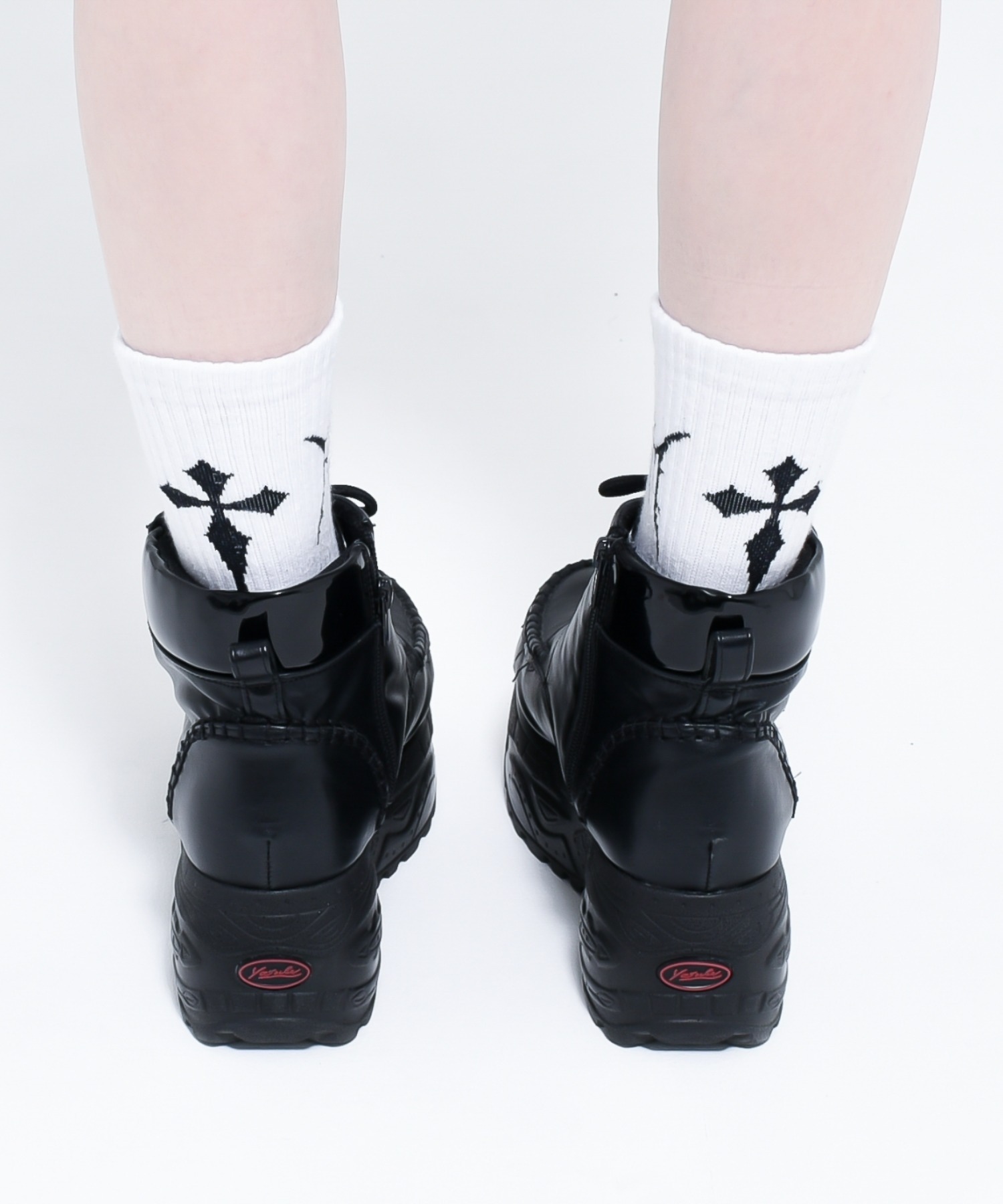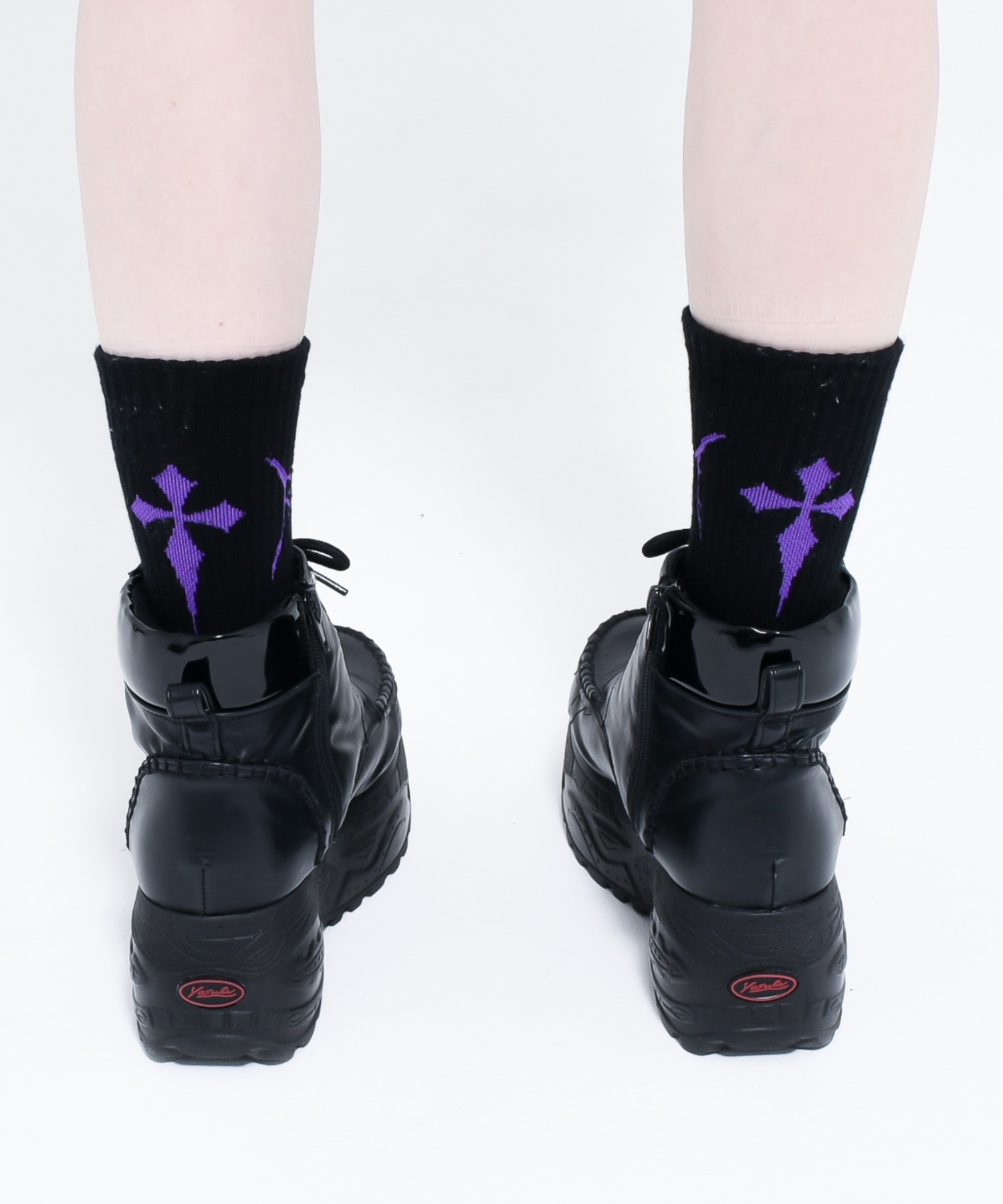 REFLEM original socks featuring a striking front logo and cross motif on the back.