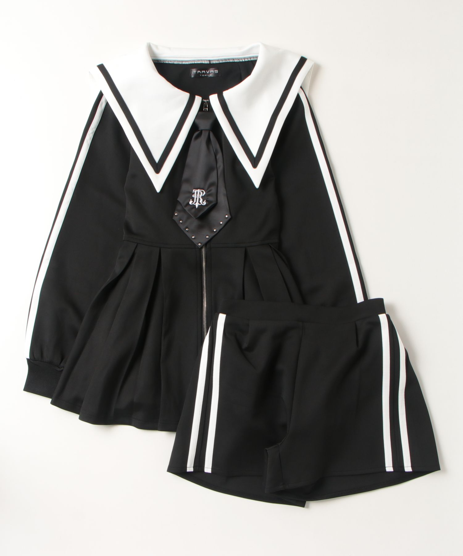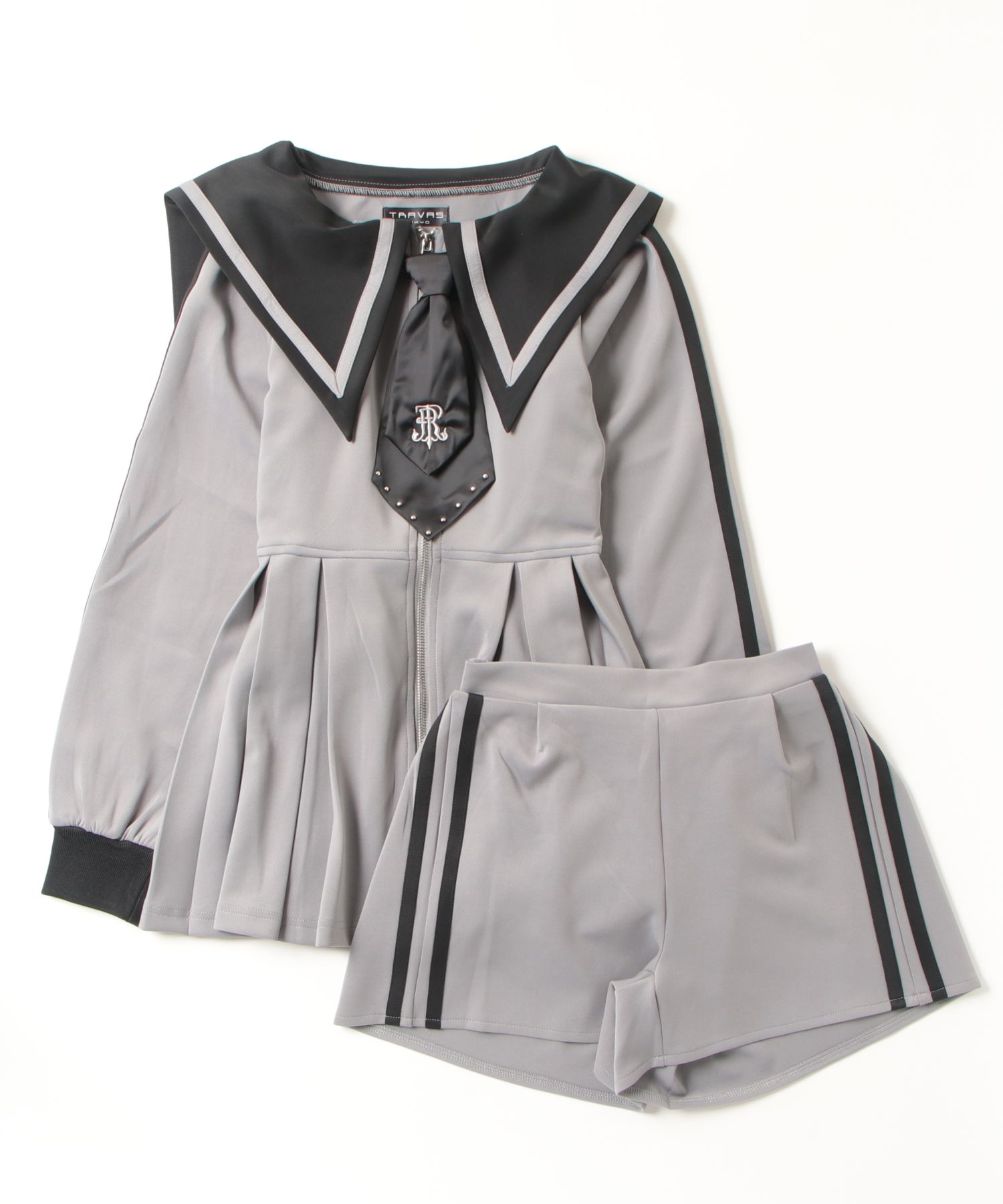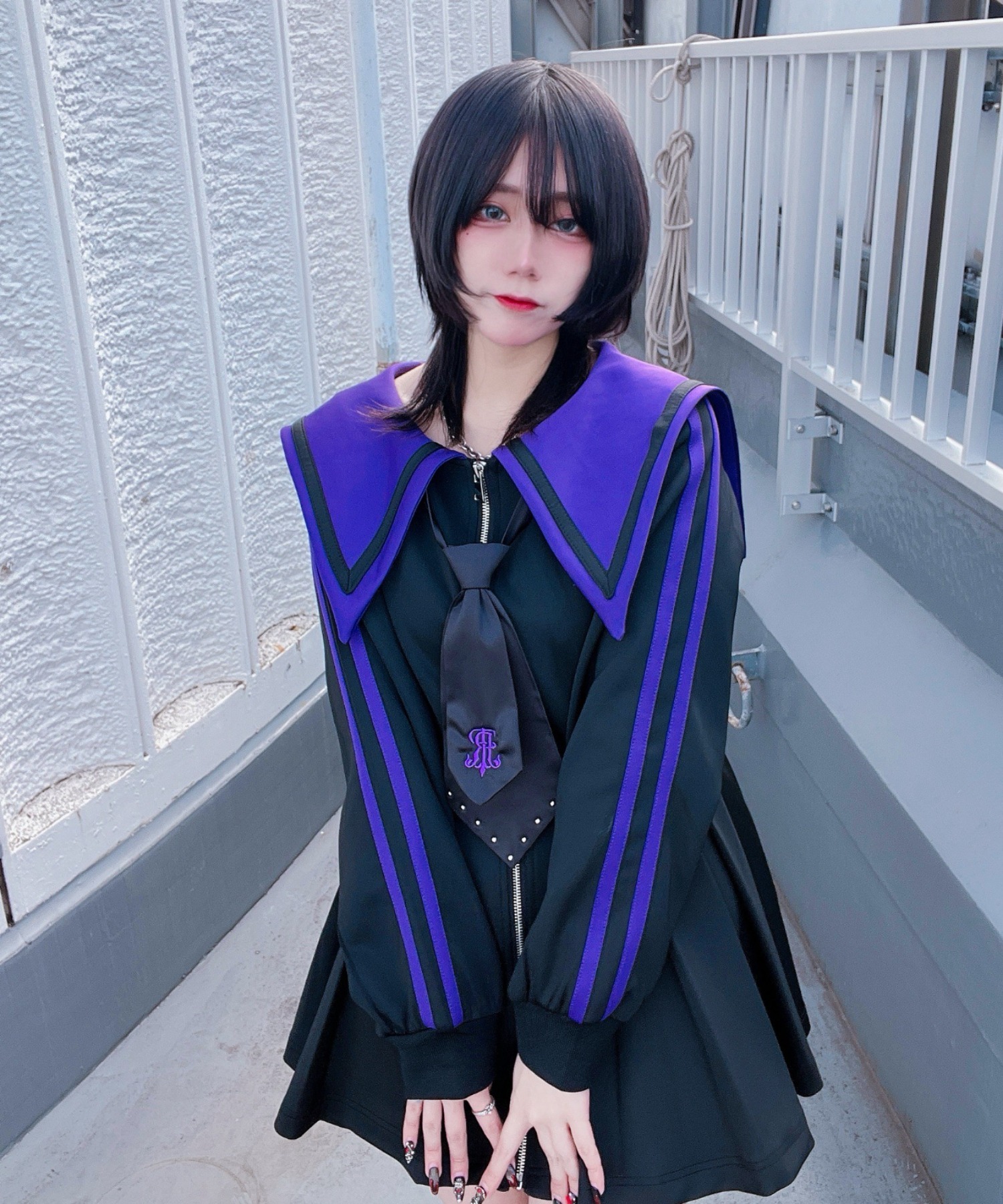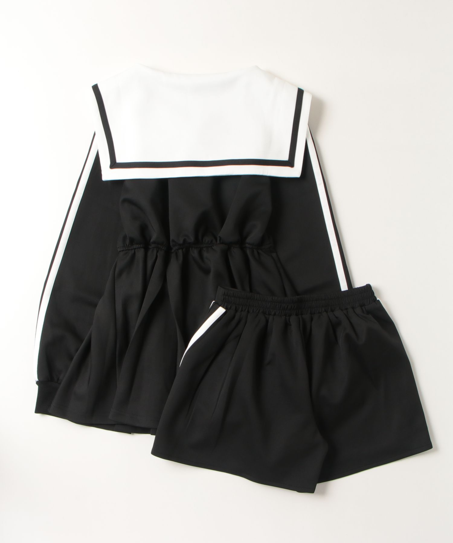 The sharply pointed, oversized sailor collar gives this piece a striking look.