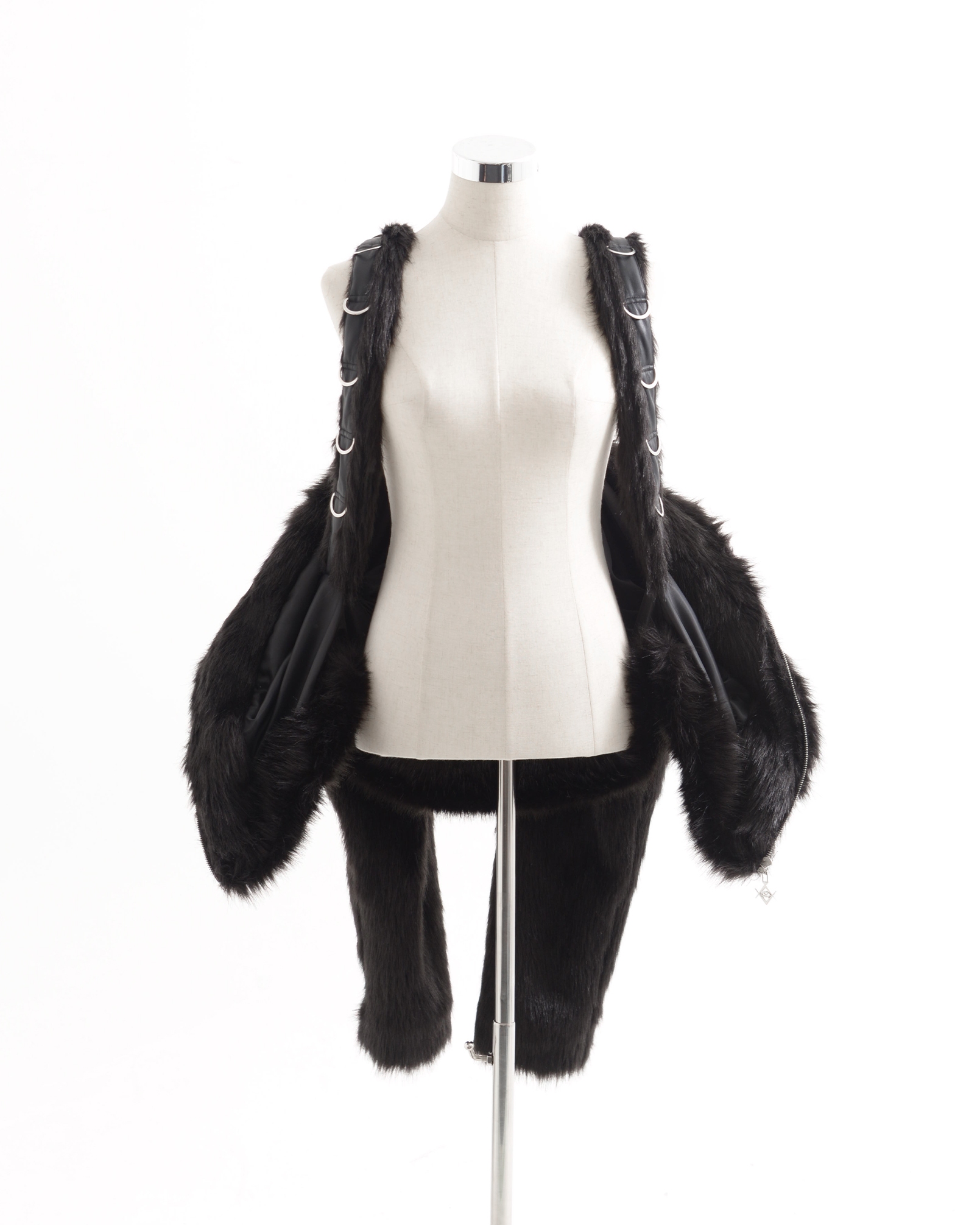 ■ A wearable faux fur blouson with shoulder straps for carrying.