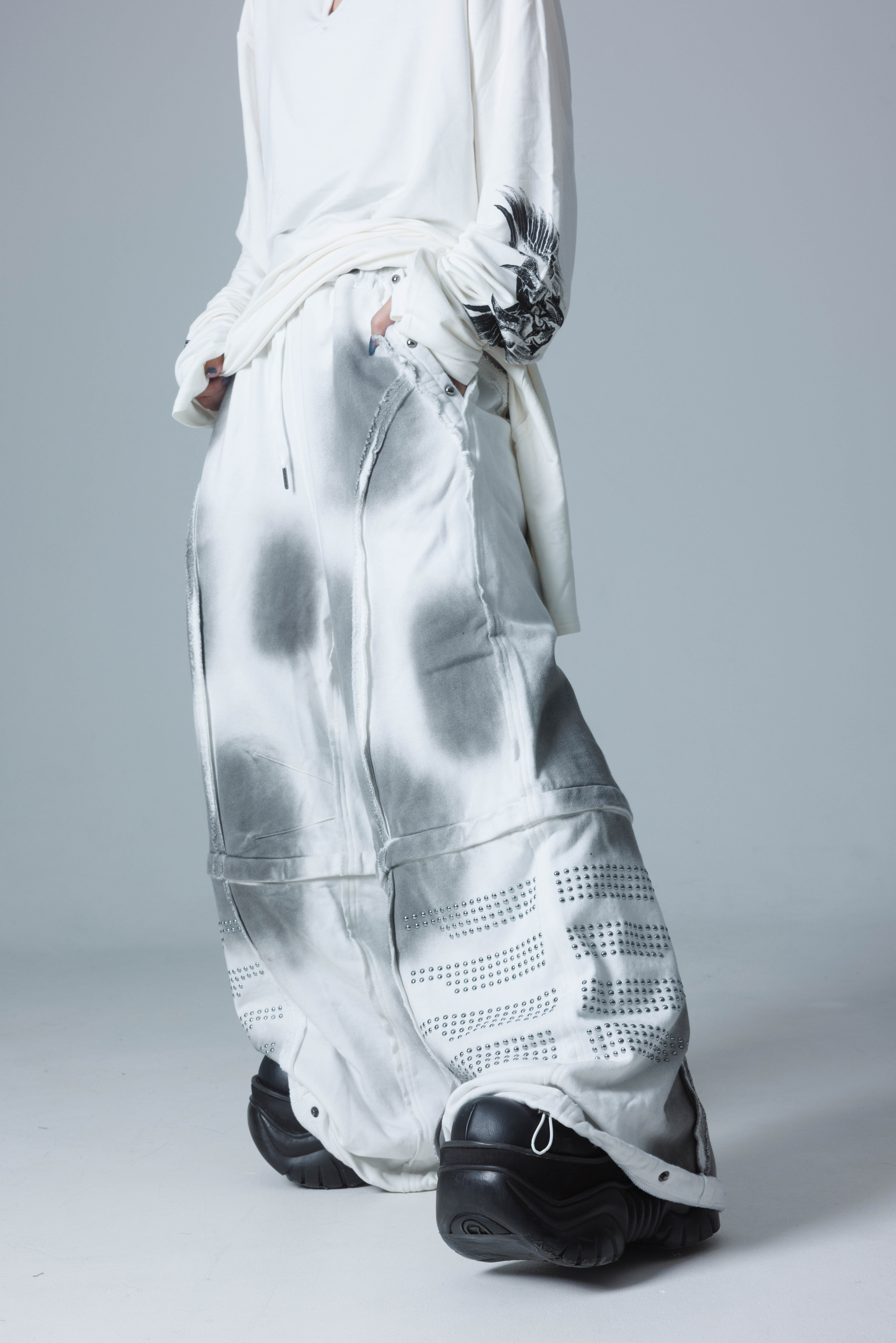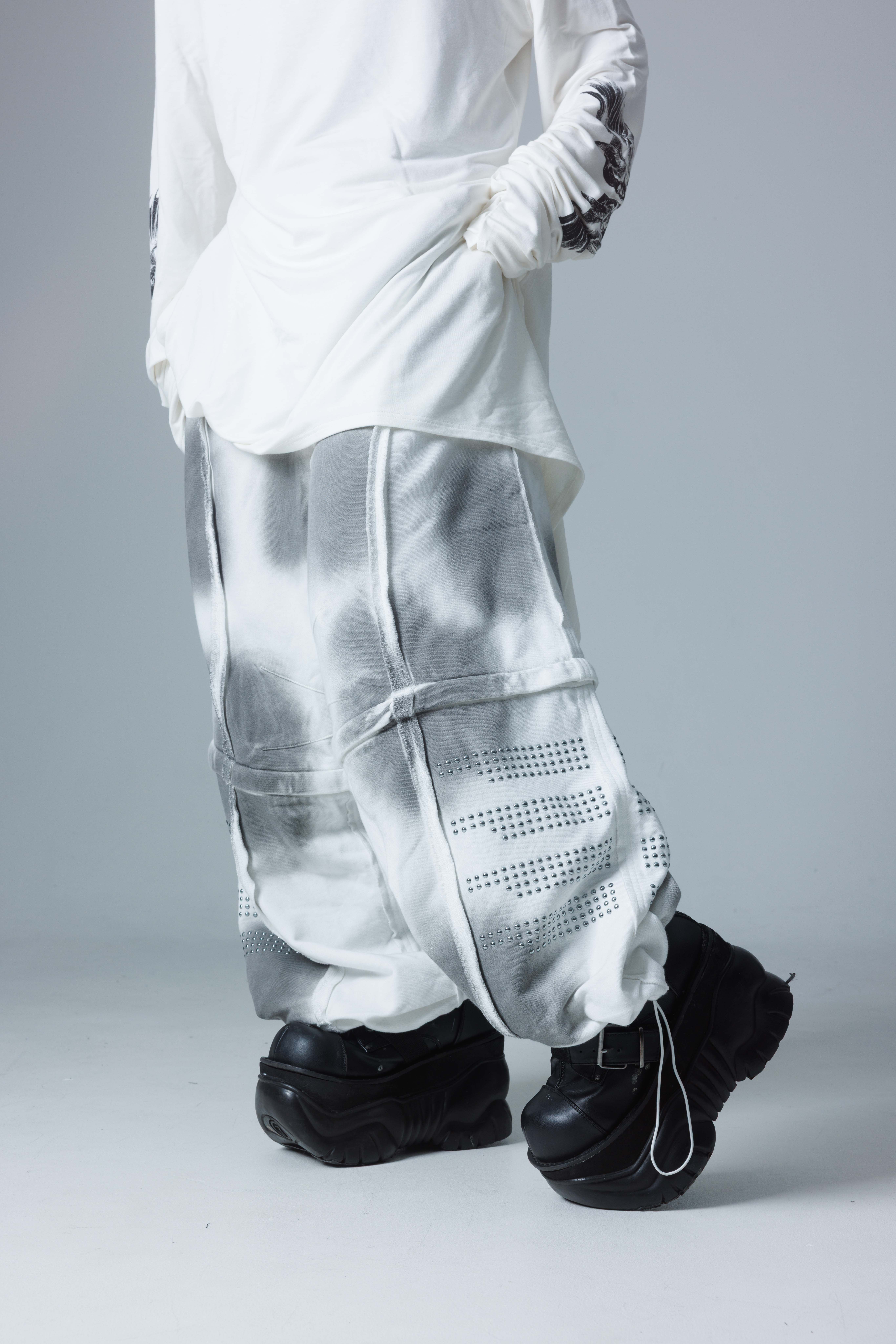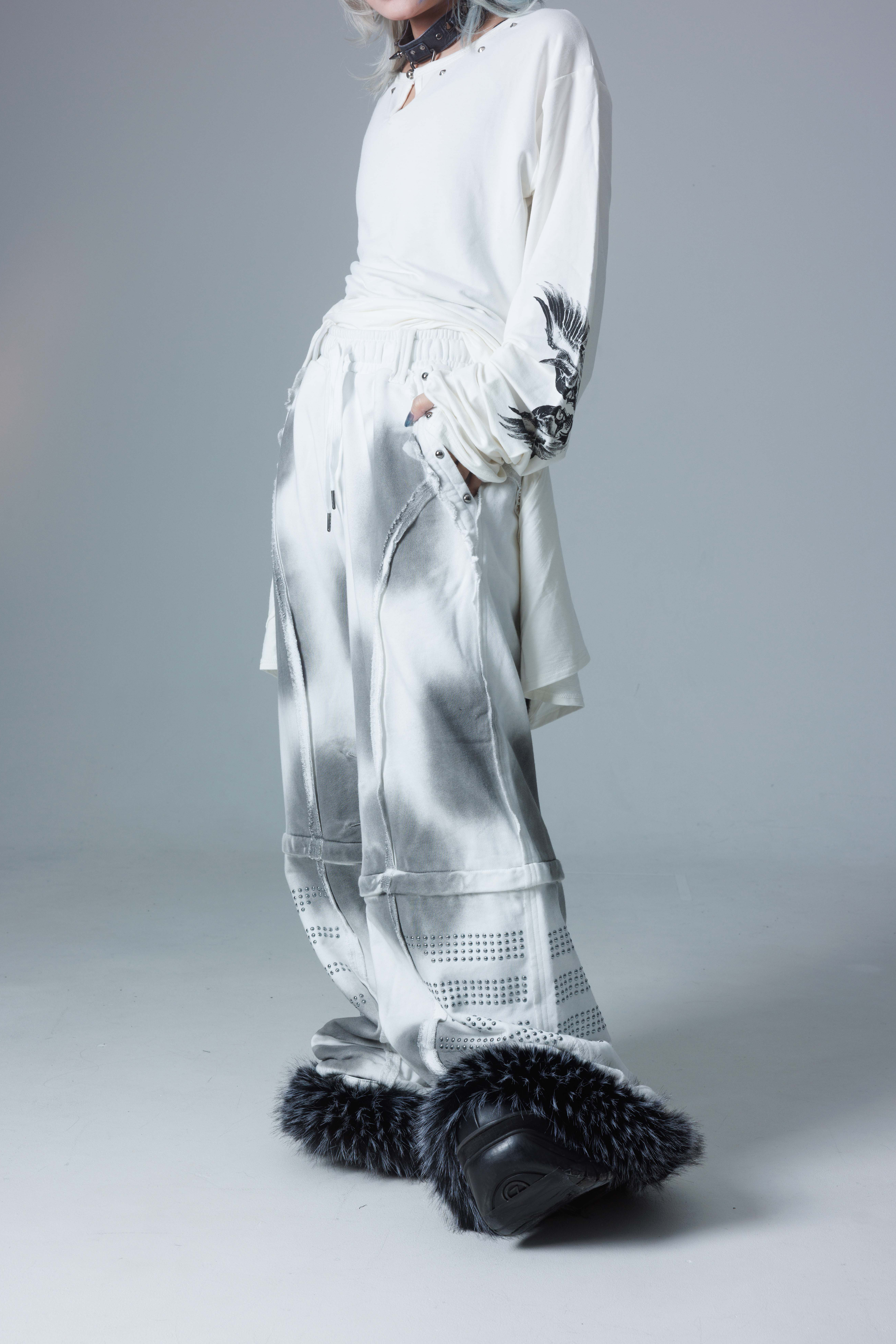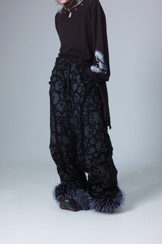 Gamchu’s decayed × zero-gravity world, made manifest — a standout pair of fur-trimmed convertible wide leg sweat cargo pants arrives with overwhelming presence.