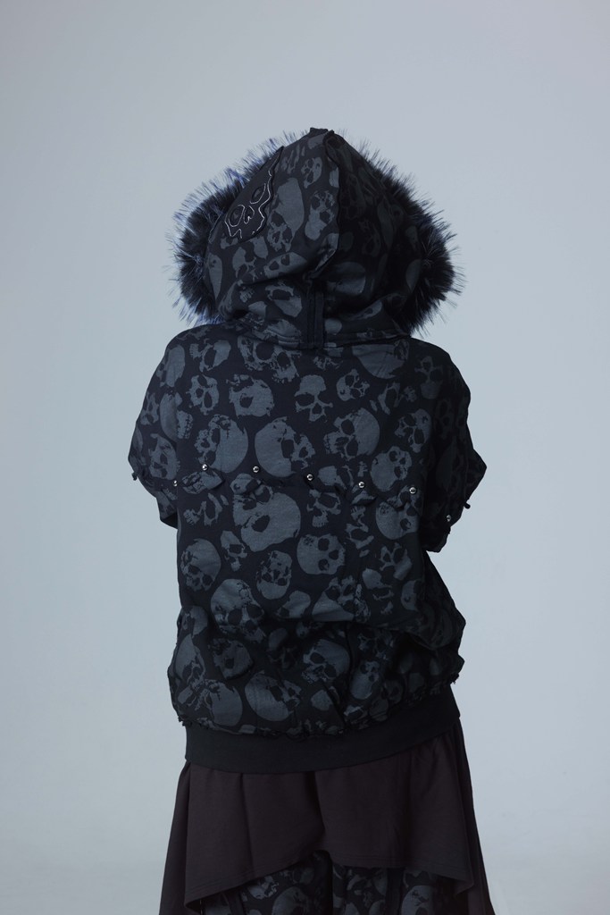 The front features a double-layered placket structure combining both a zipper closure and a lineup of skull-shaped buttons, creating a powerful, dimensional chest detail with Gamchu’s signature intensity.