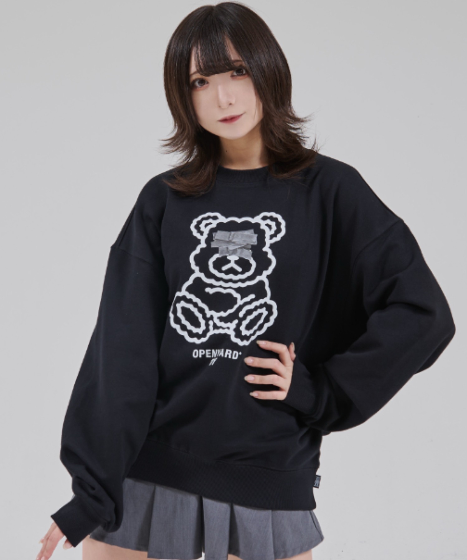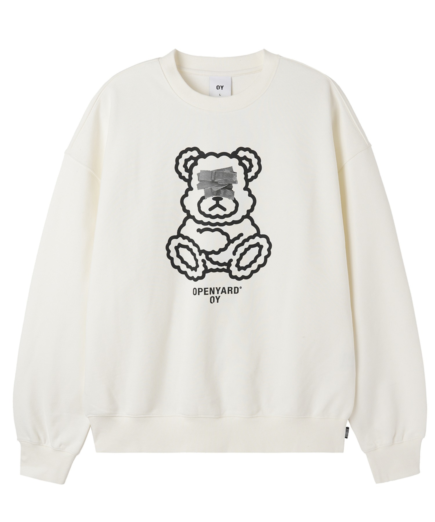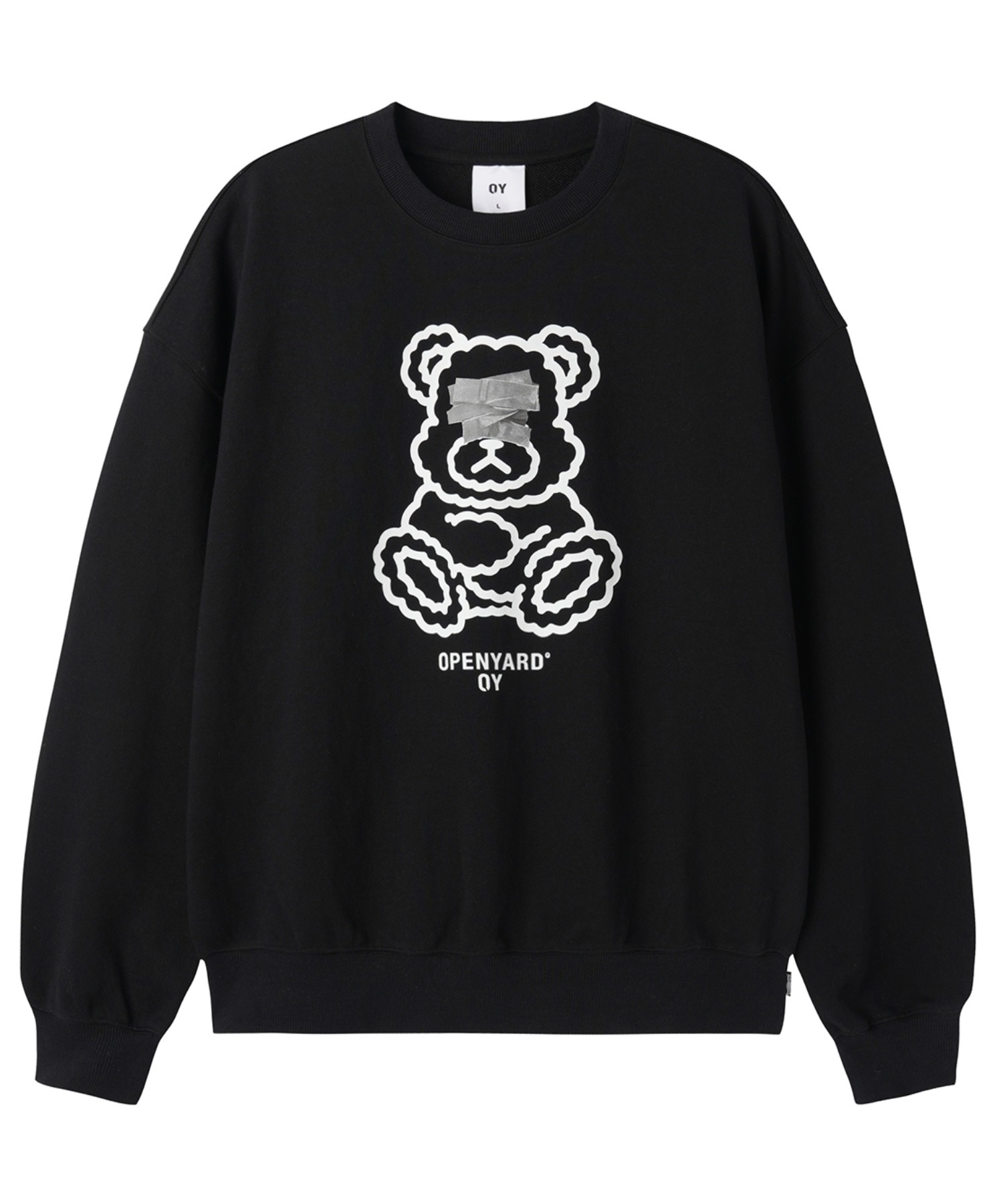 The front features a bold bear motif with its eyes covered by tape, creating a unique and edgy design.