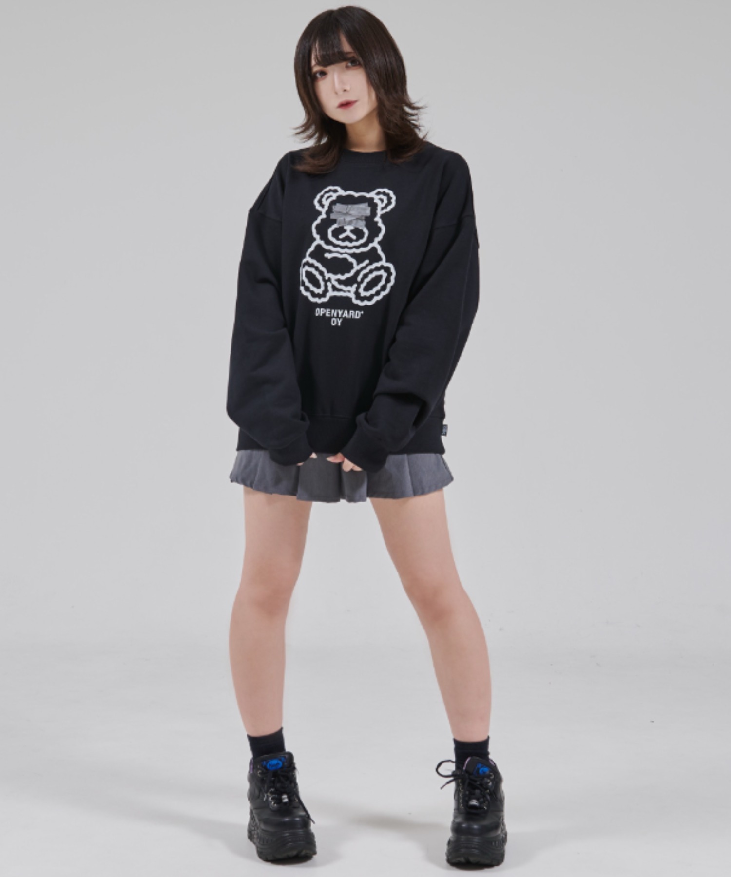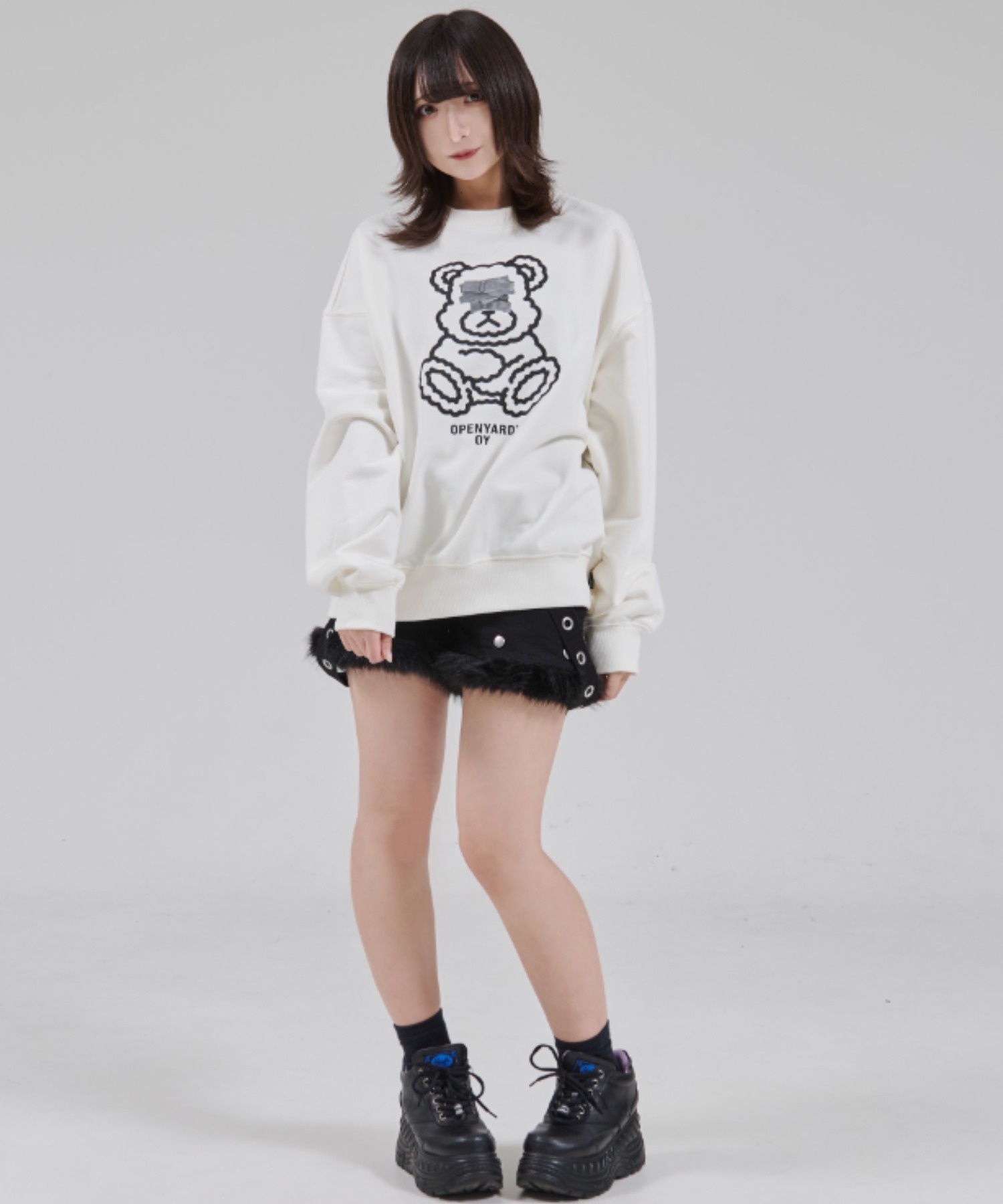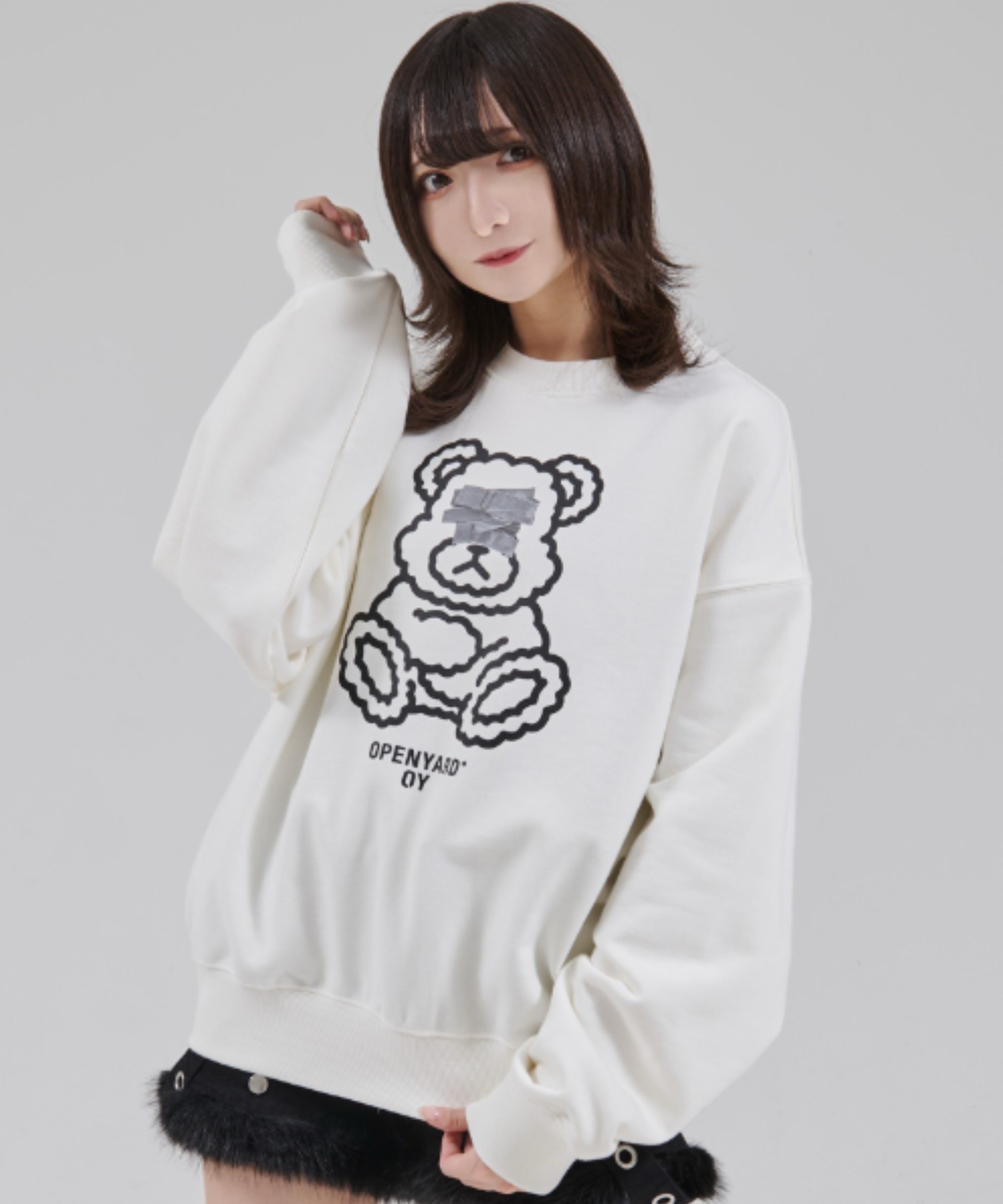 The front features a bold bear motif with its eyes covered by tape, creating a unique and edgy design.