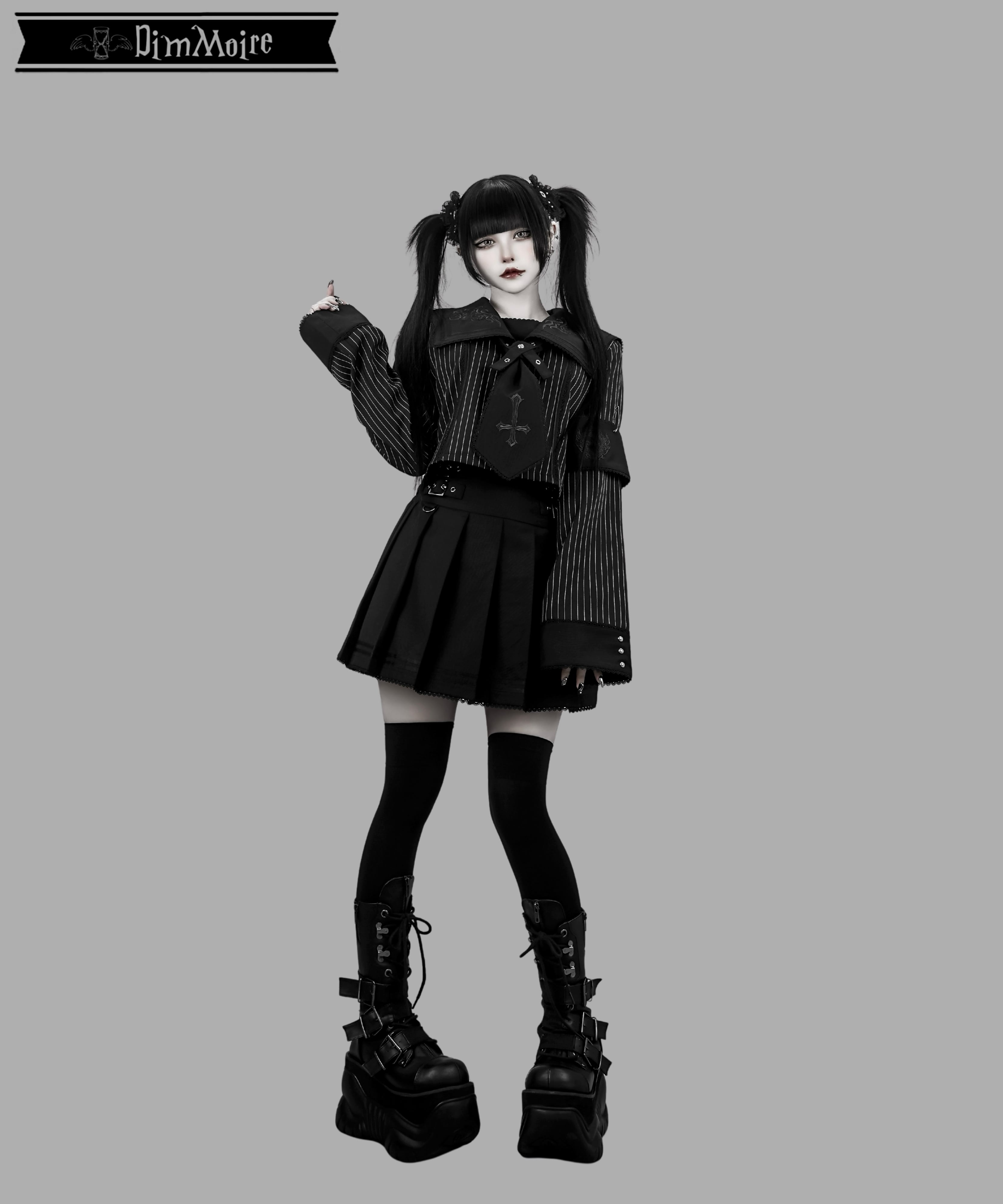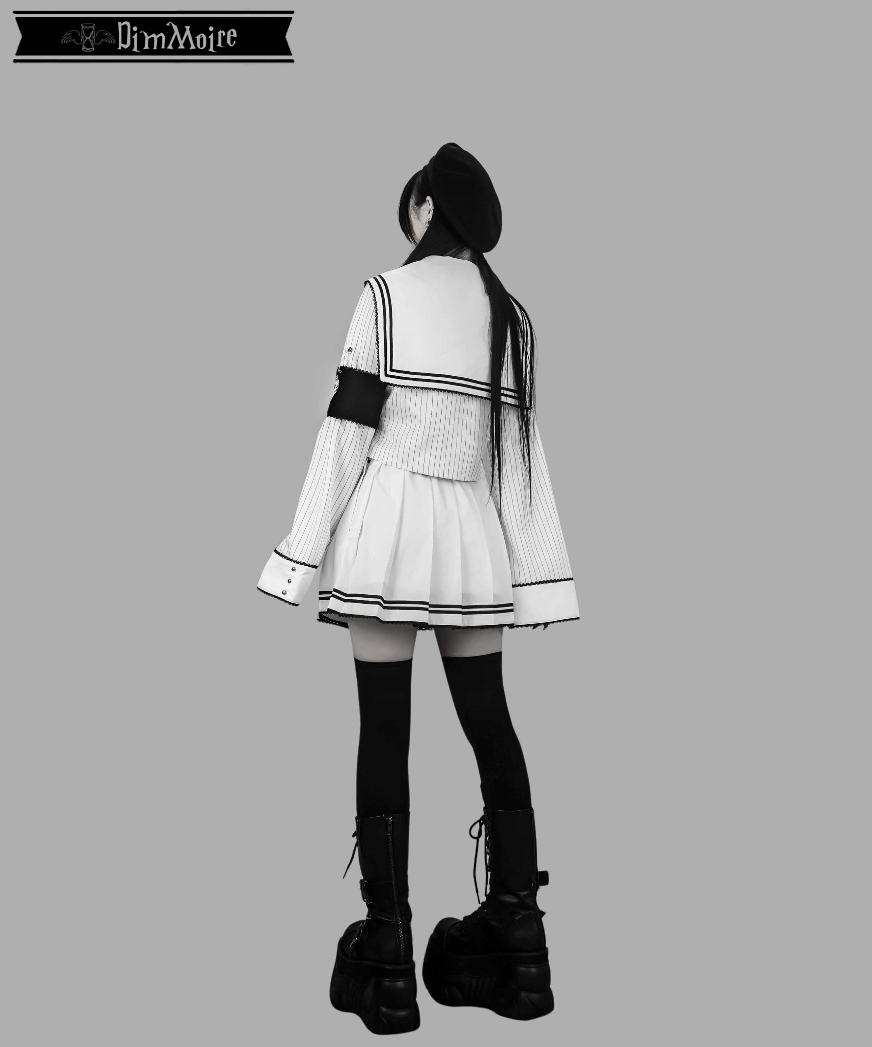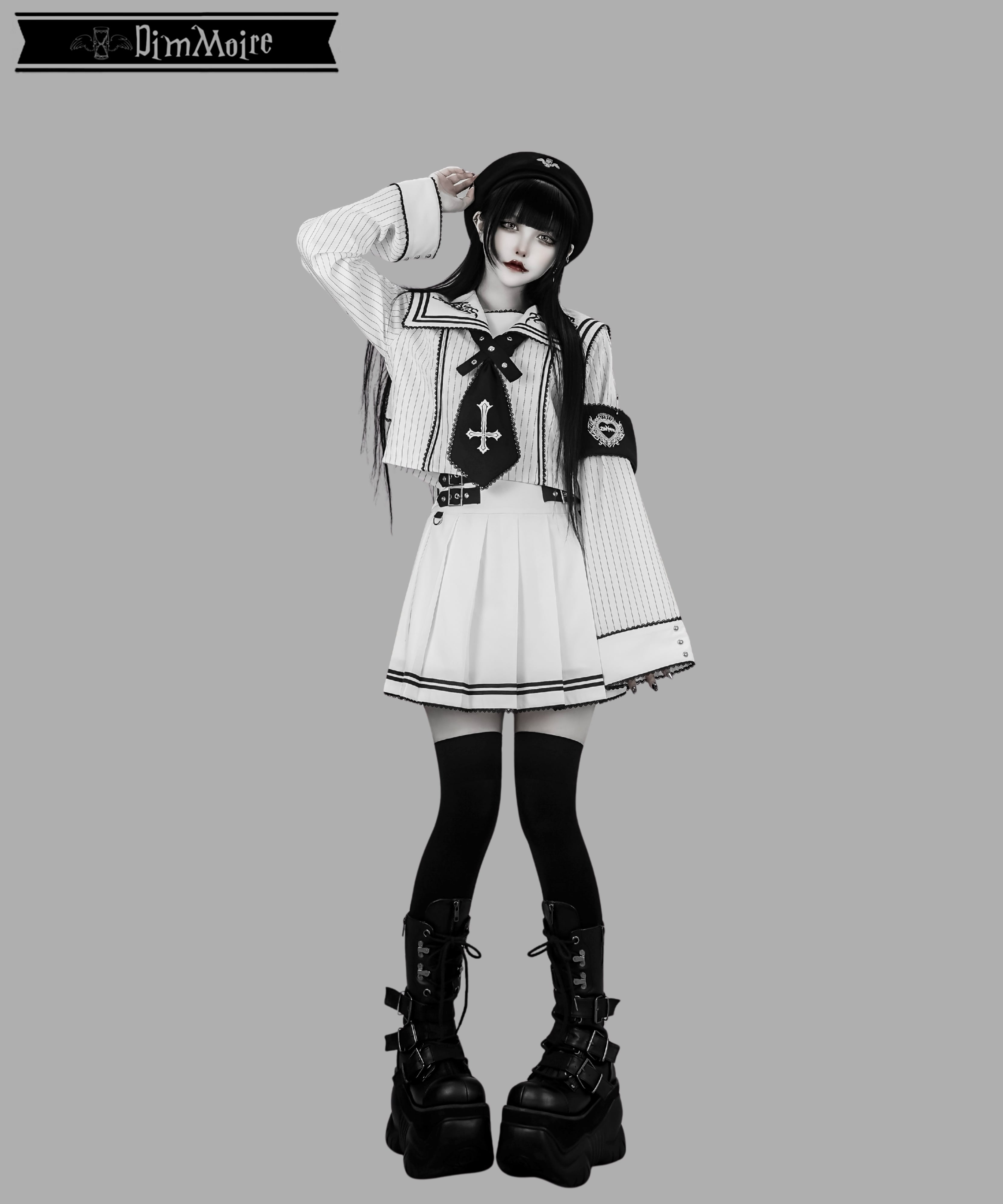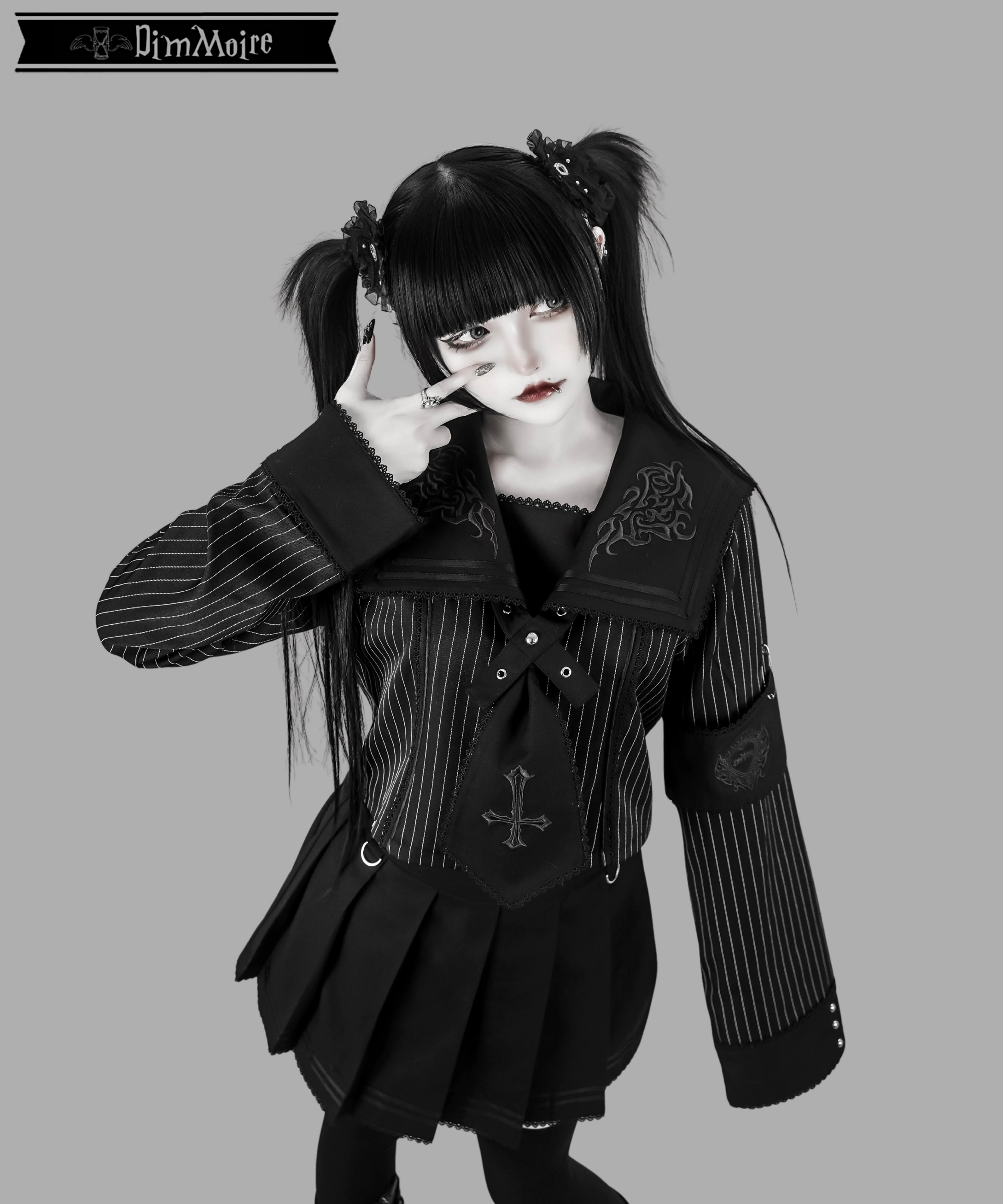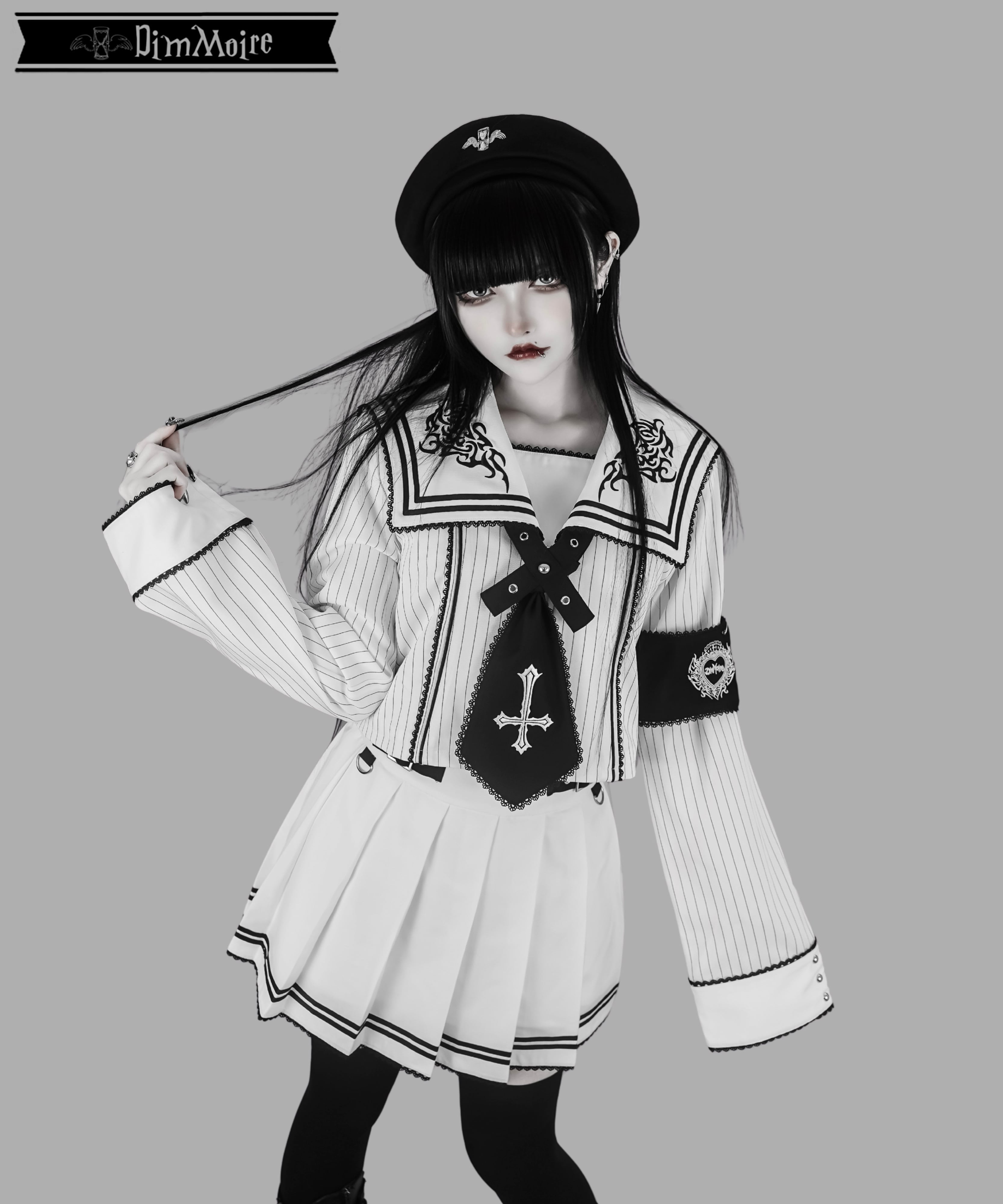 Featuring an embroidered sailor collar, matching tie, and armband, the design embodies the signature DimMoire aesthetic and delivers a unique, special look ❤︎