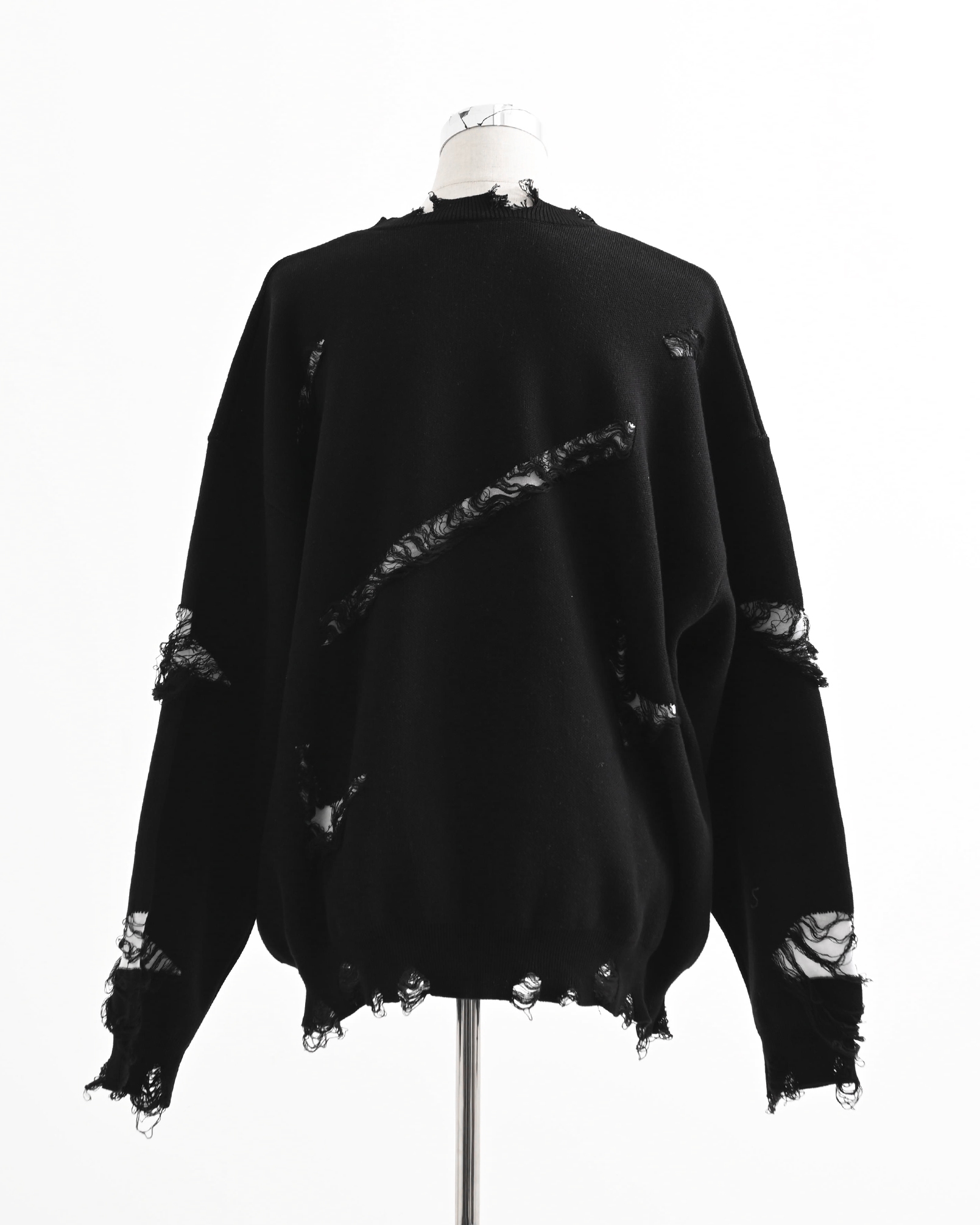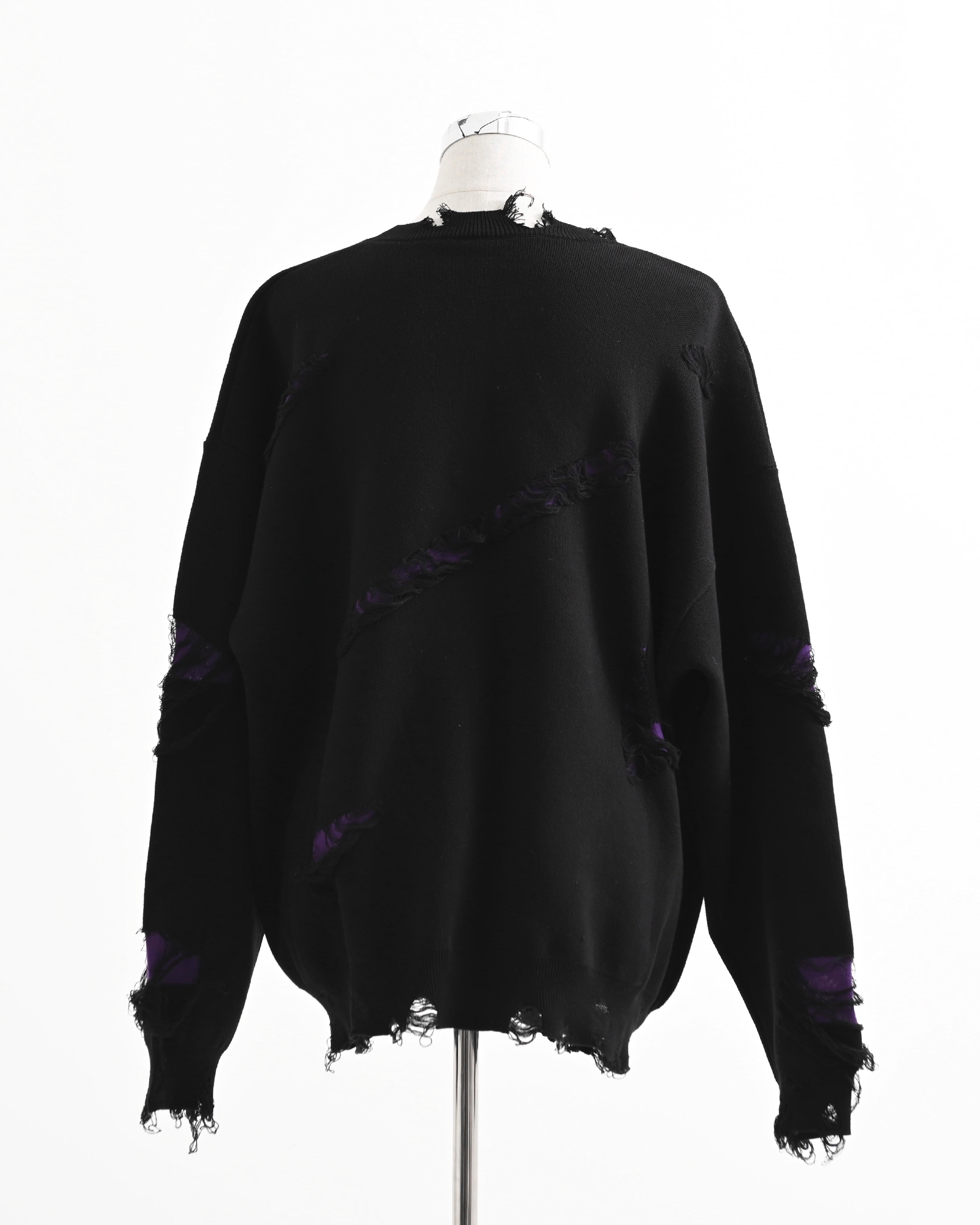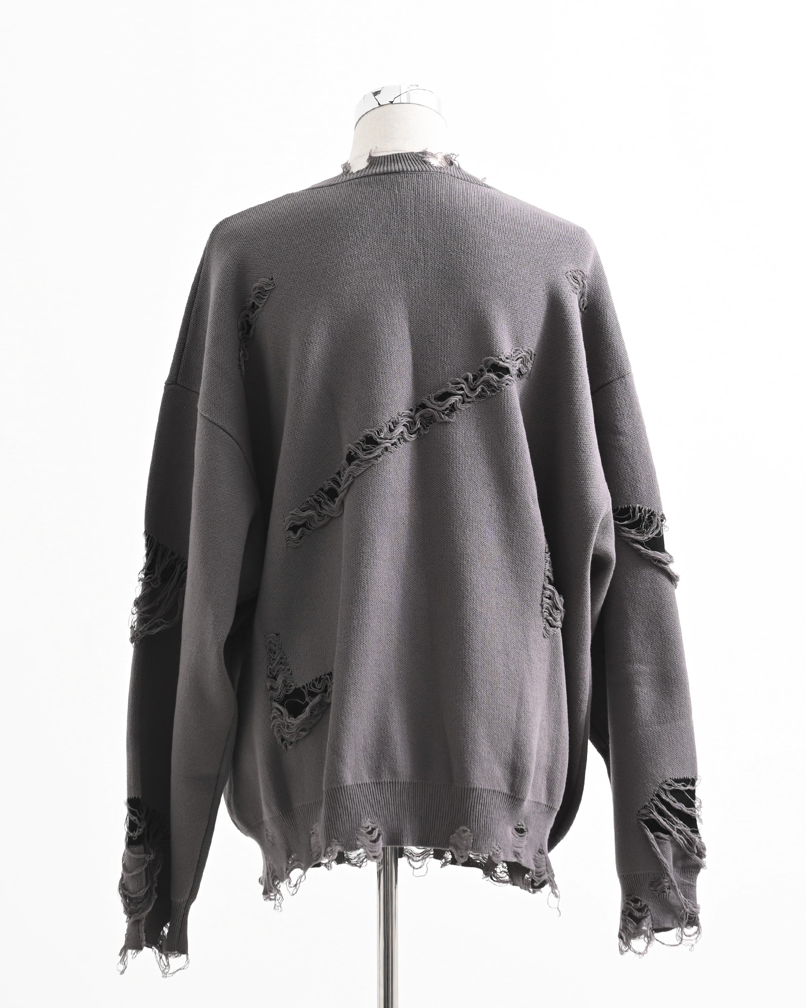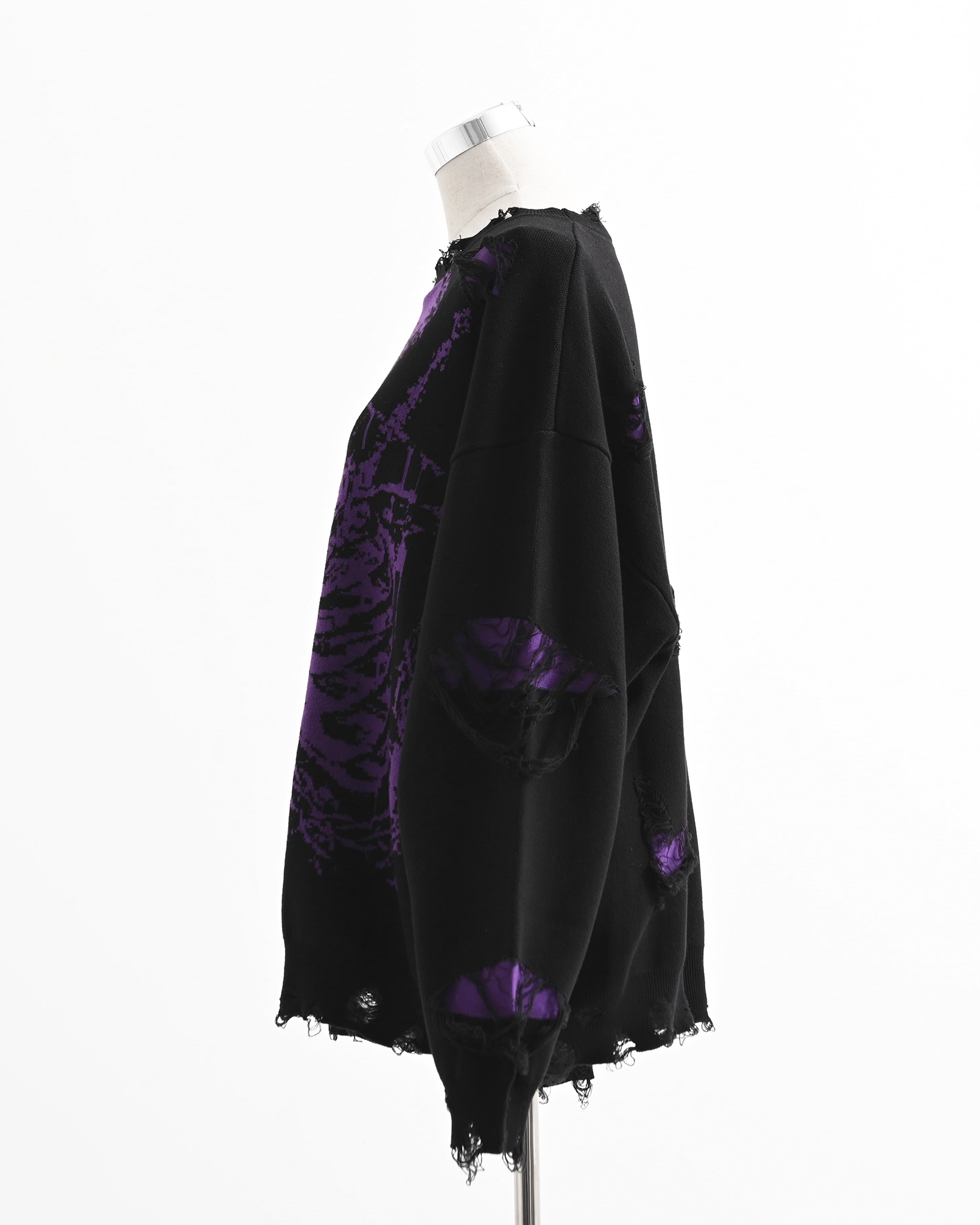 A pullover knit featuring skull artwork and distressed ""broken"" processing.