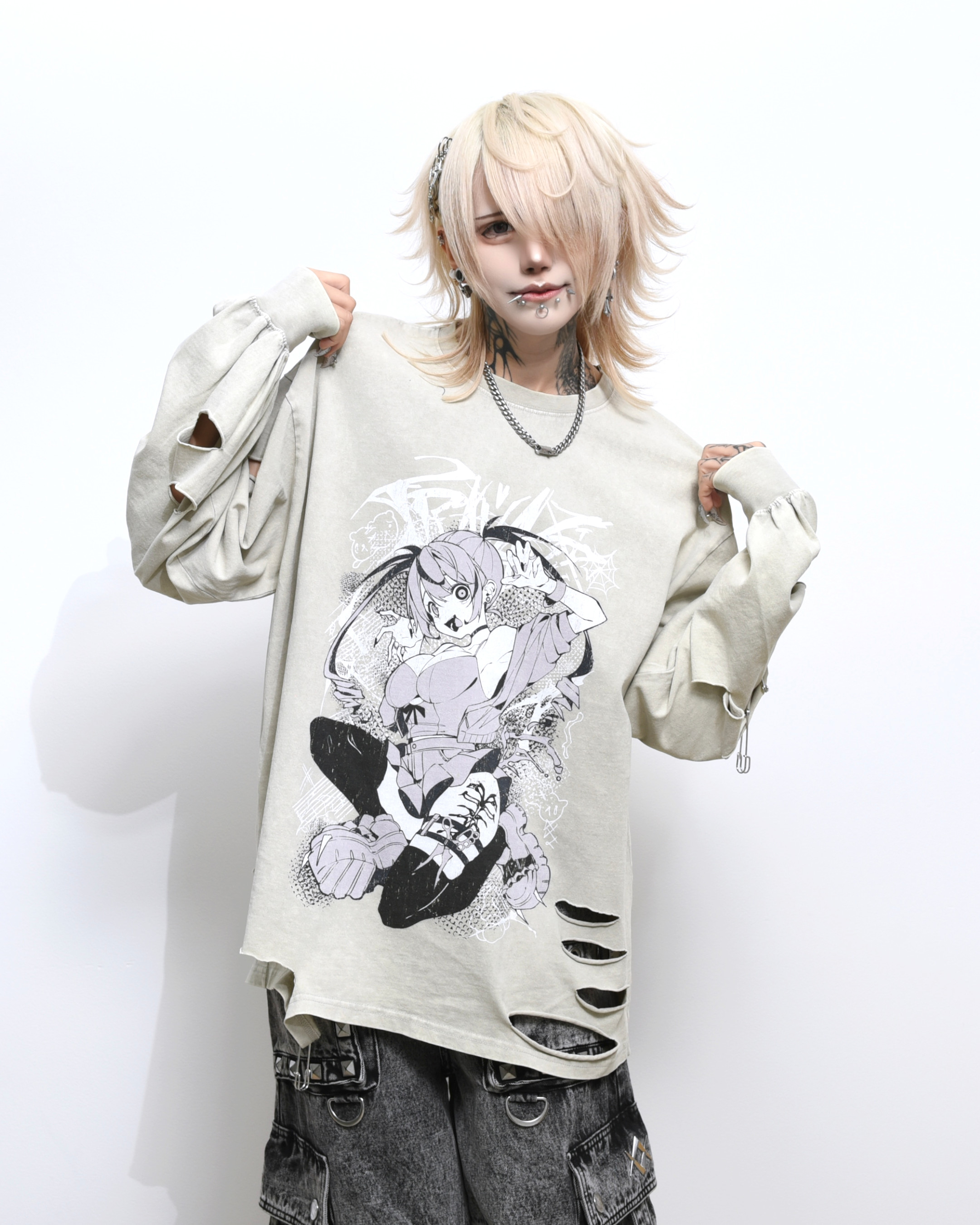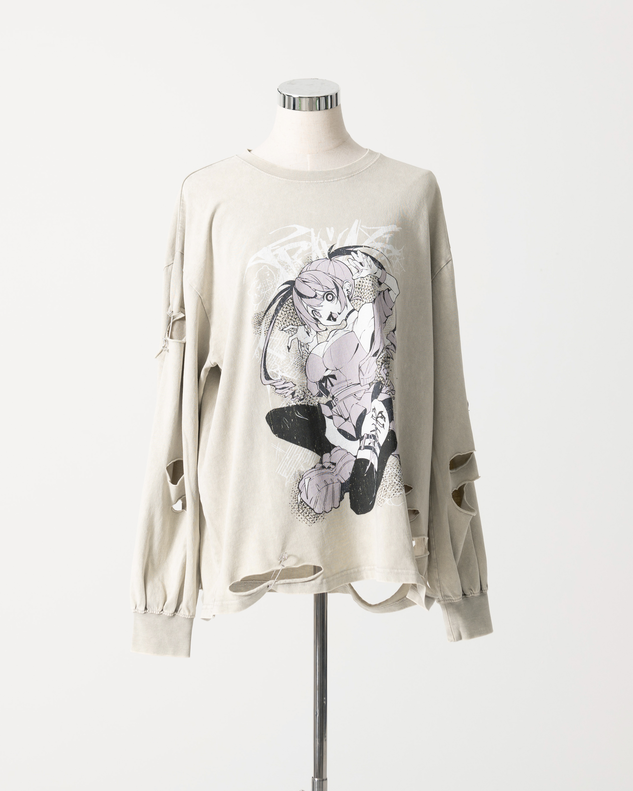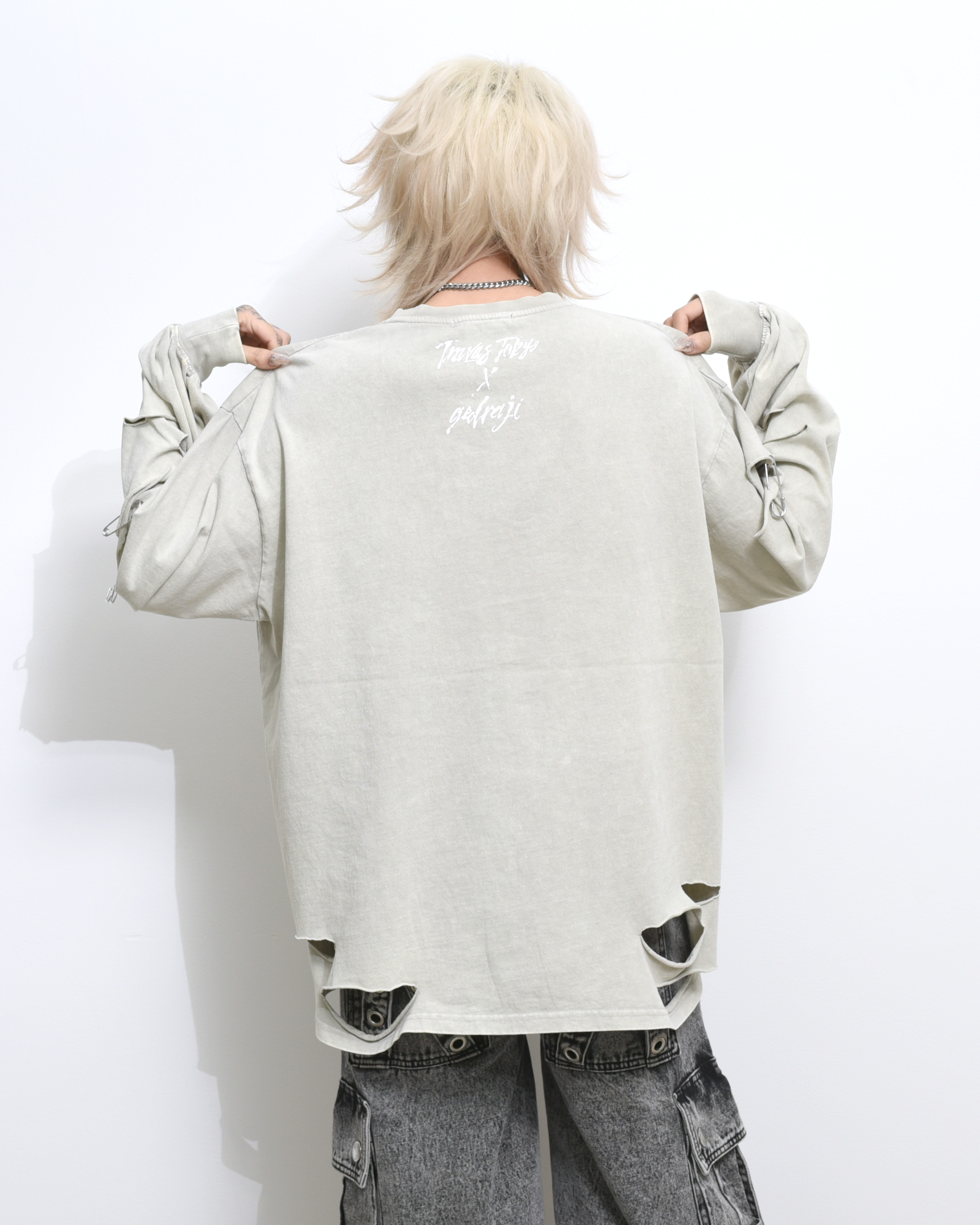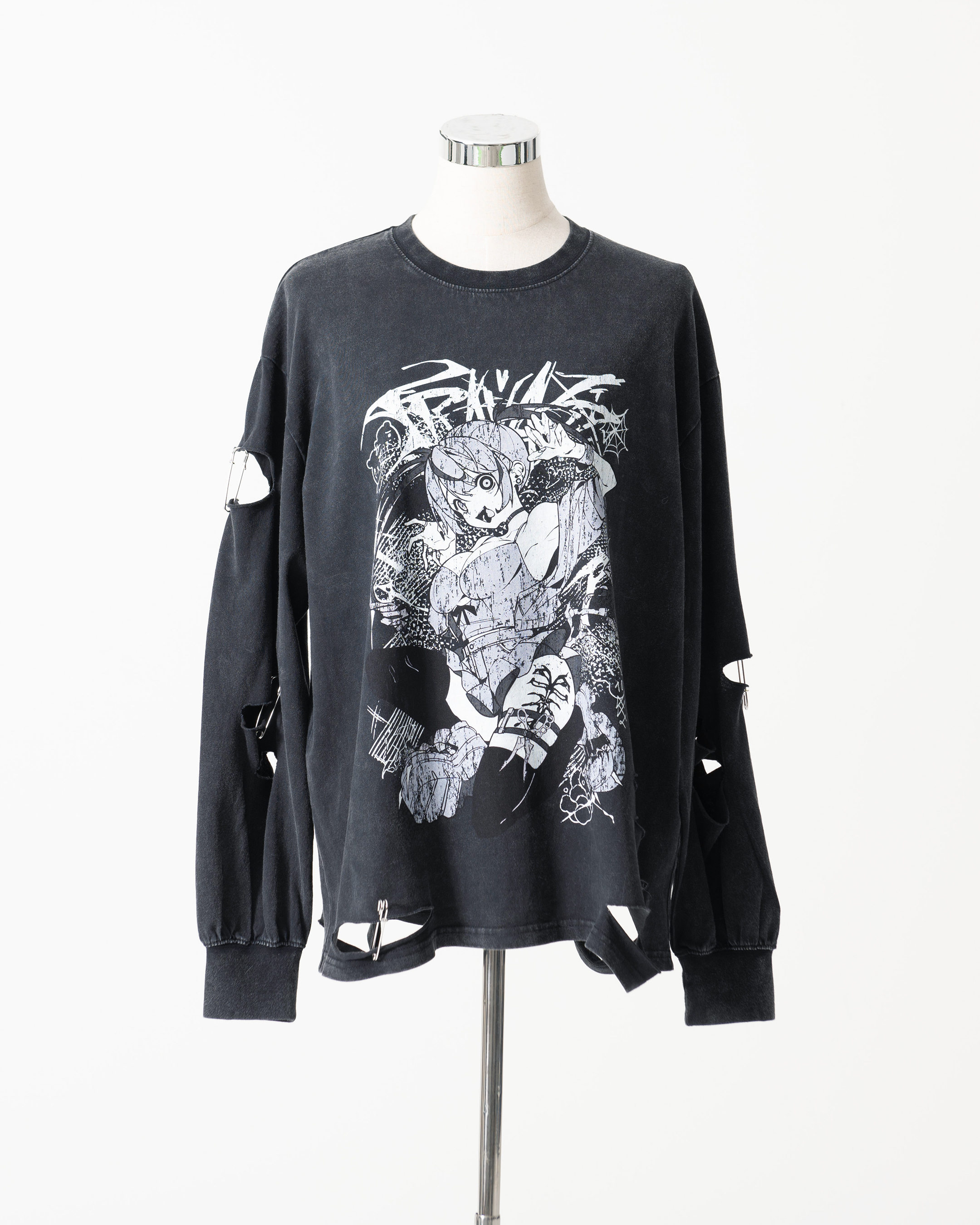 A collaboration long-sleeve cut-and-sew top with GEDRAJI, who is active as an illustrator and idol.