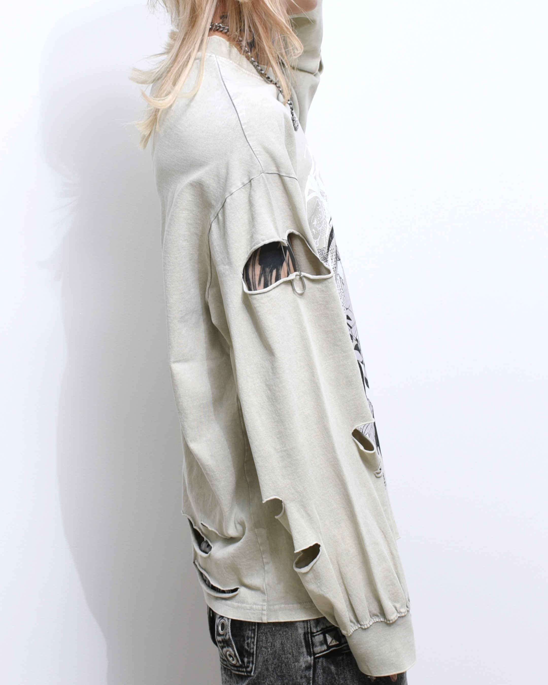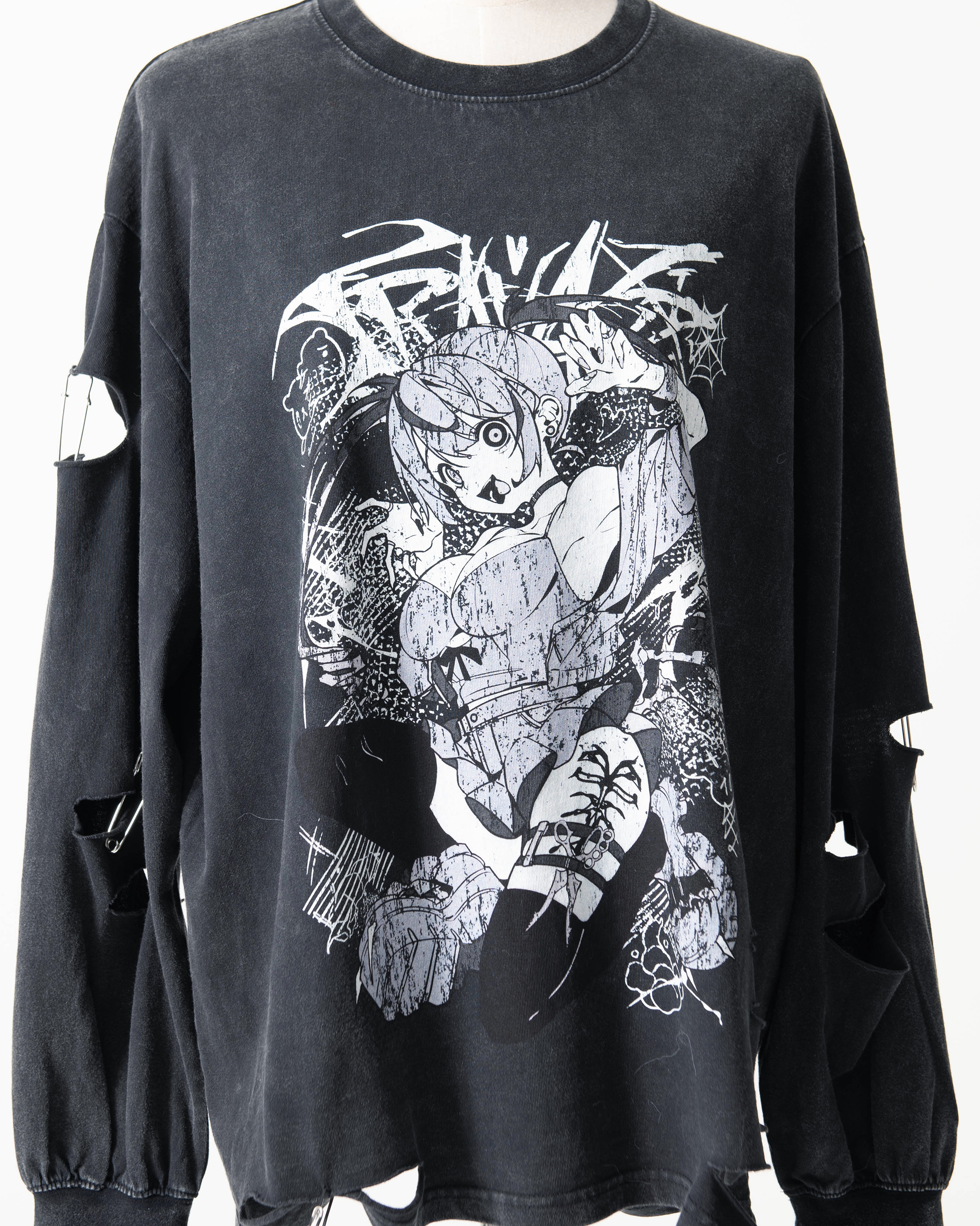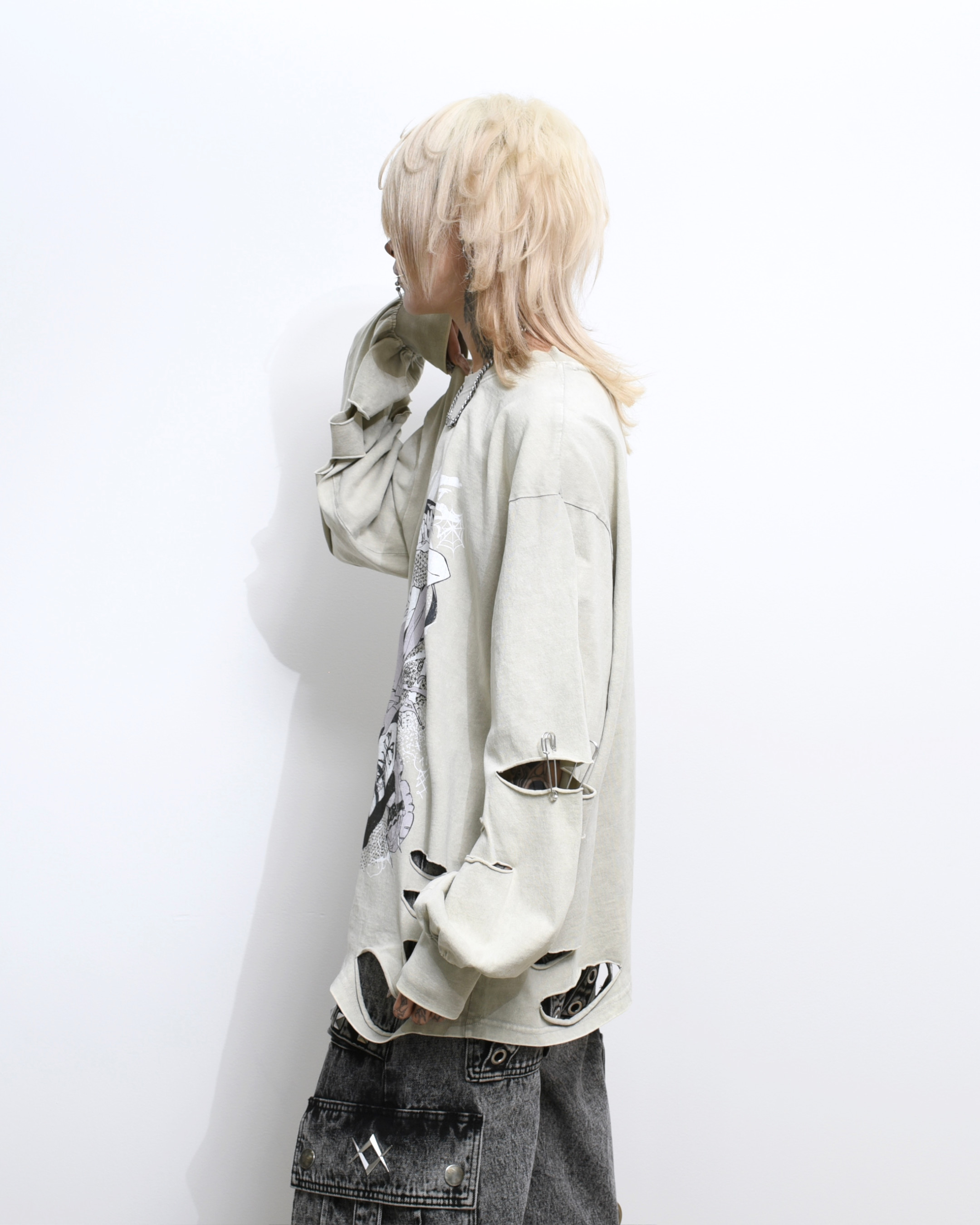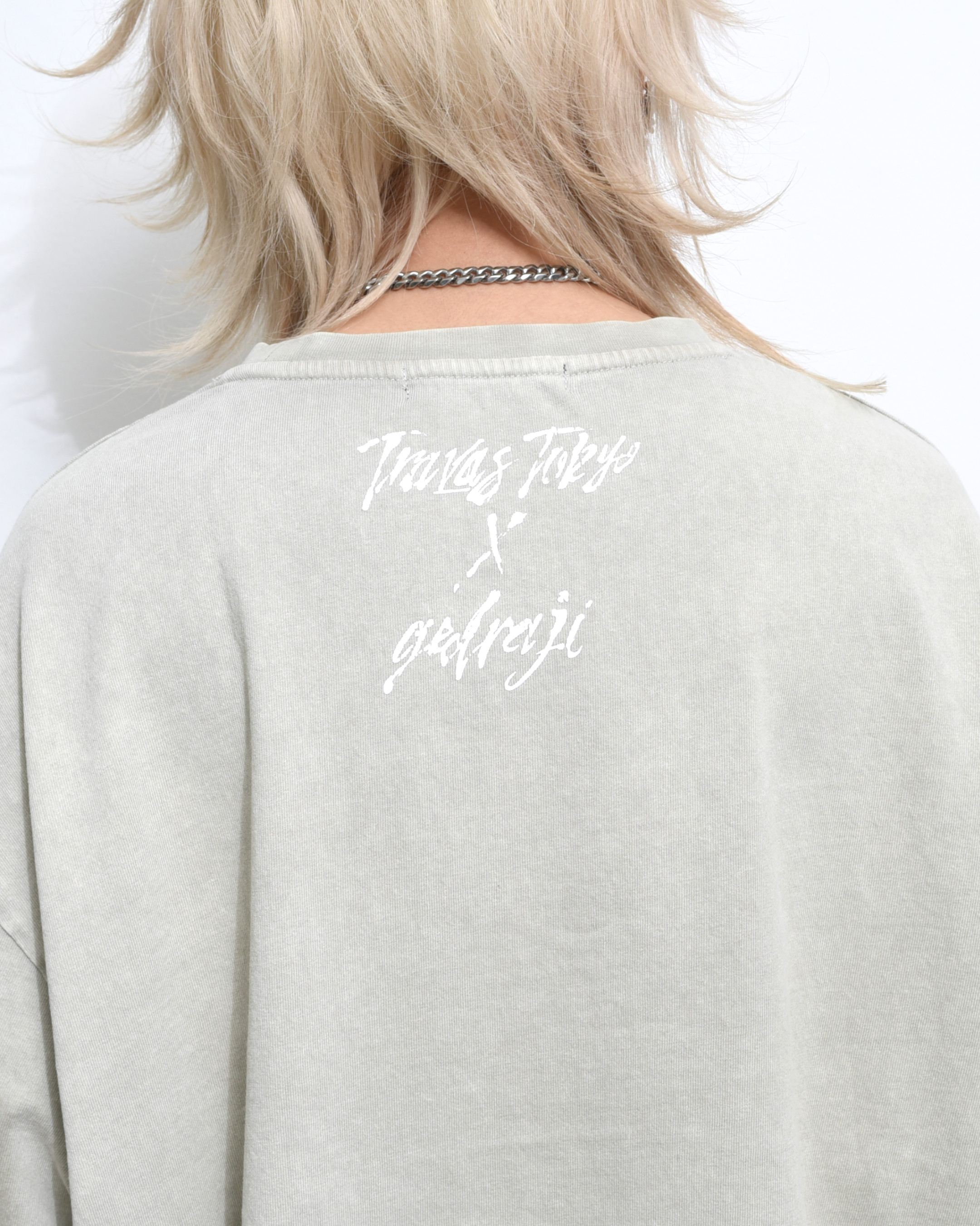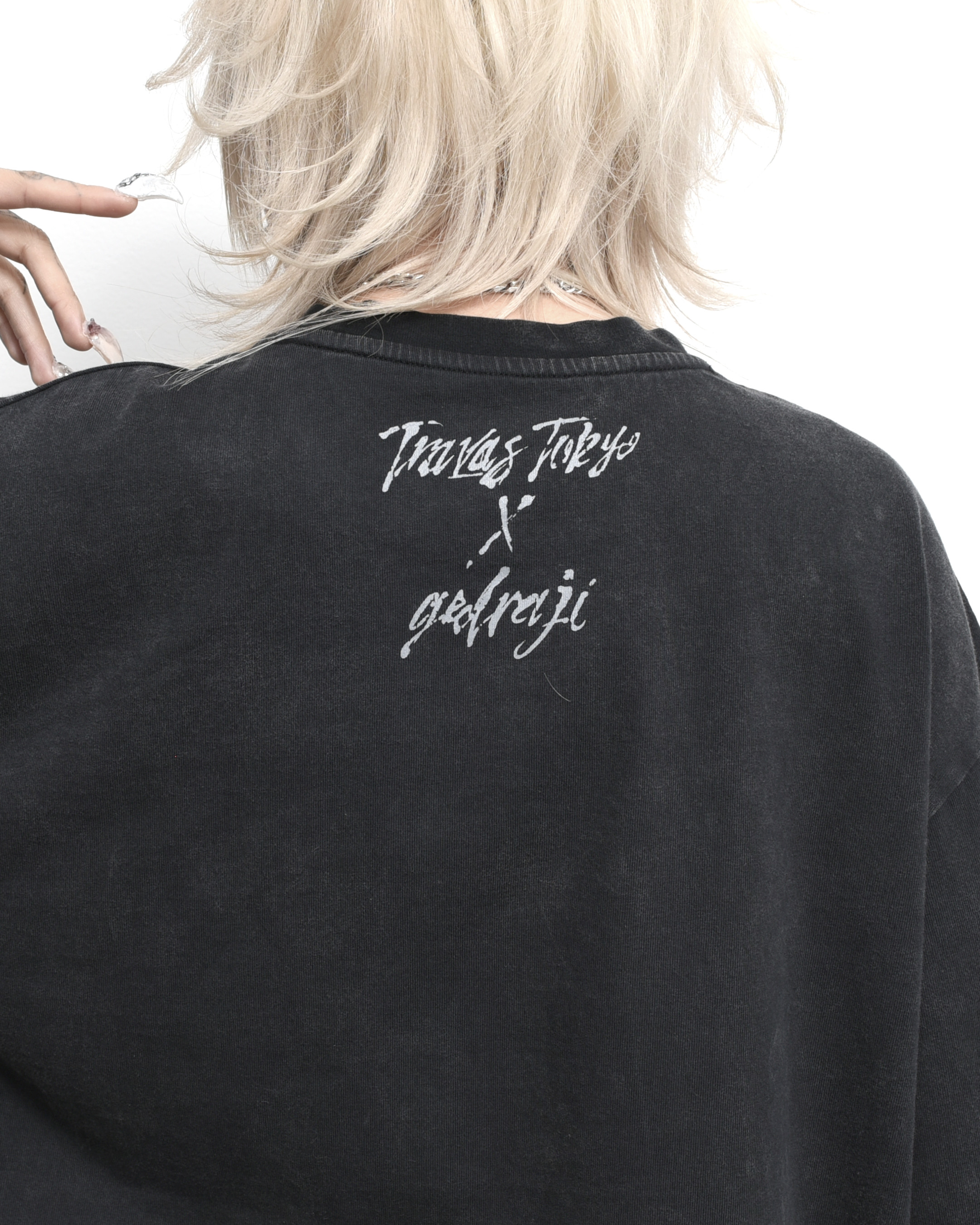 A collaboration long-sleeve cut-and-sew top with GEDRAJI, who is active as an illustrator and idol.