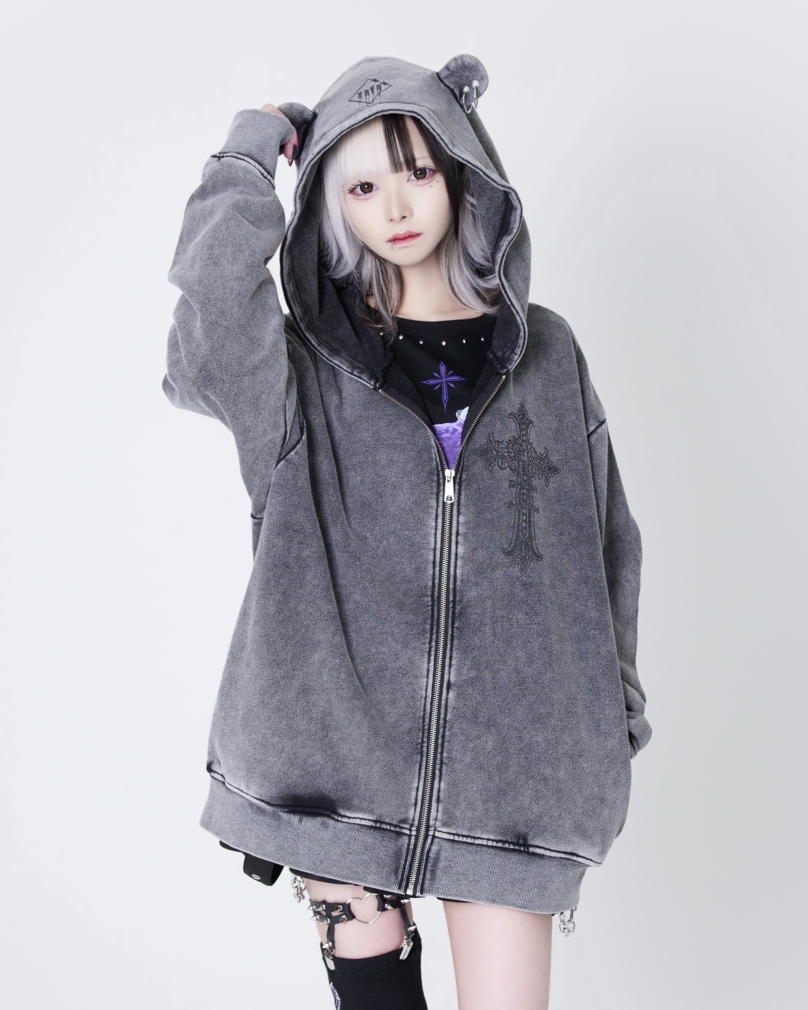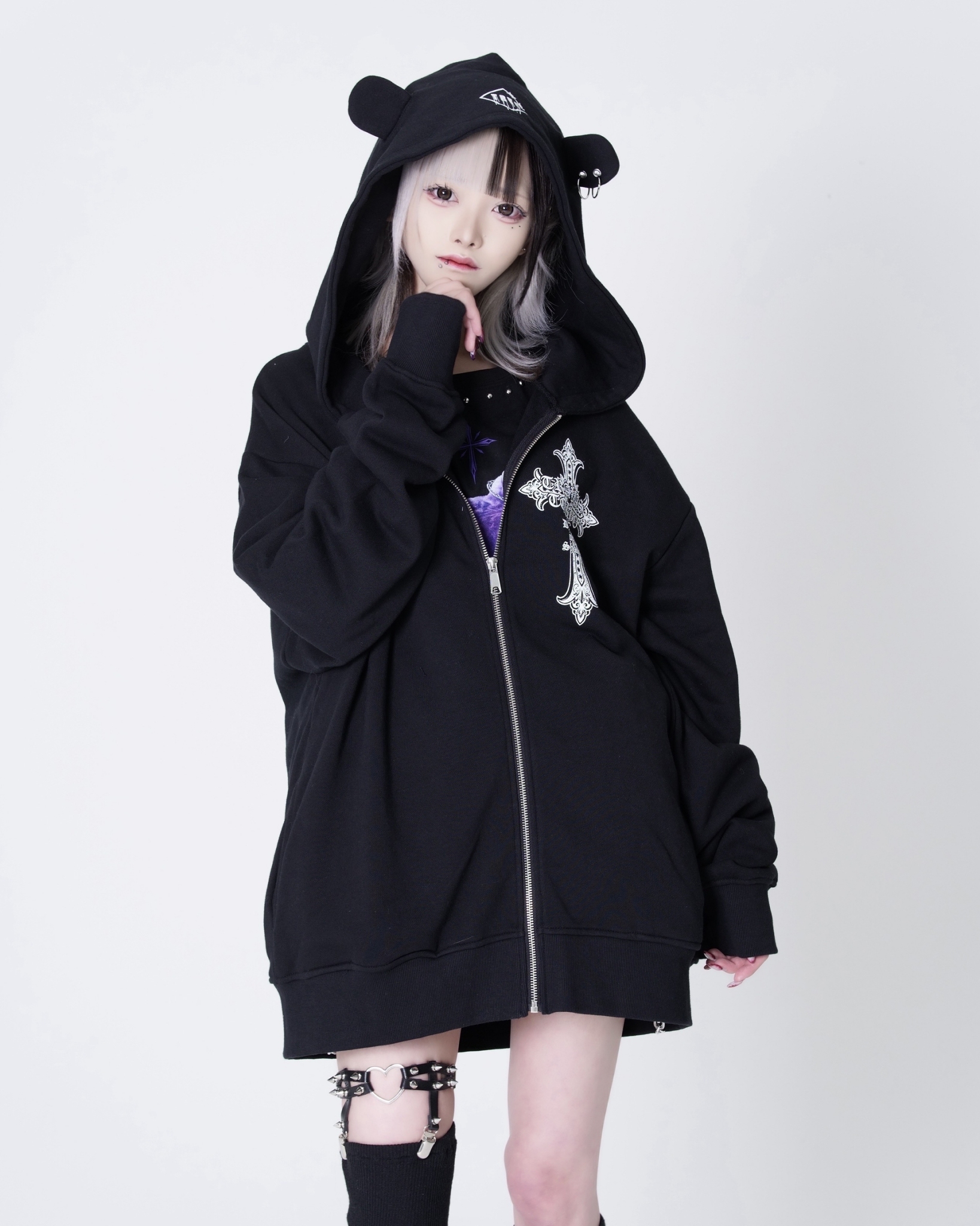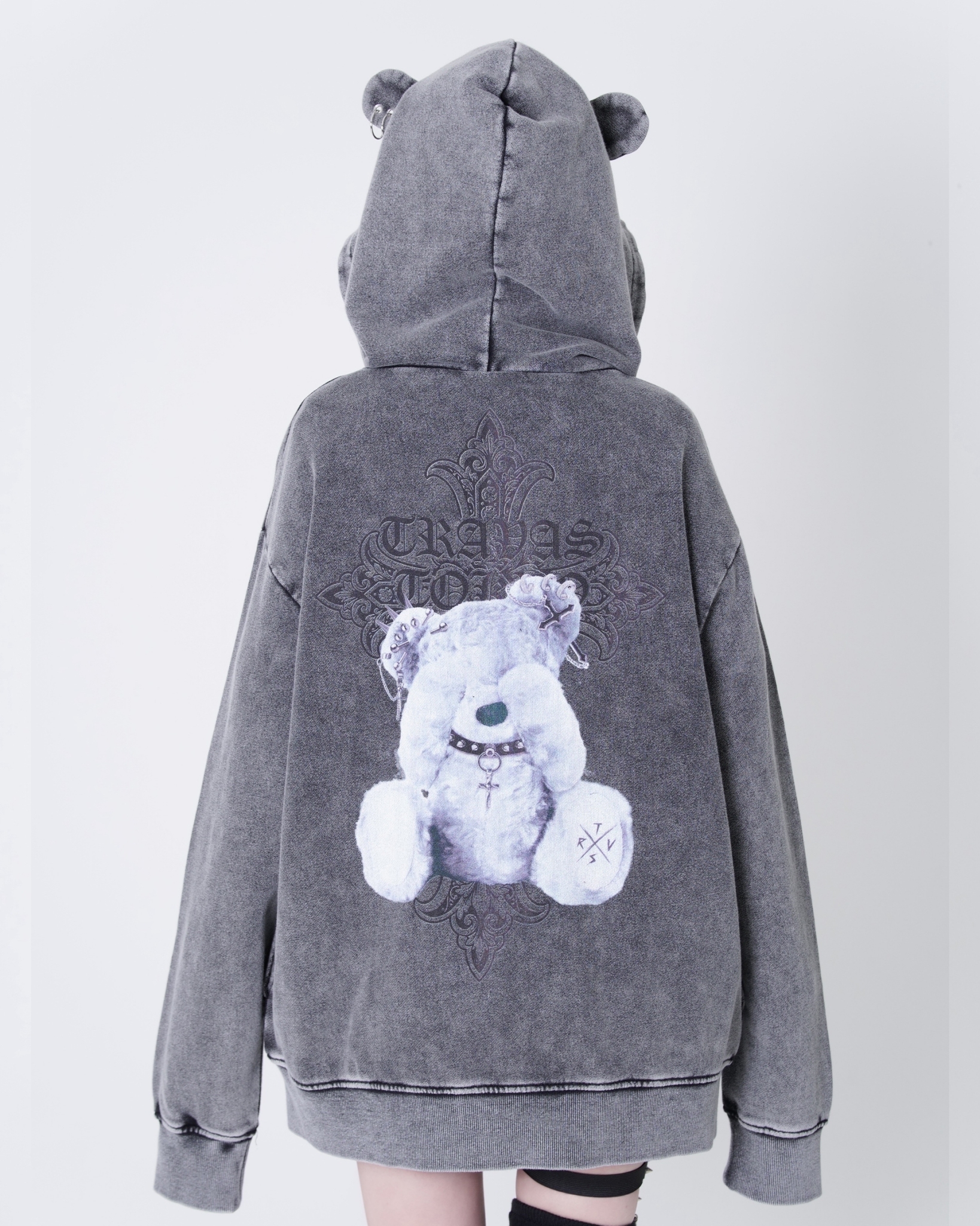 A statement zip hoodie featuring signature bear-ear detailing on the hood.