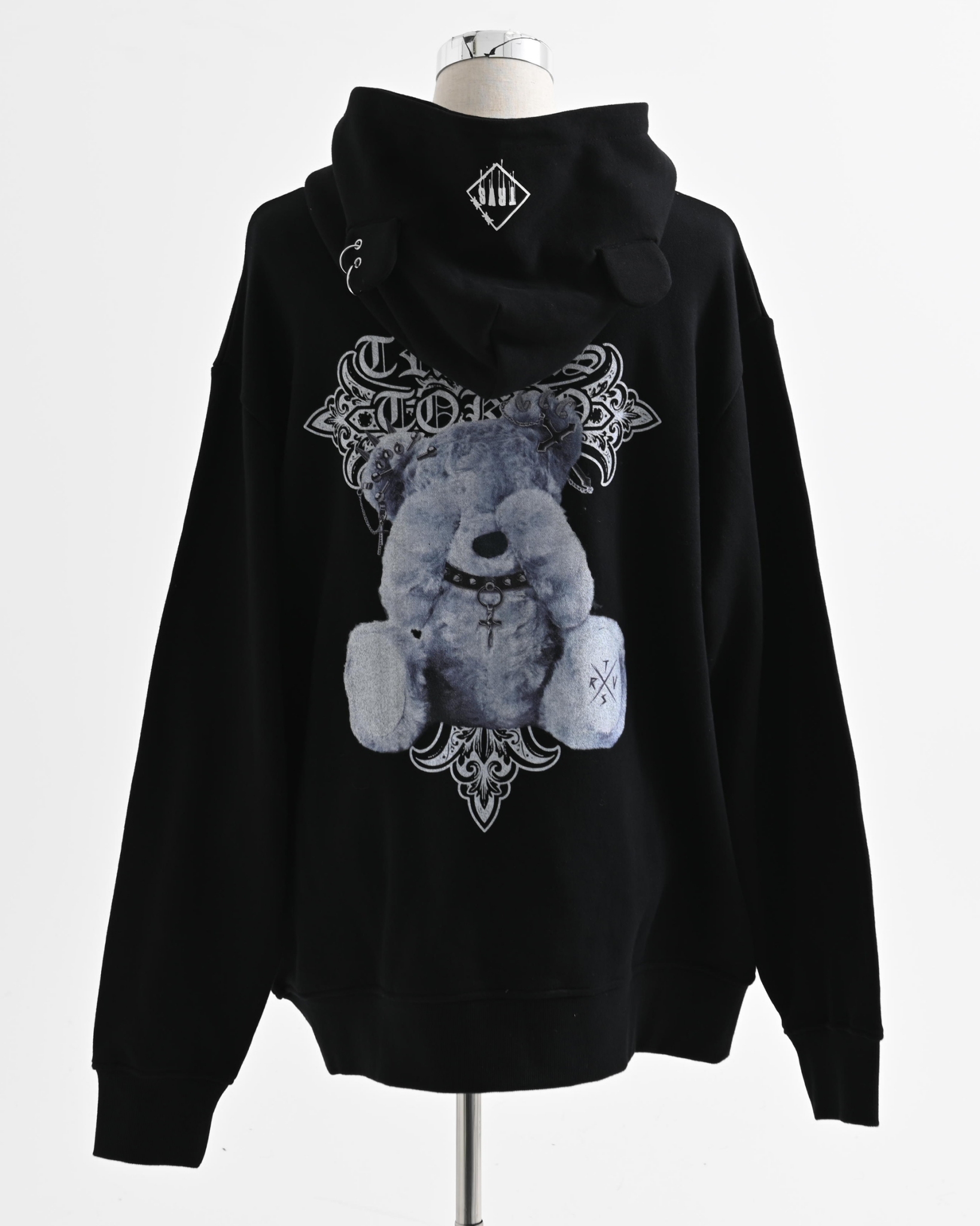 While based on the iconic bear motif, this piece fully expresses the TRAVAS aesthetic, enhanced with cross artwork for a gothic-inspired finish.