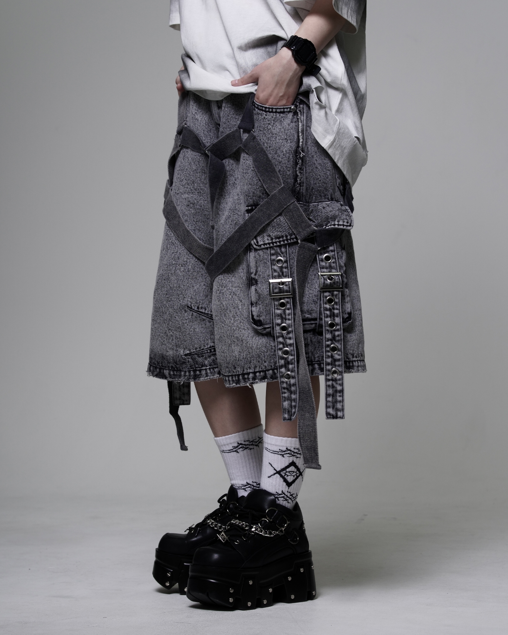 Made from the same material as the denim high-neck zip hoodie (reference number: RF26-H02), it is recommended to wear them as a set.