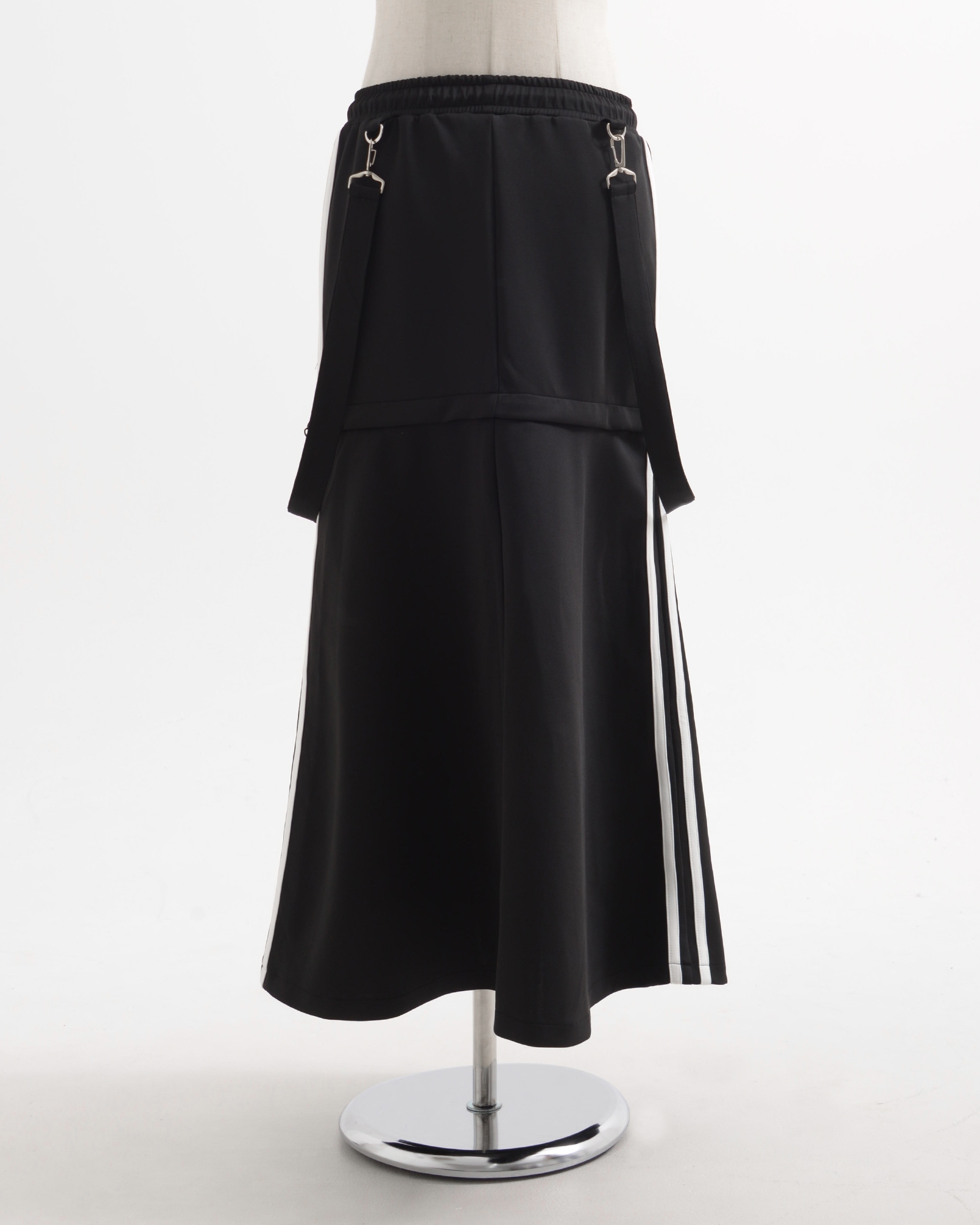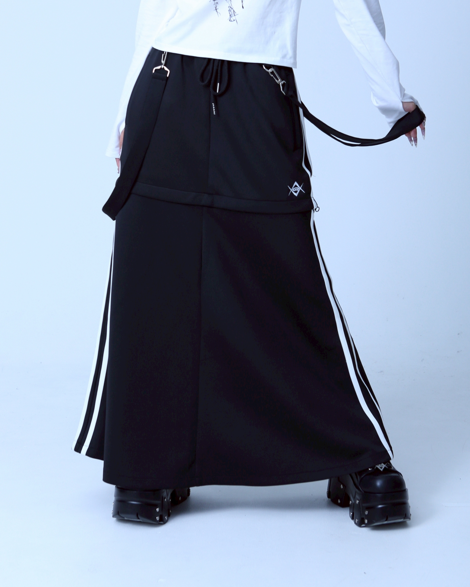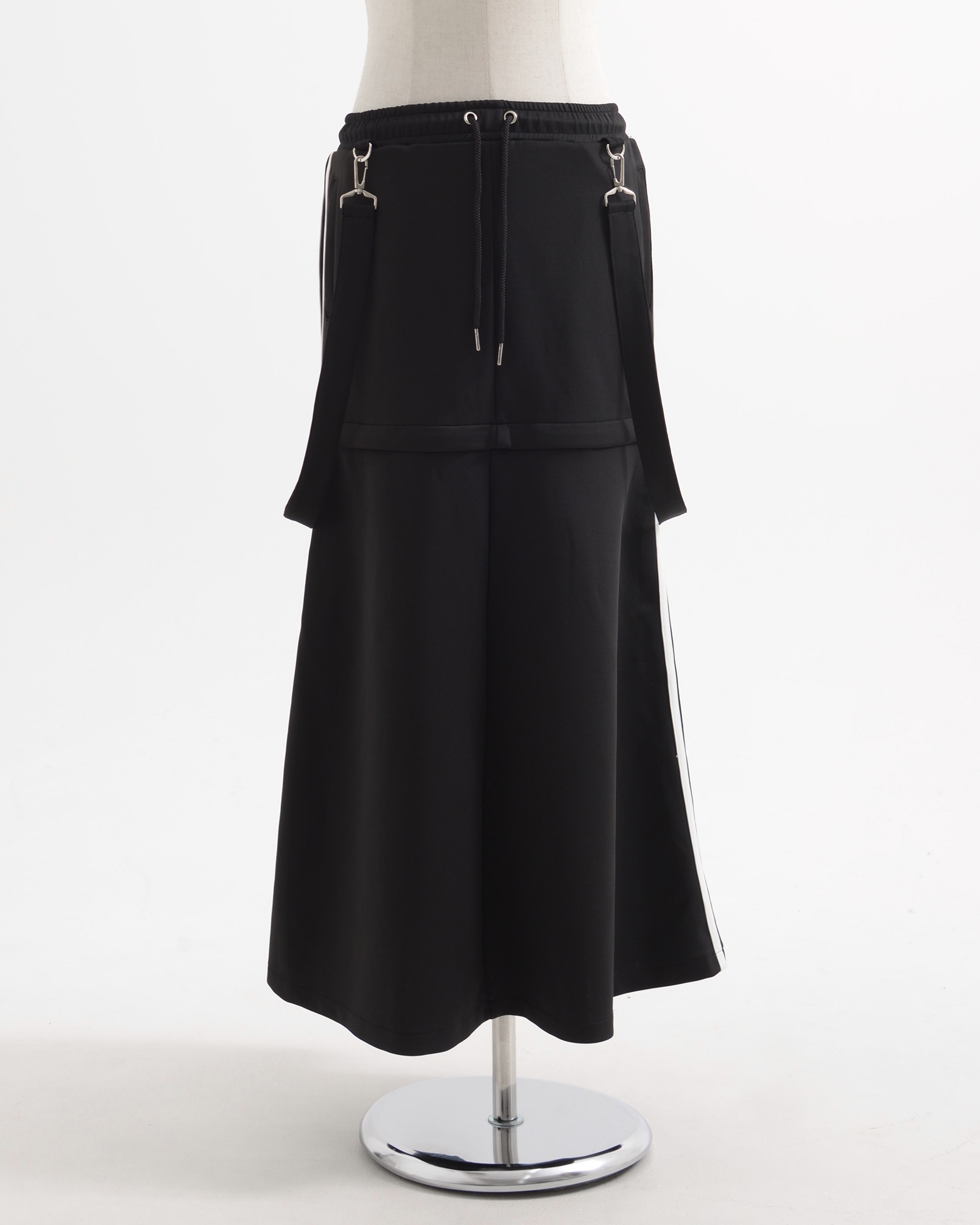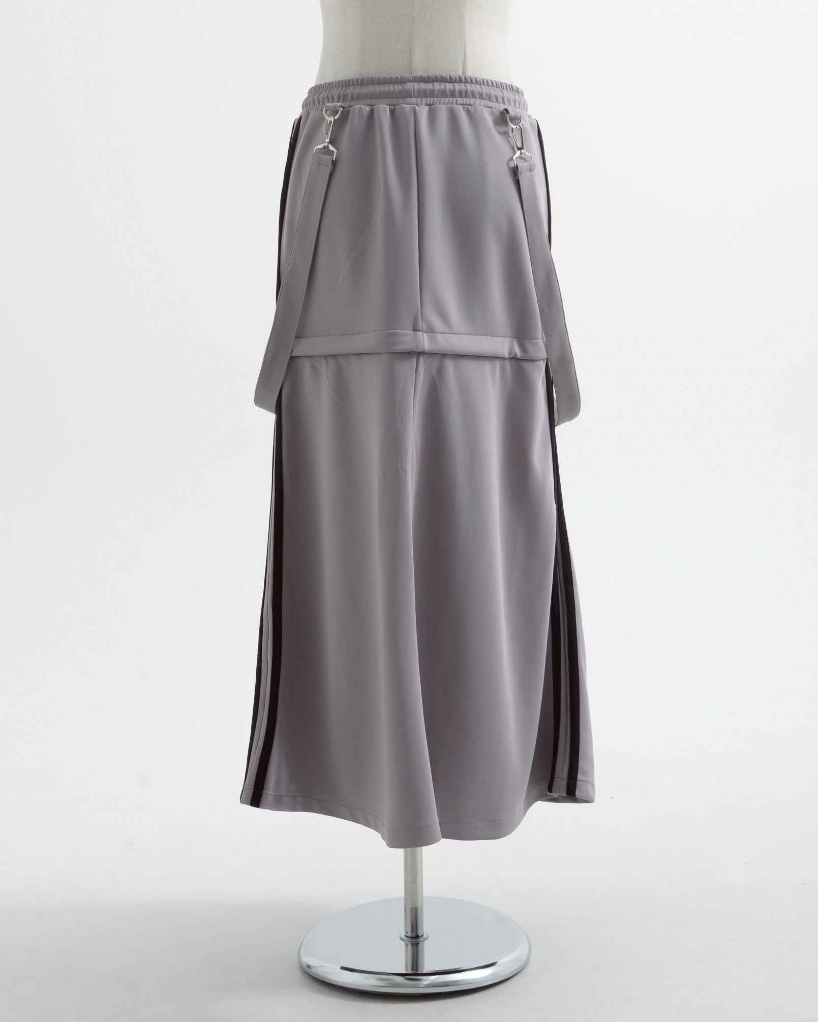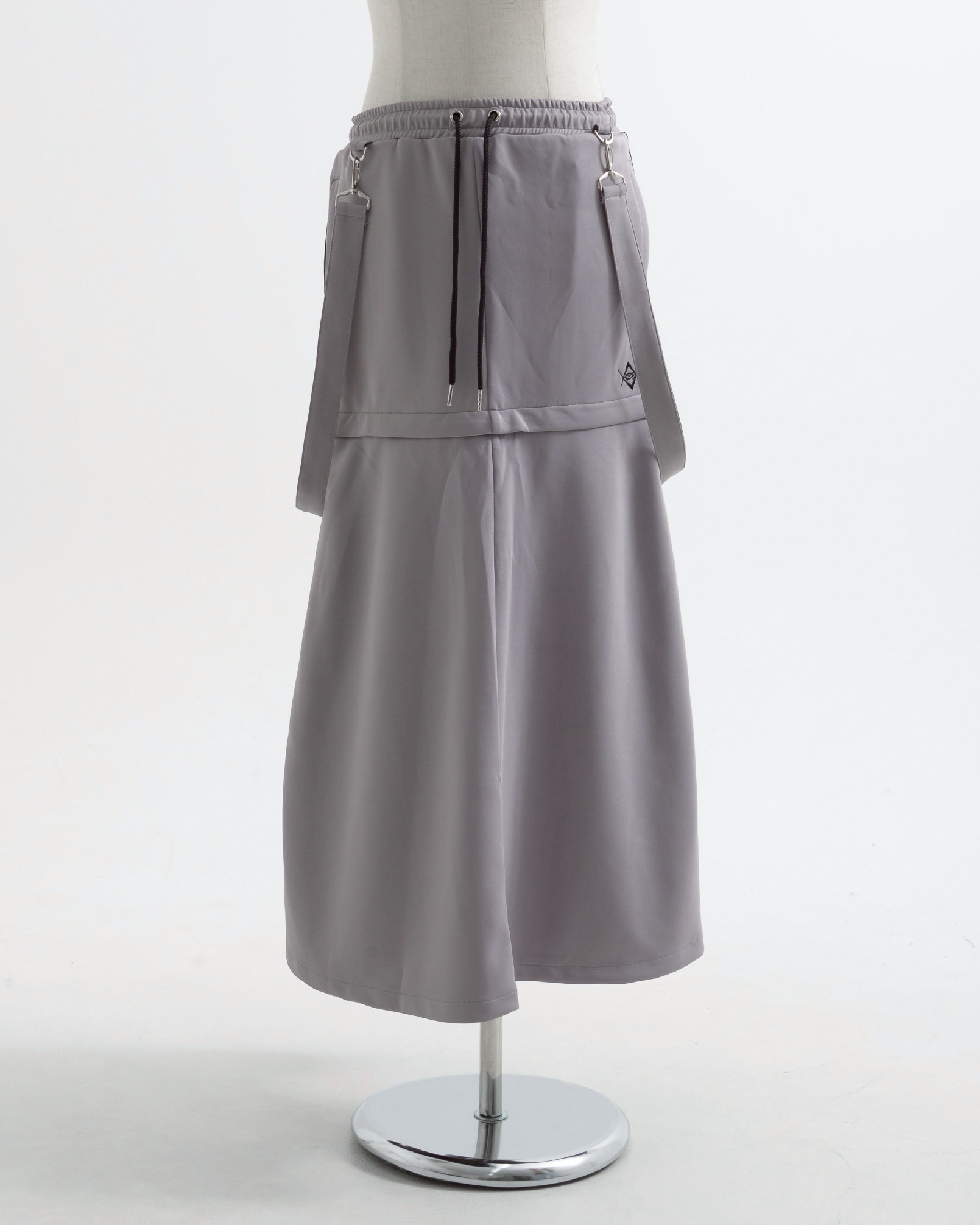 A long skirt made of jersey material that can also be worn as a short skirt with its convertible design.