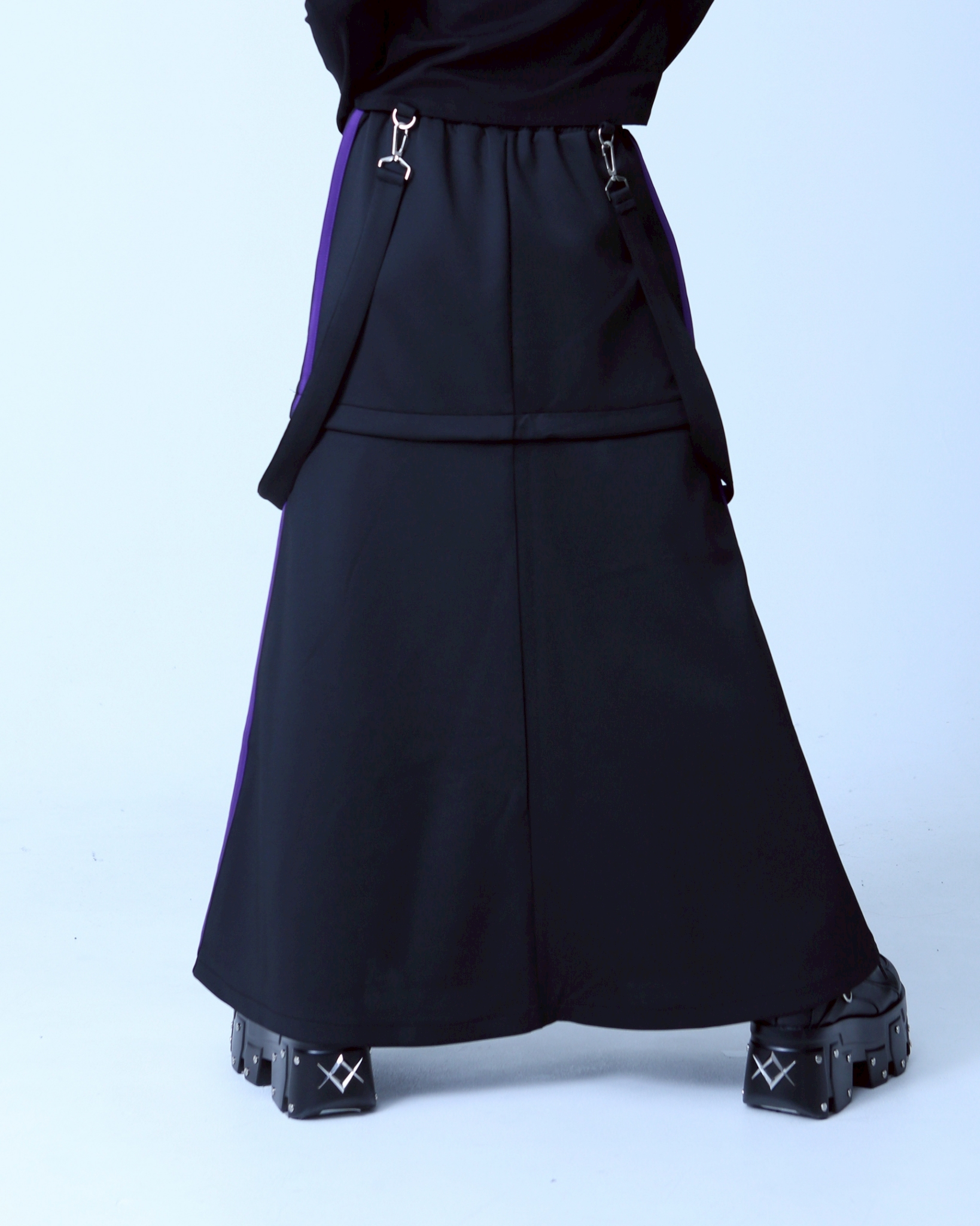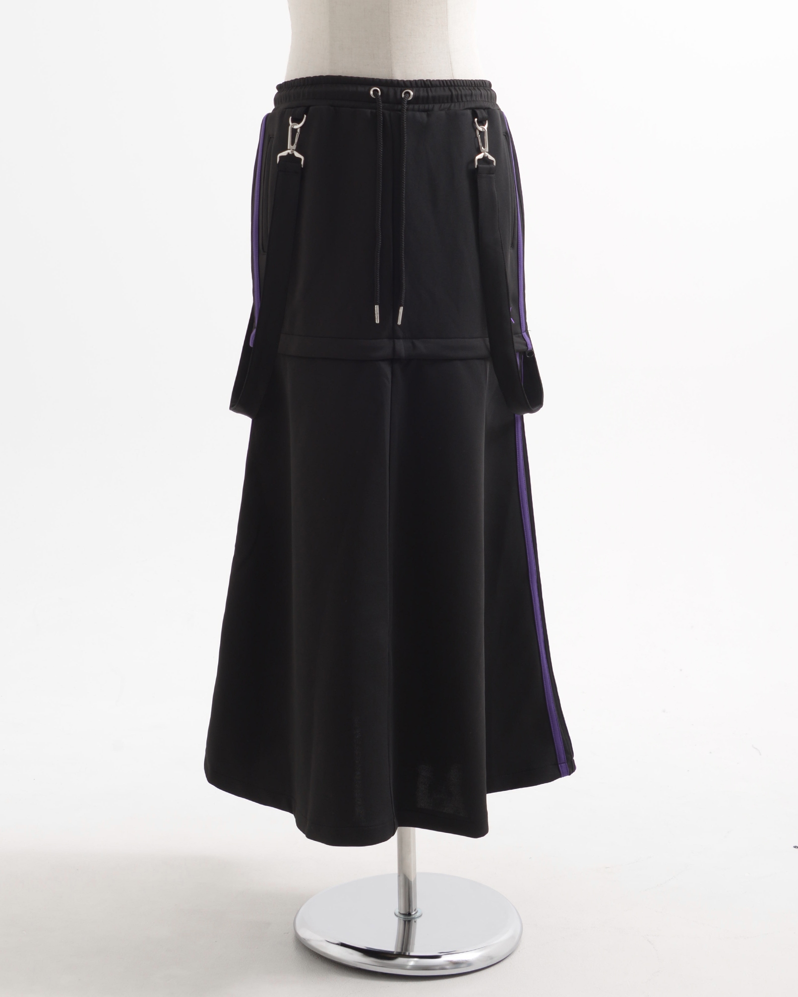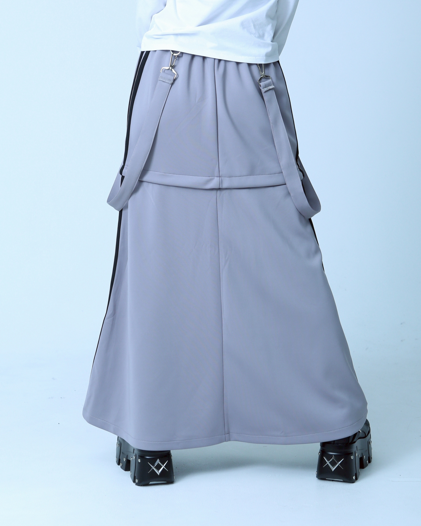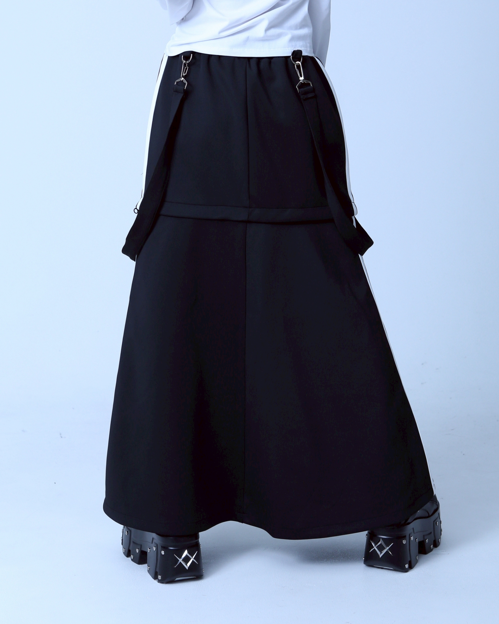 A long skirt made of jersey material that can also be worn as a short skirt with its convertible design.