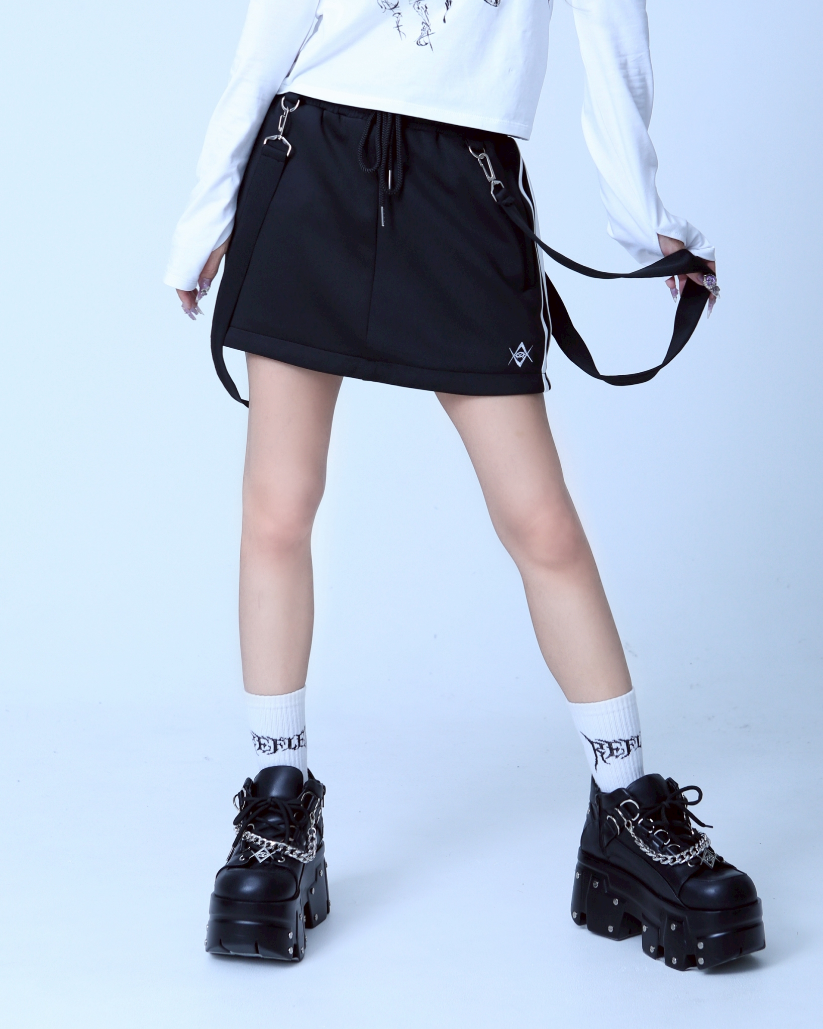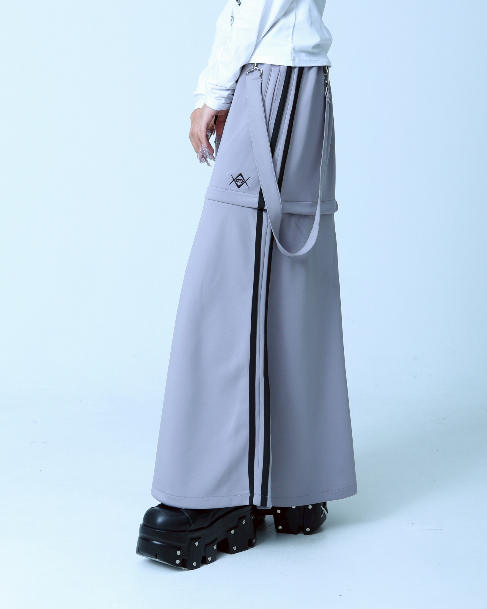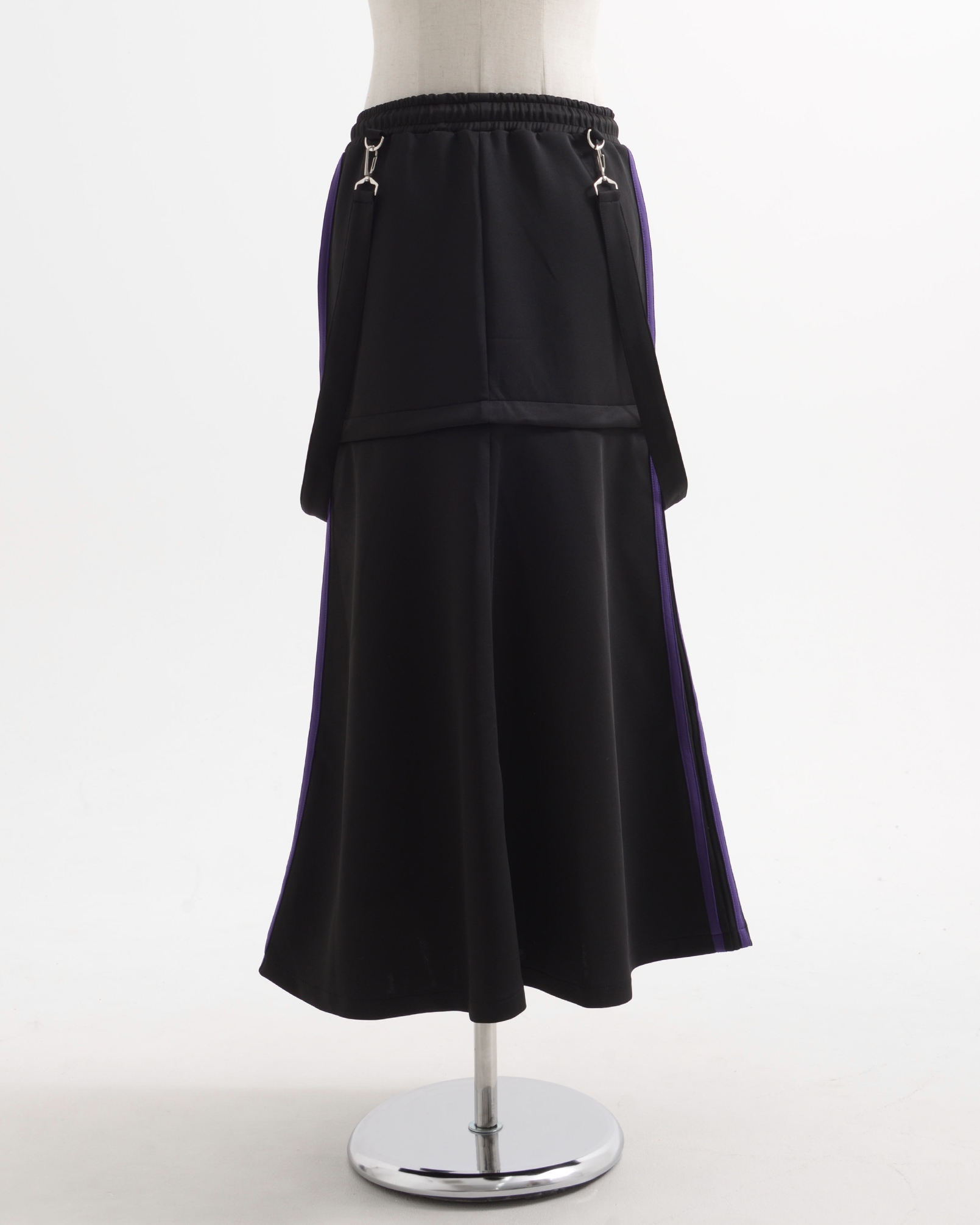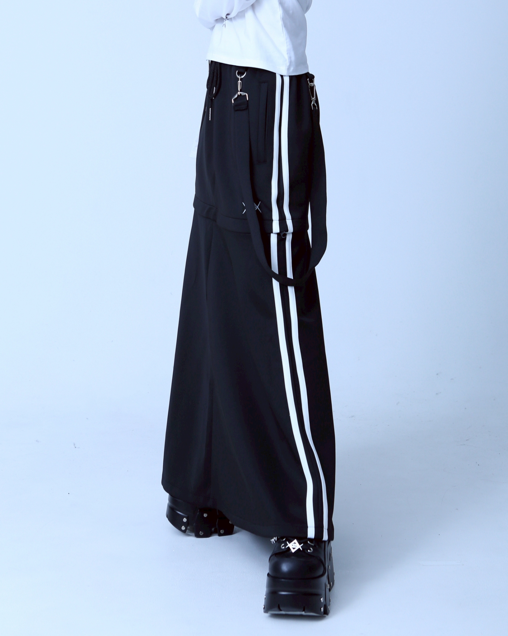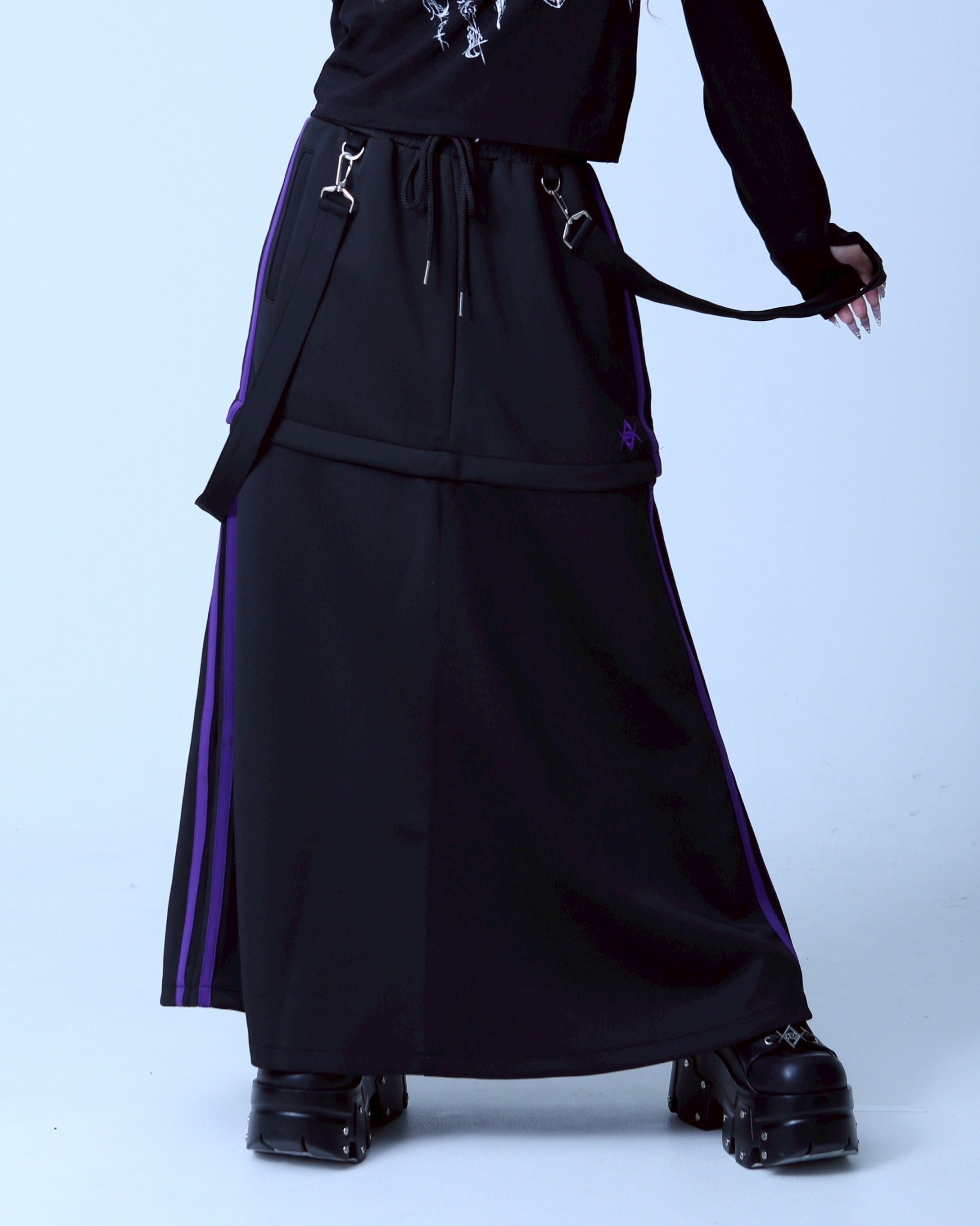 A long skirt made of jersey material that can also be worn as a short skirt with its convertible design.