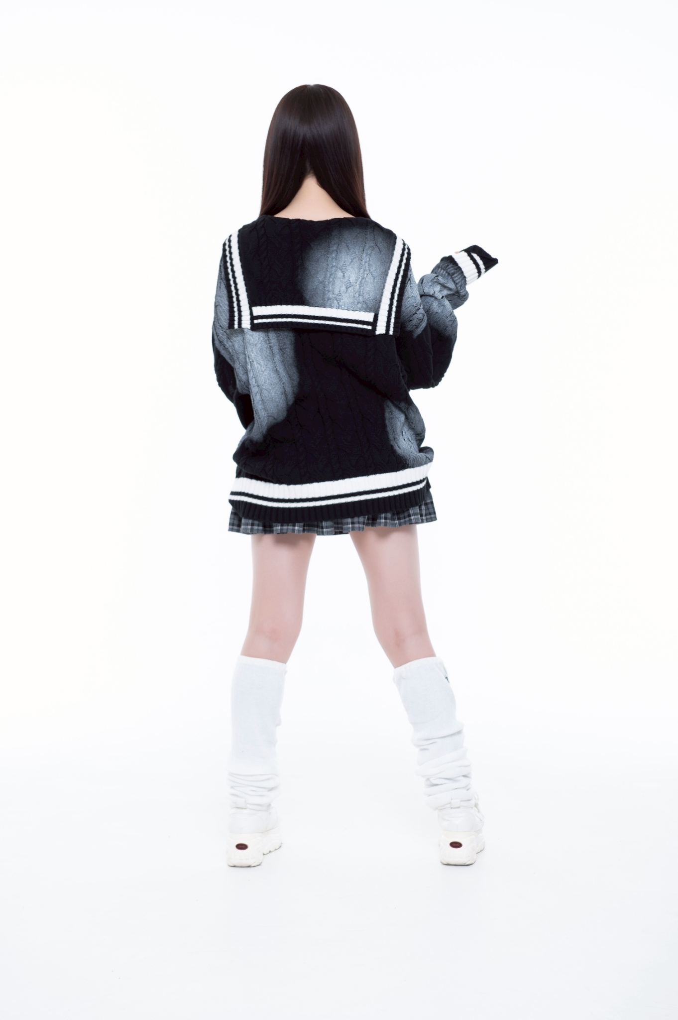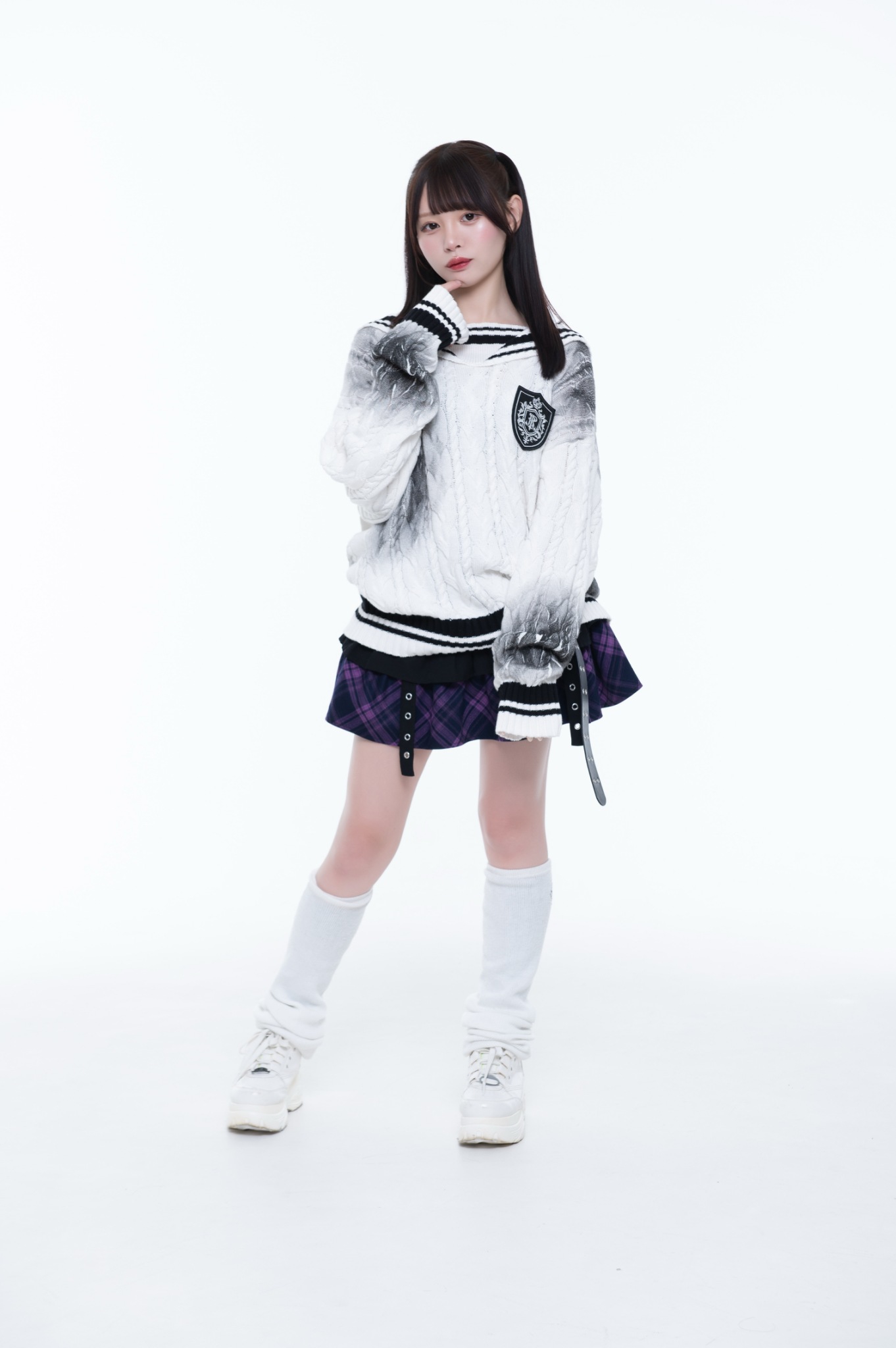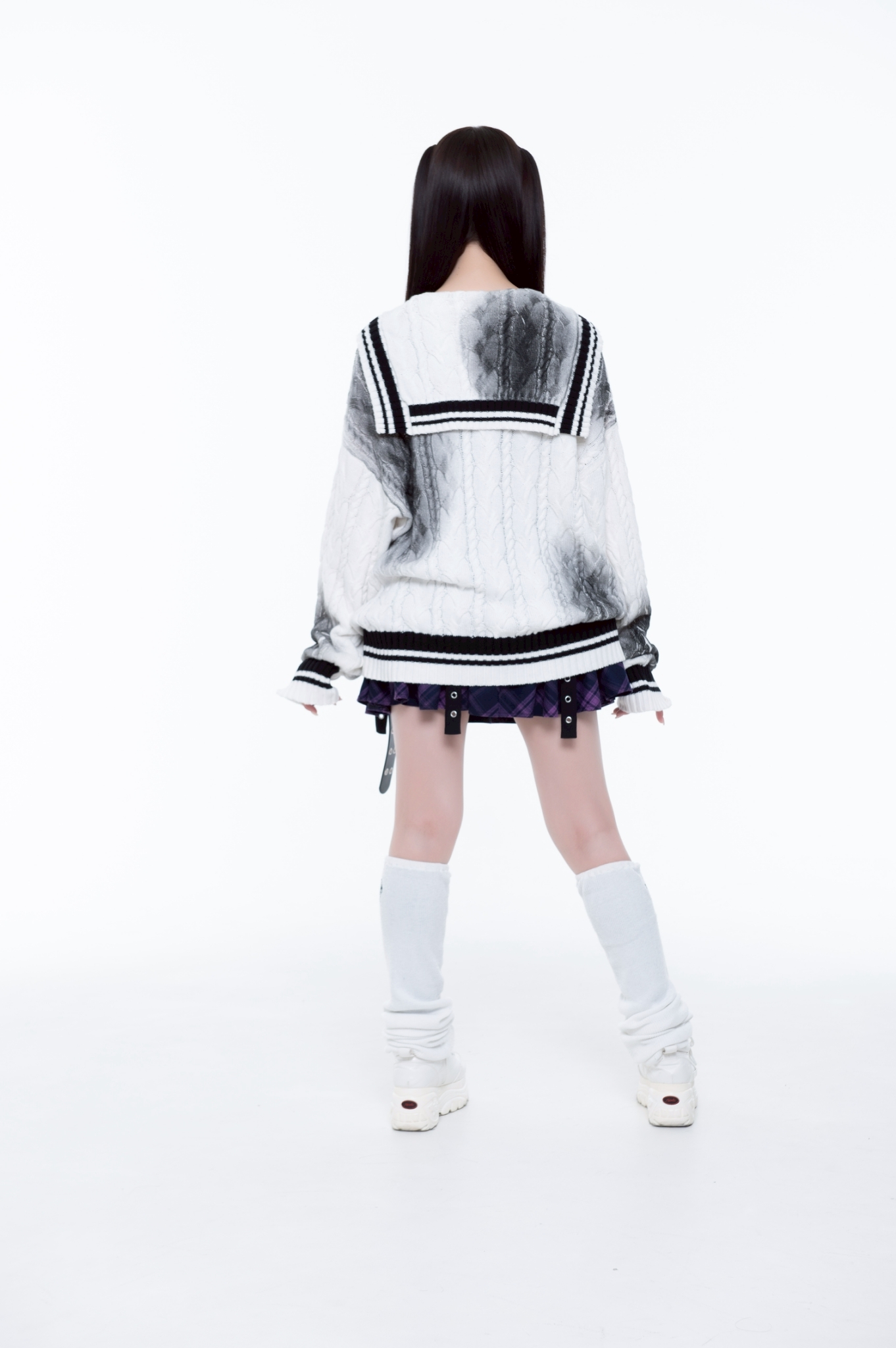 A sailor-collar knit with TRAVAS original patches and pigment processing.