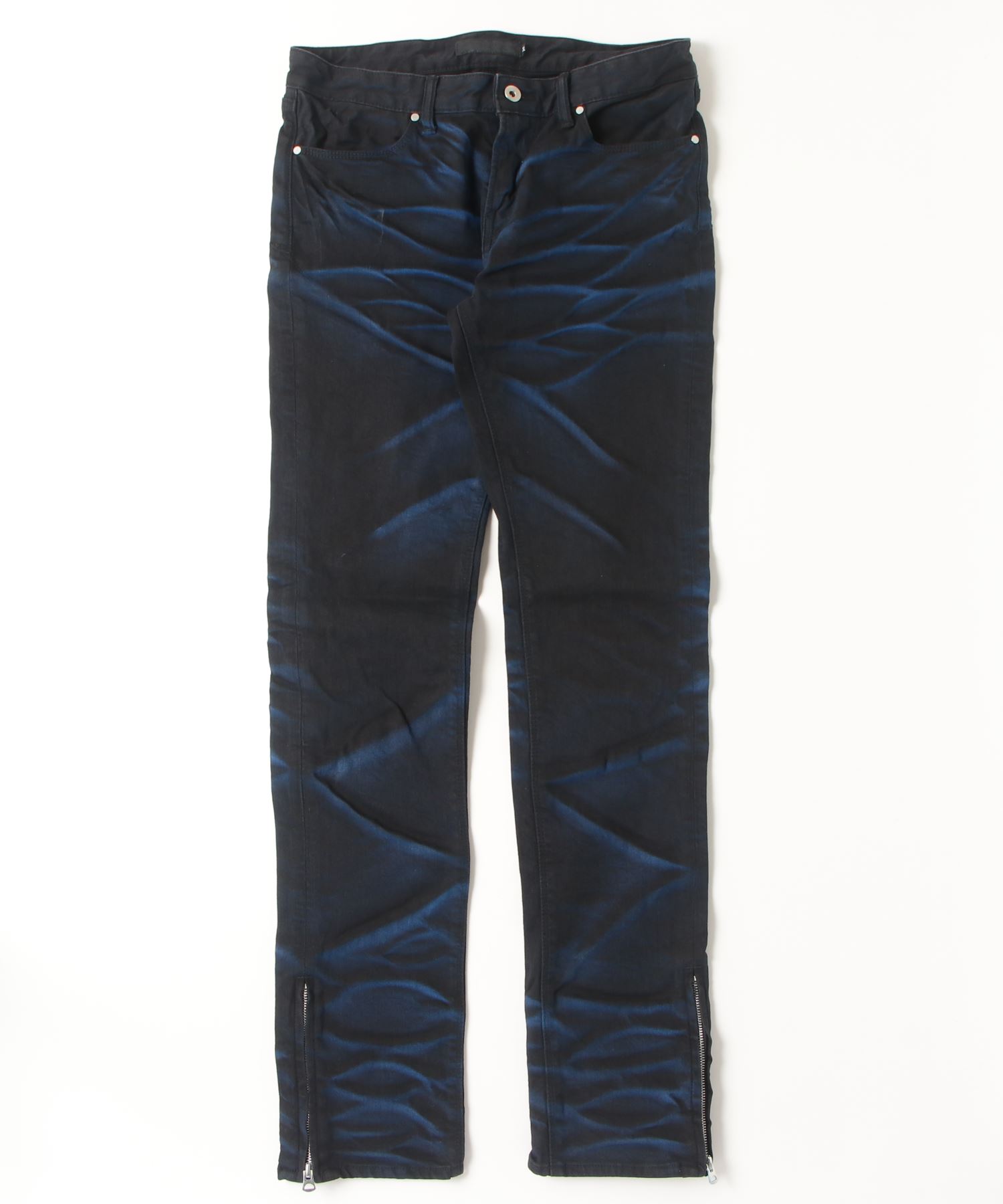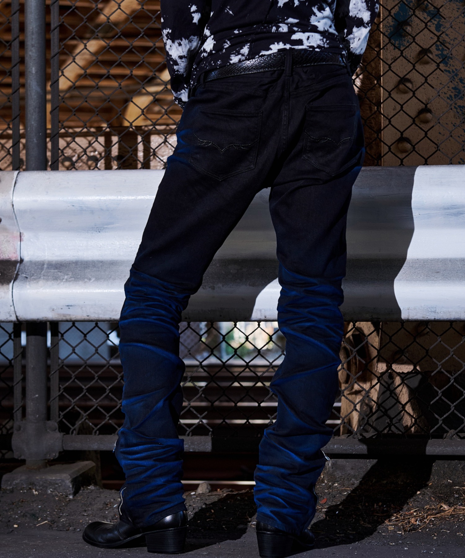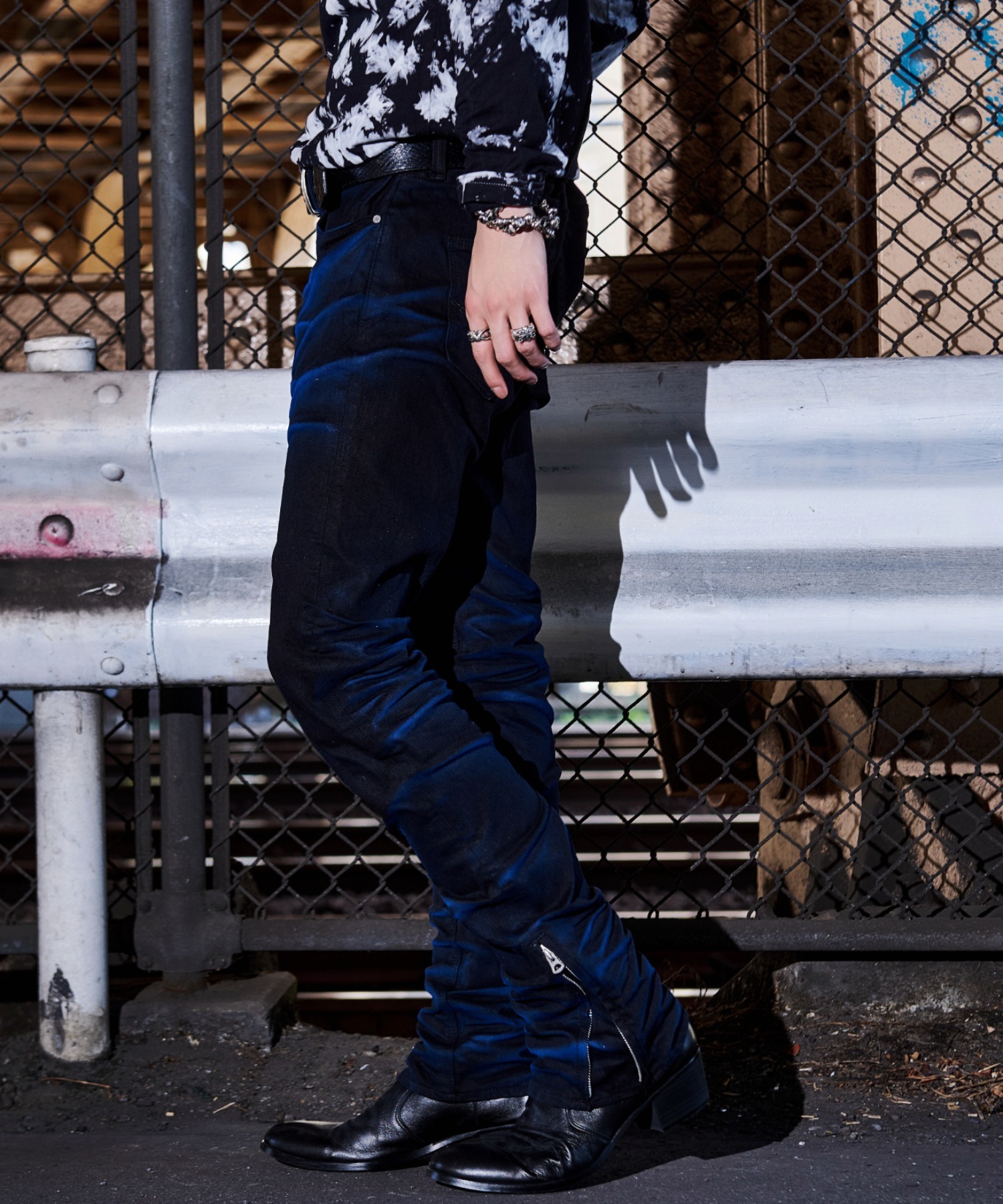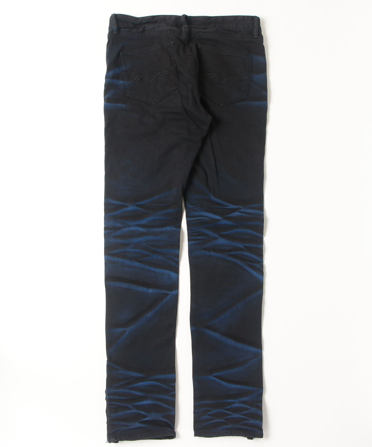 Black denim pants with blue-toned pigment processing that gives off a cool, stylish impression.