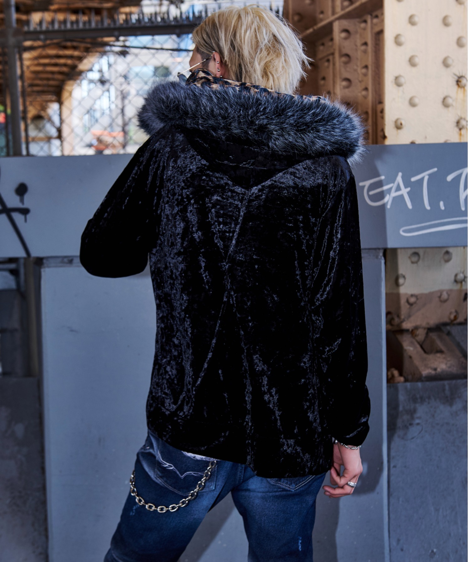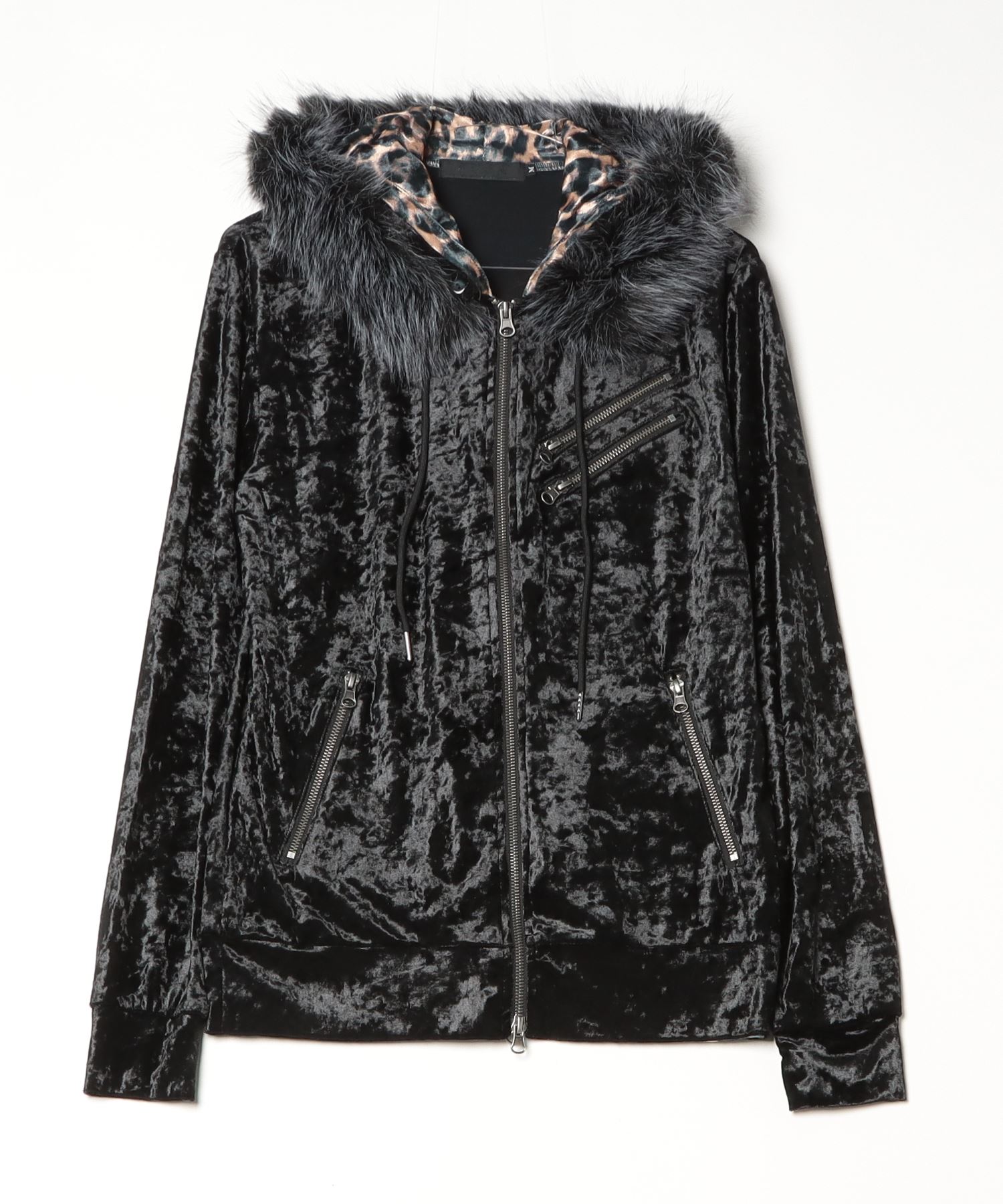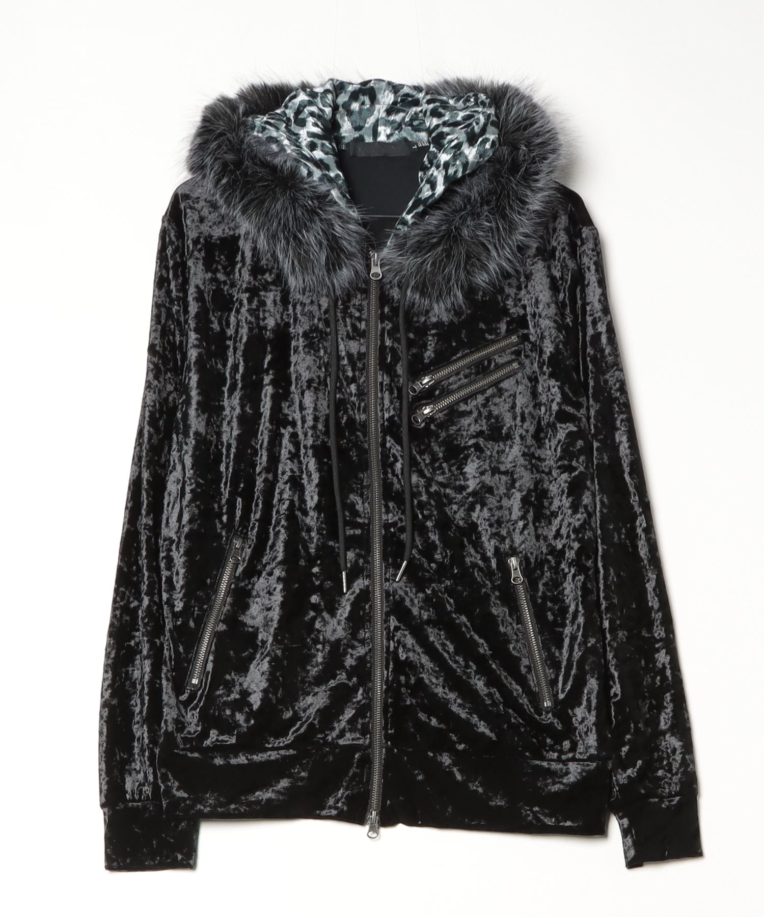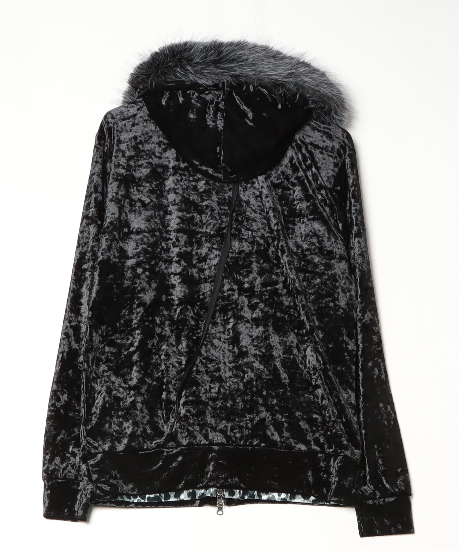 A velour hoodie featuring trendy mesh fur detailing.
